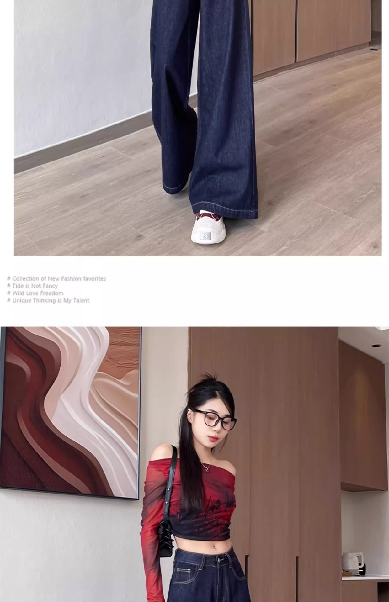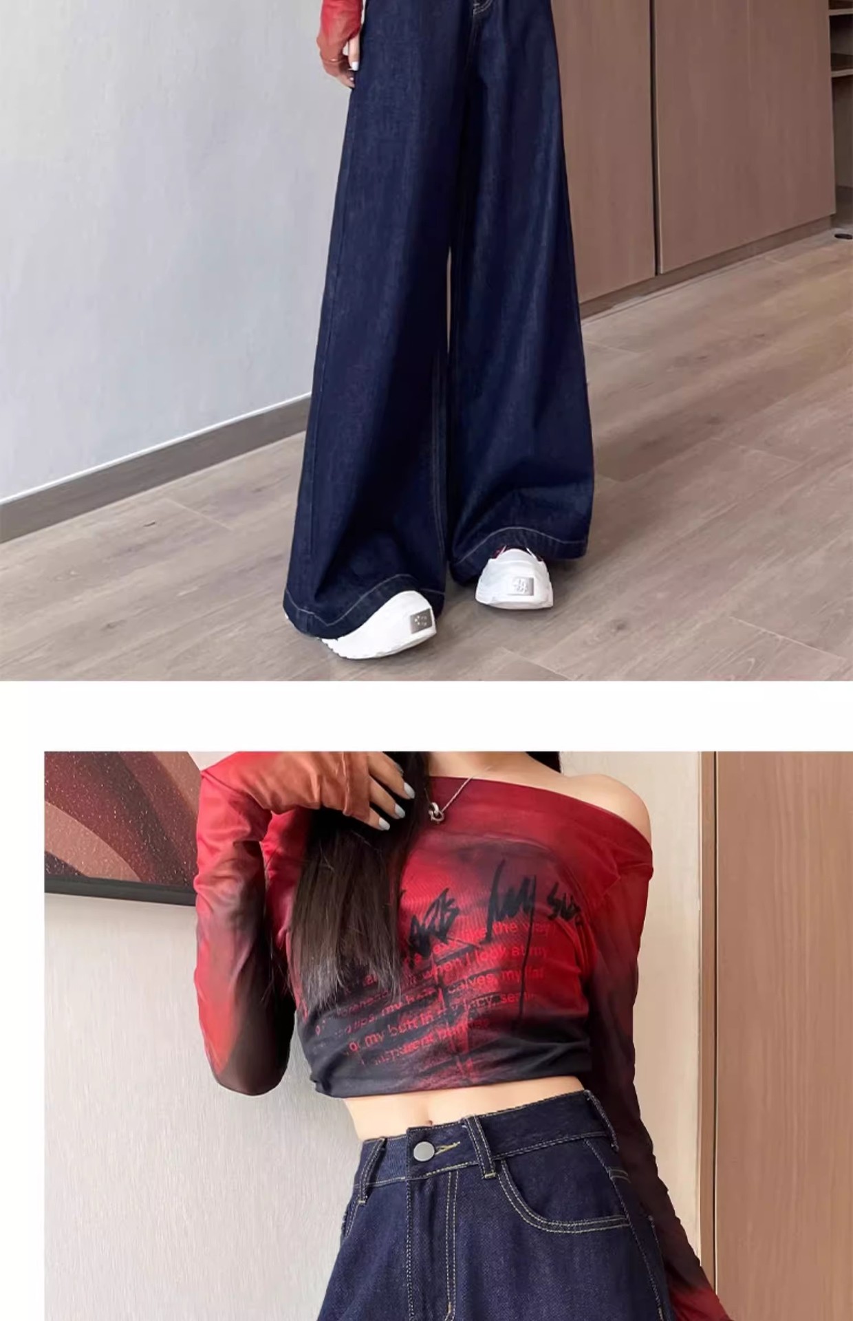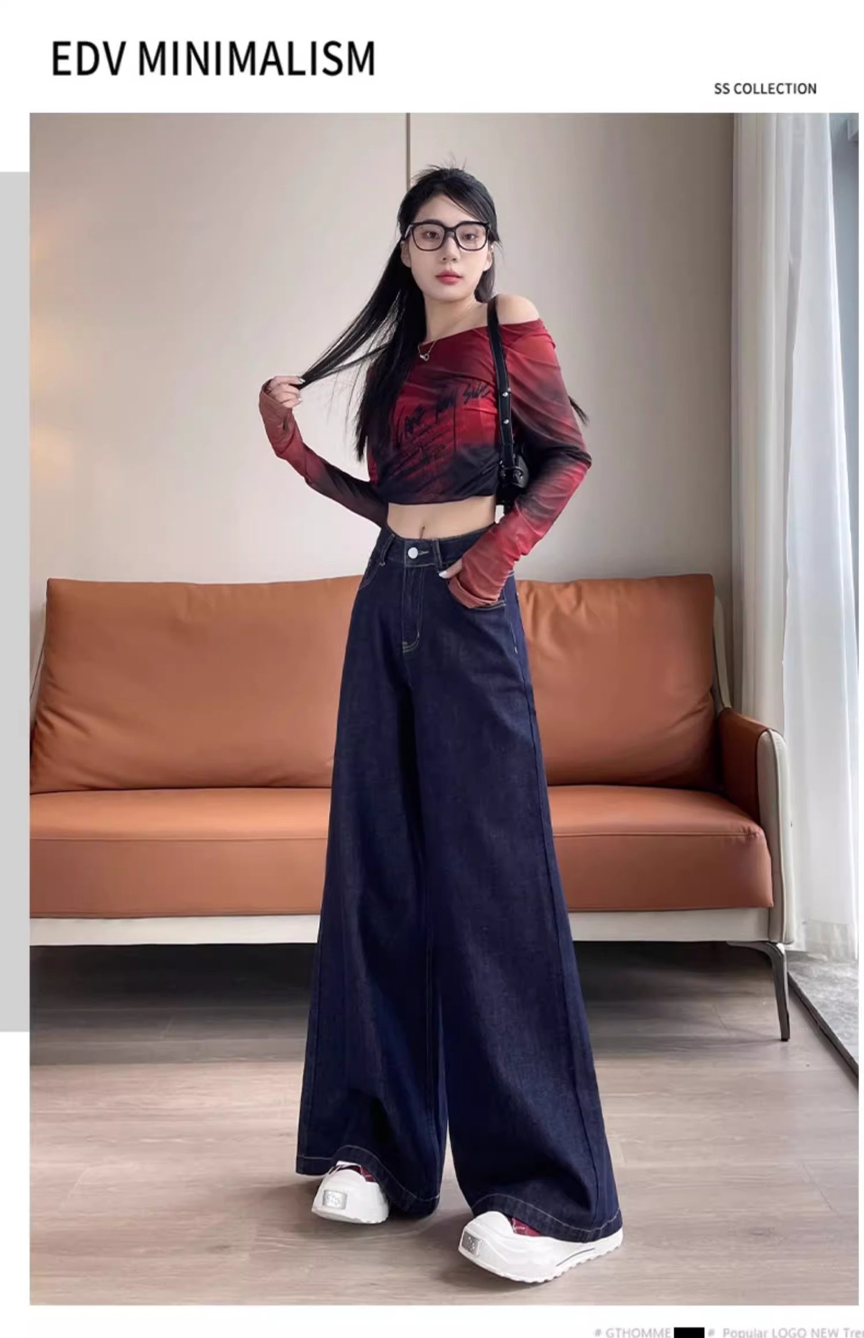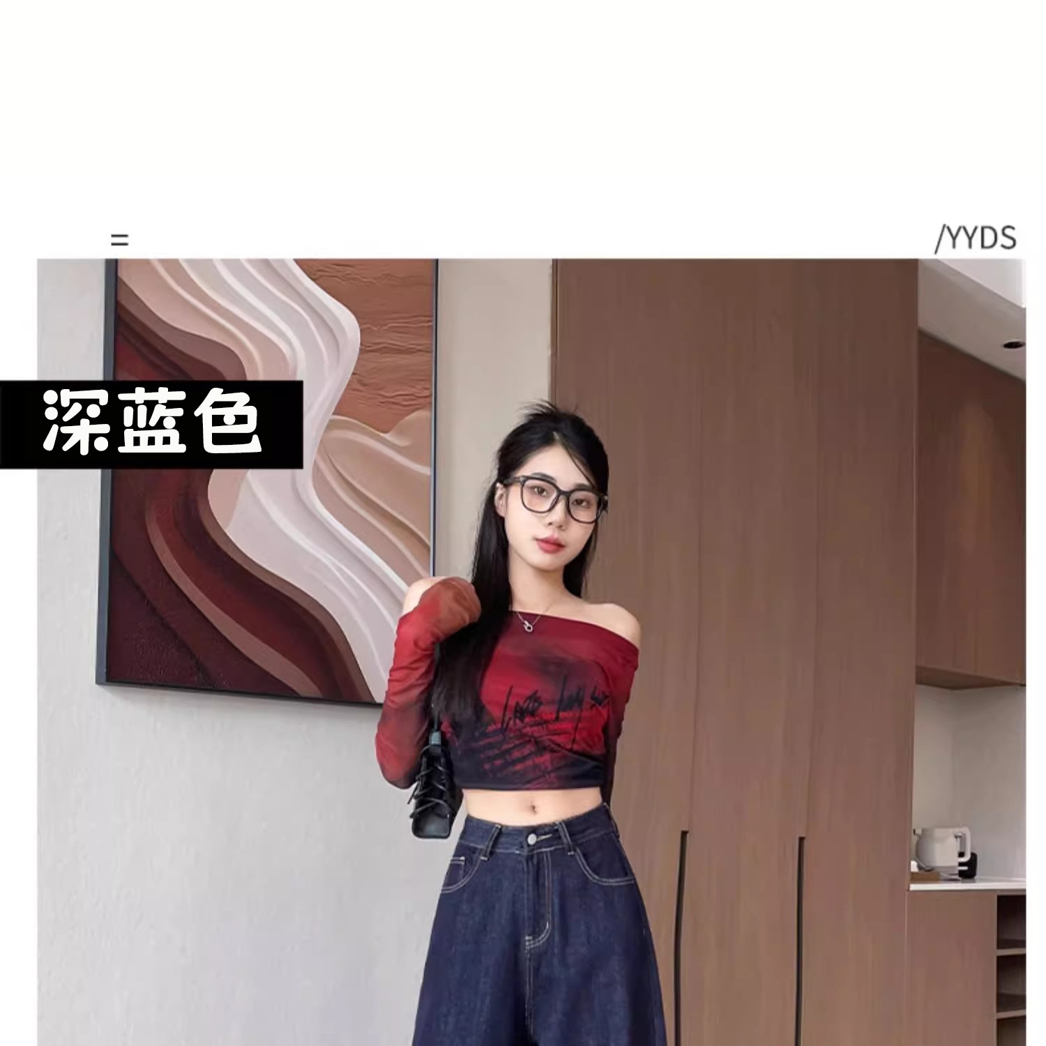 深蓝色高腰牛仔裤女秋季新款宽松遮肉显瘦复古百搭垂感阔腿裤子潮