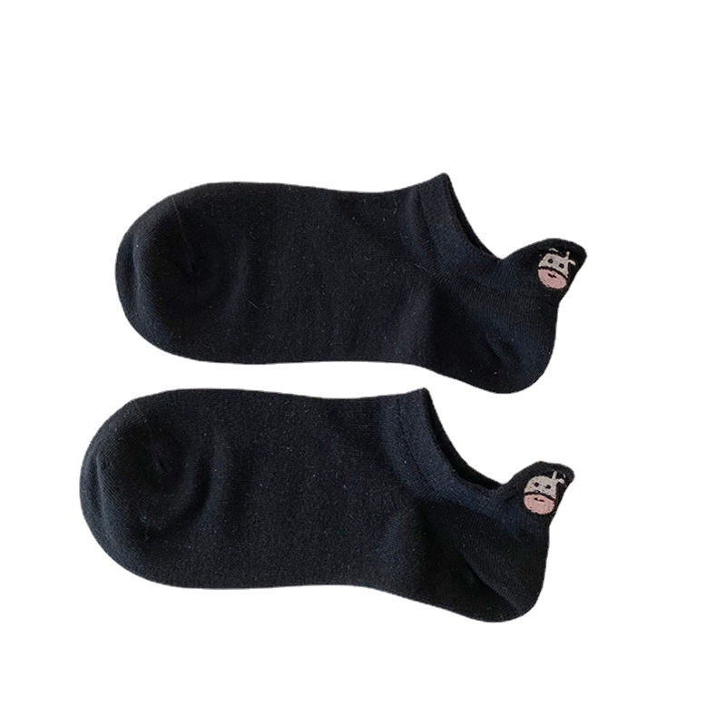 一件代发厂家批发袜子女士提耳奶牛四季棉袜韩版卡通船袜吸汗防臭