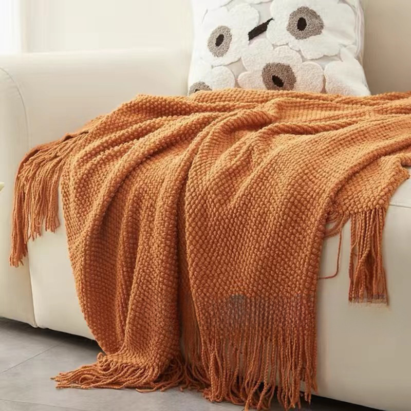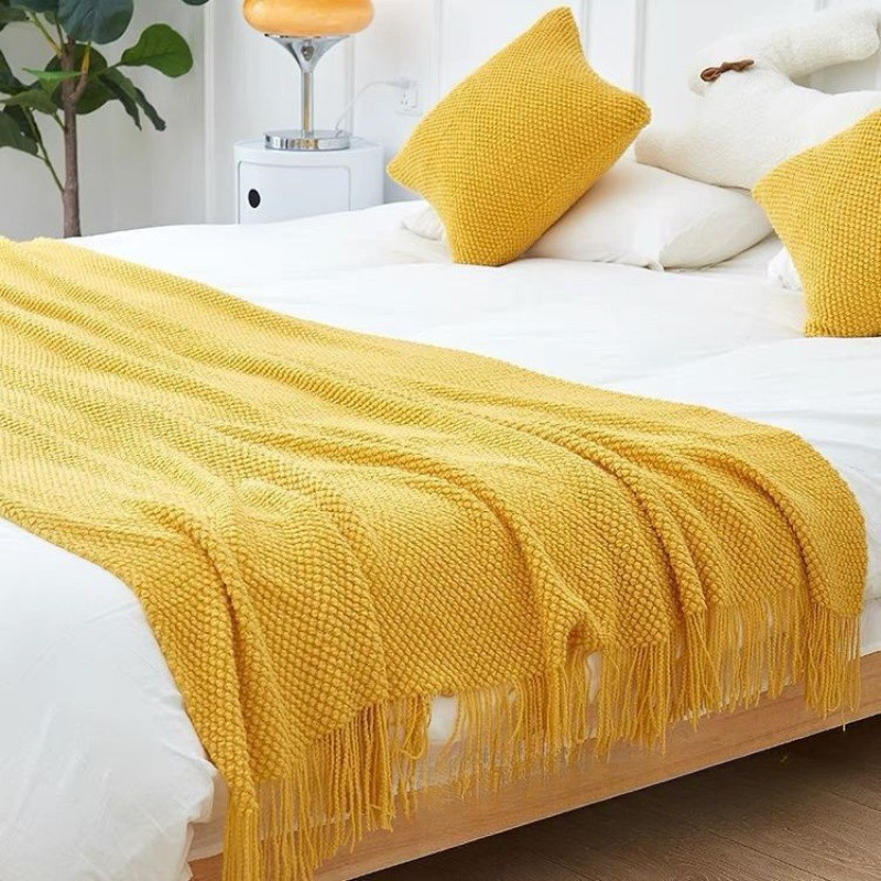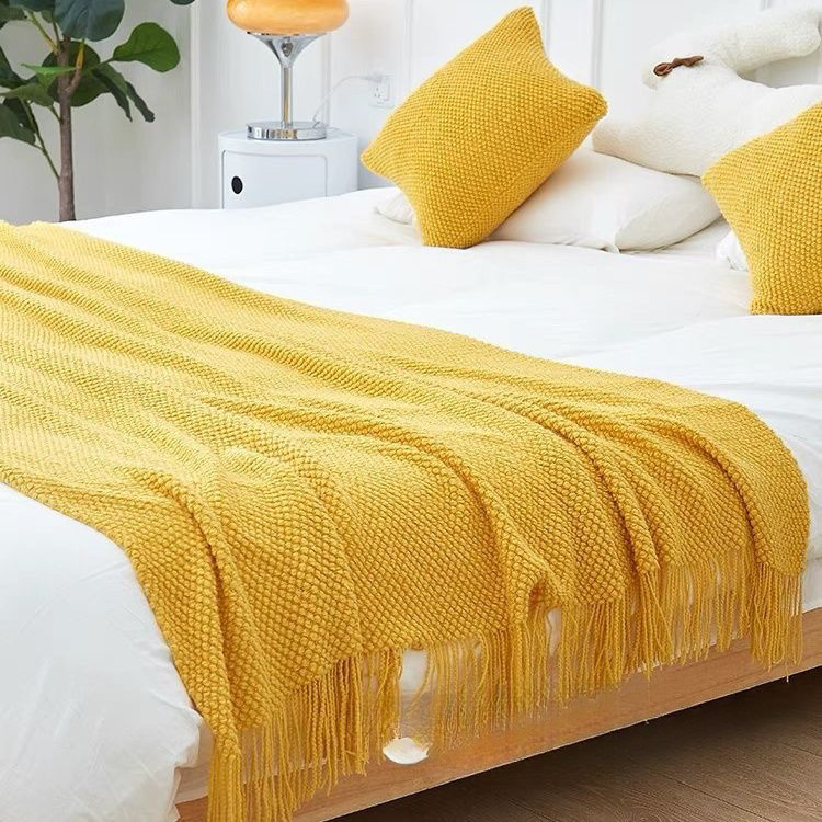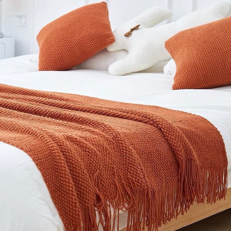 酒店民宿侘寂风纯色床尾巾咖色床尾毯样板间搭毯素色床搭可订床旗
