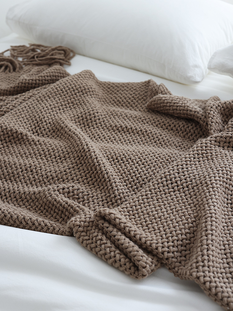 针织织纯色床尾巾搭毯纯色搭巾酒店民宿北欧风工厂新款沙发