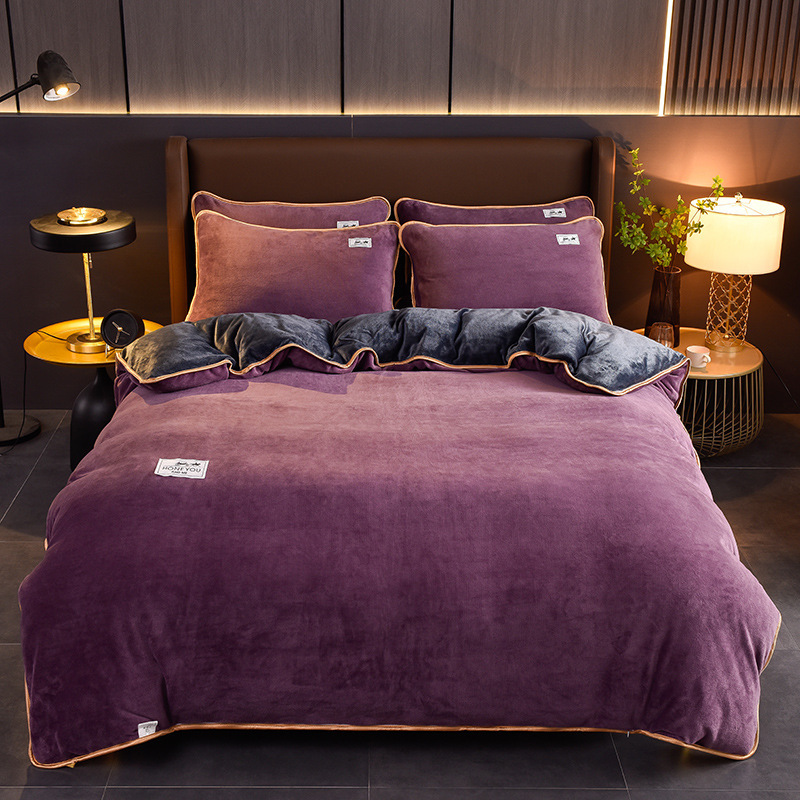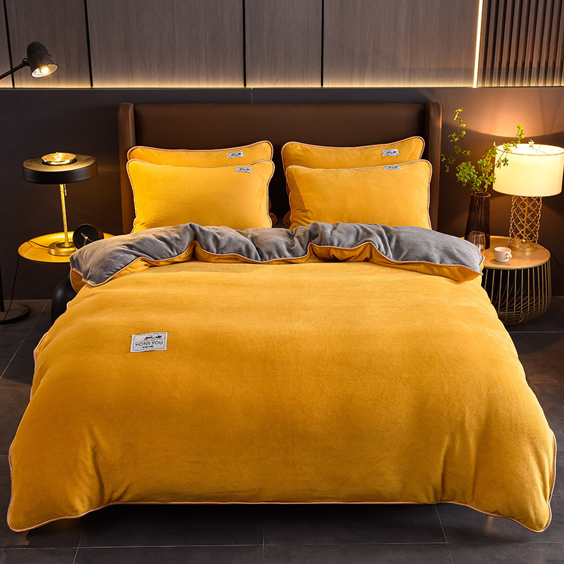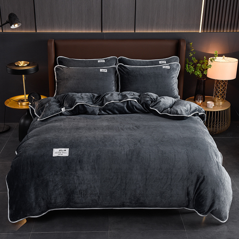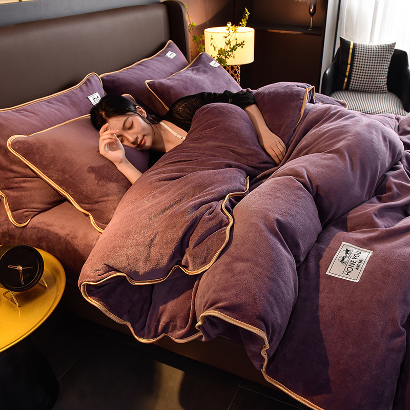 秋冬纯色加厚牛奶绒床上四件套双面加绒被套单件保暖珊瑚绒三件套