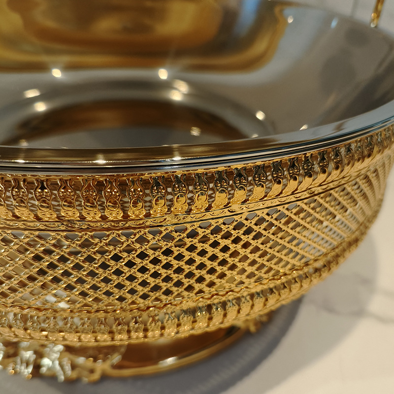潮州互发跨境货源不锈钢金色圆形自助餐炉酒店保温炉餐厅酒精炉