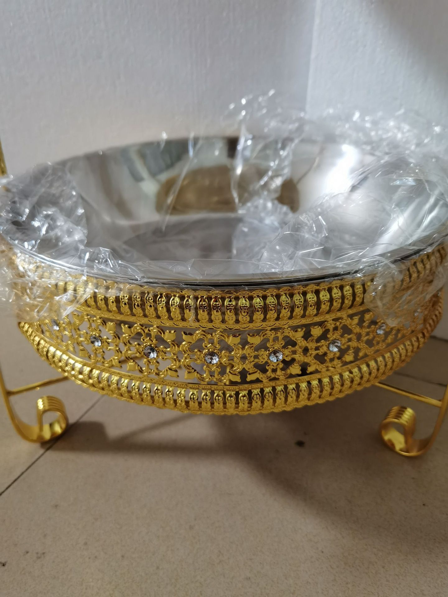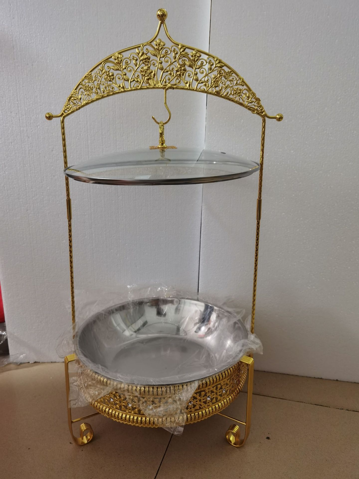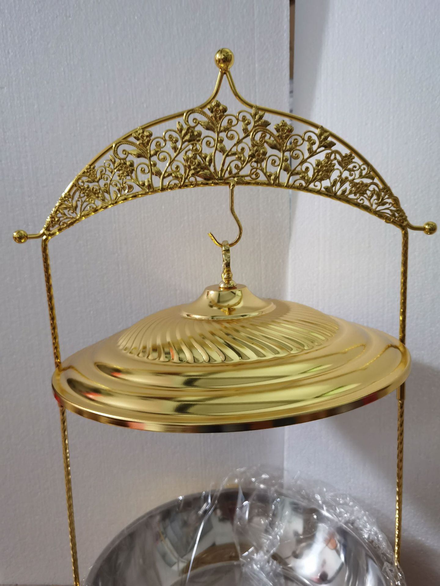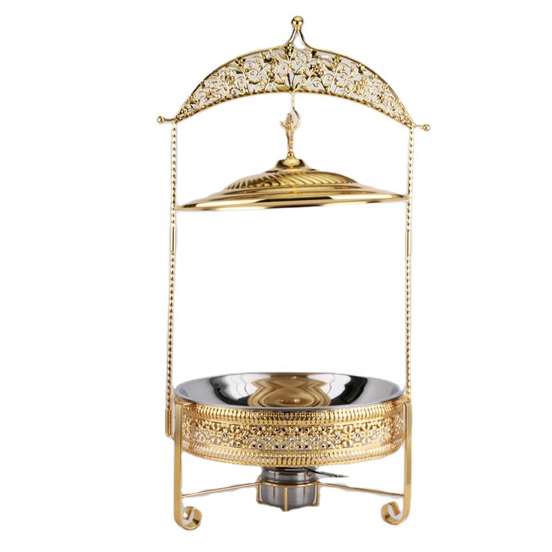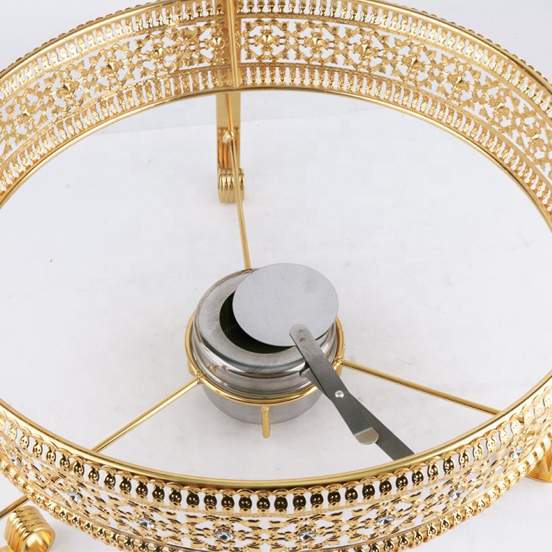 金色轻奢吊盖金边 自助酒精炉餐炉豪华花边火锅食物保温容器跨境