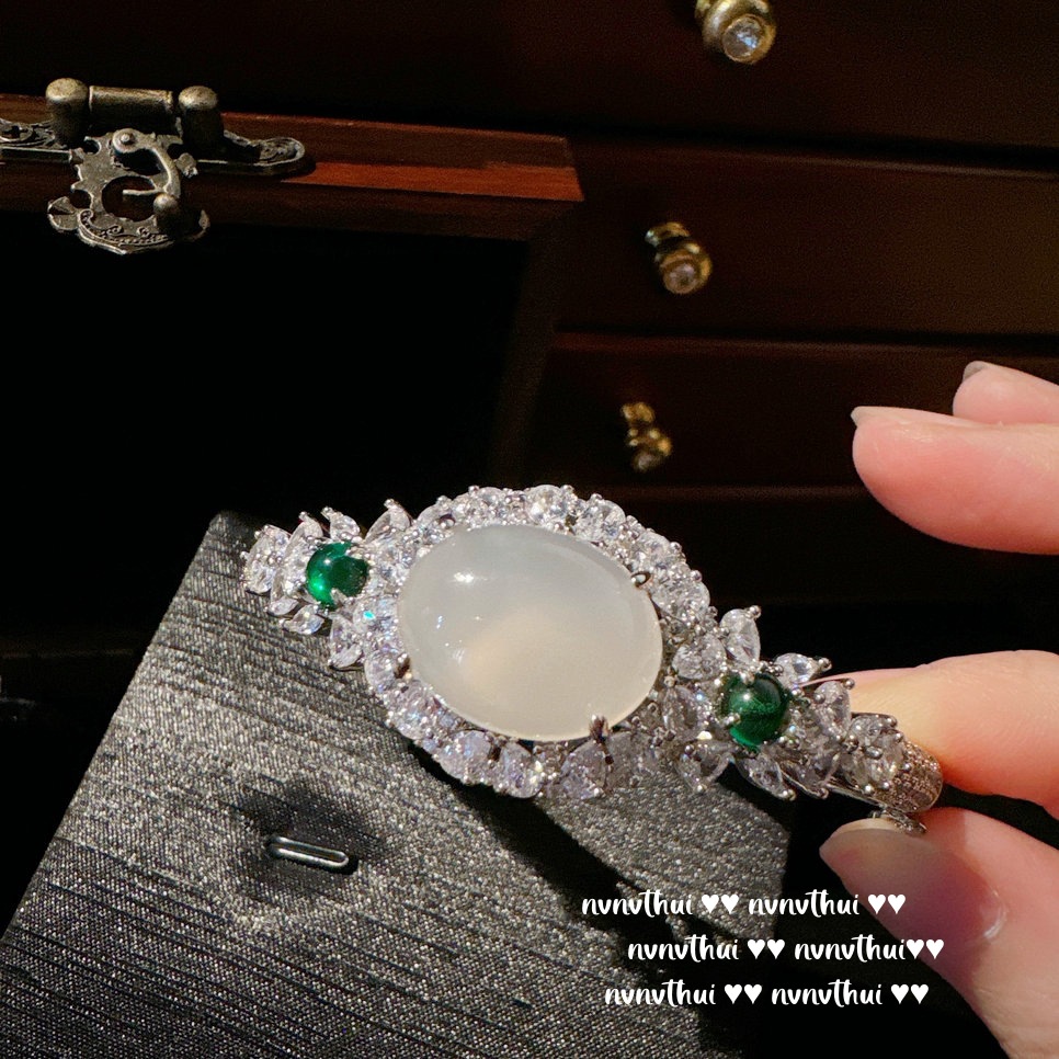 荔枝冻白玉髓花朵宝石手链 水灵水灵 镀18K金 高冰蛋面锆石 项链