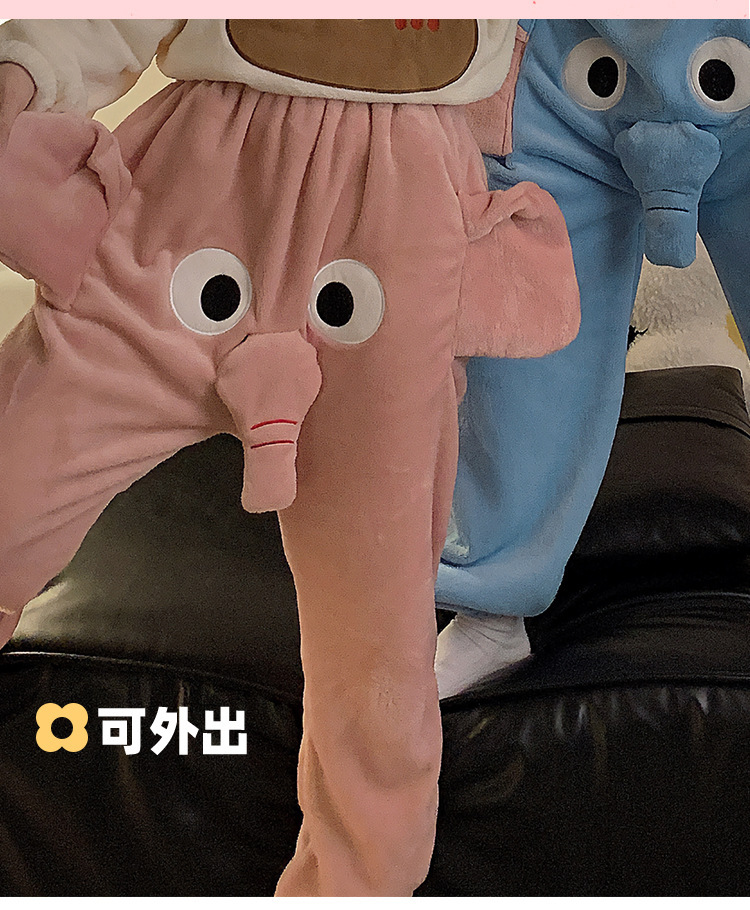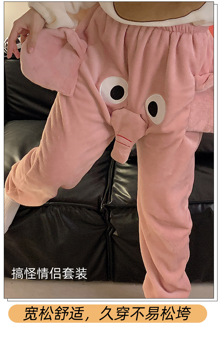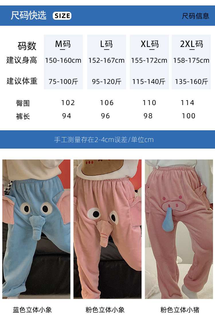 法兰绒暖暖裤搞怪大象保暖睡裤长裤女秋冬季珊瑚绒裤男大码家居裤