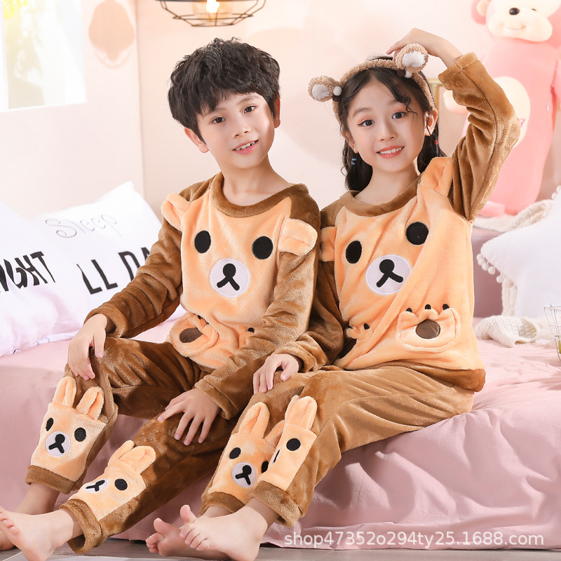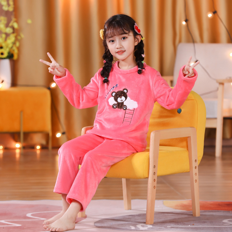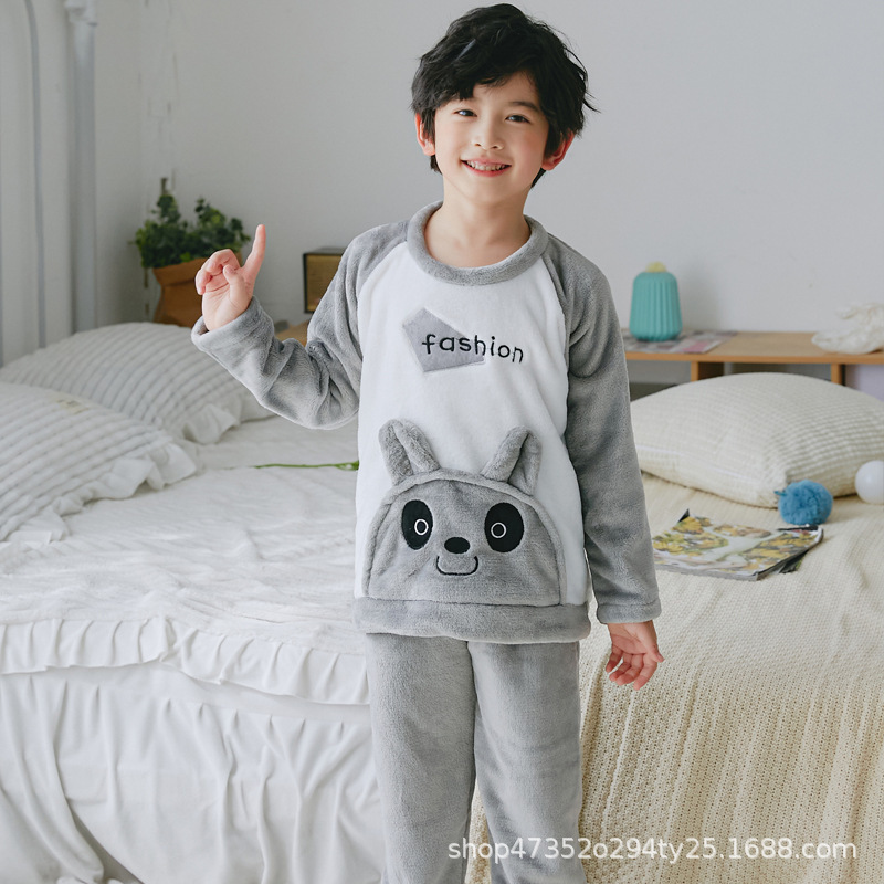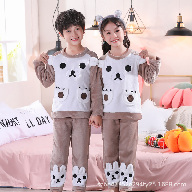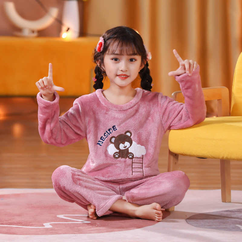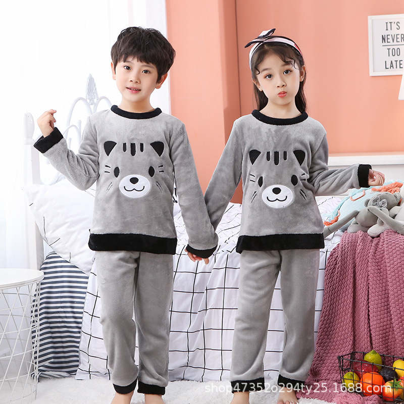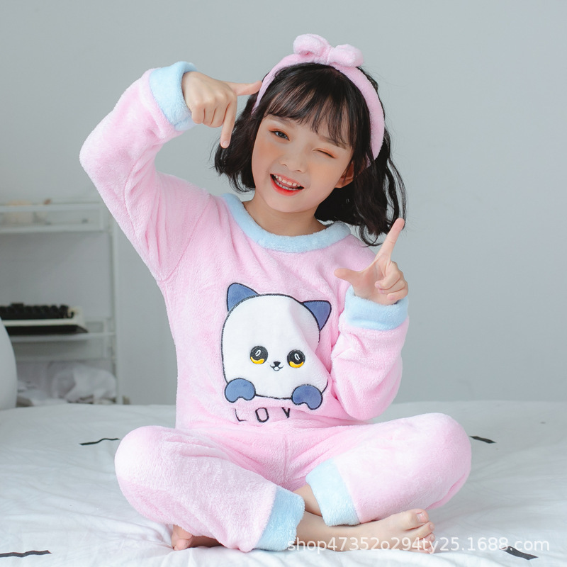 秋冬季儿童法兰绒睡衣男童女孩卡通可爱宝宝女童男孩珊瑚绒家居服