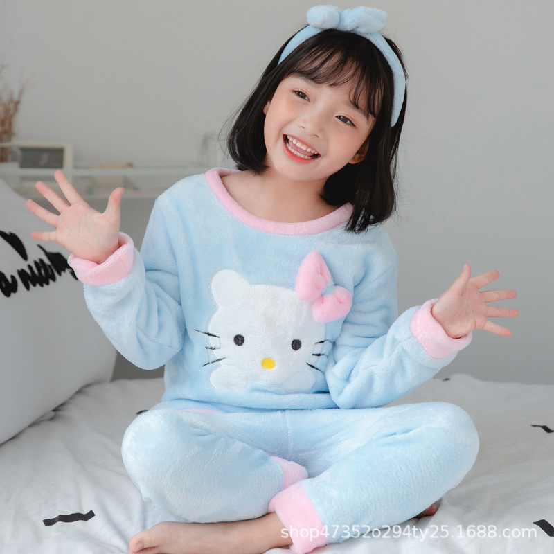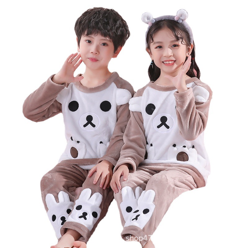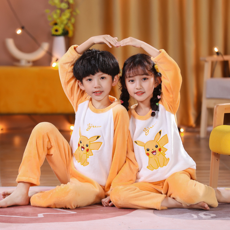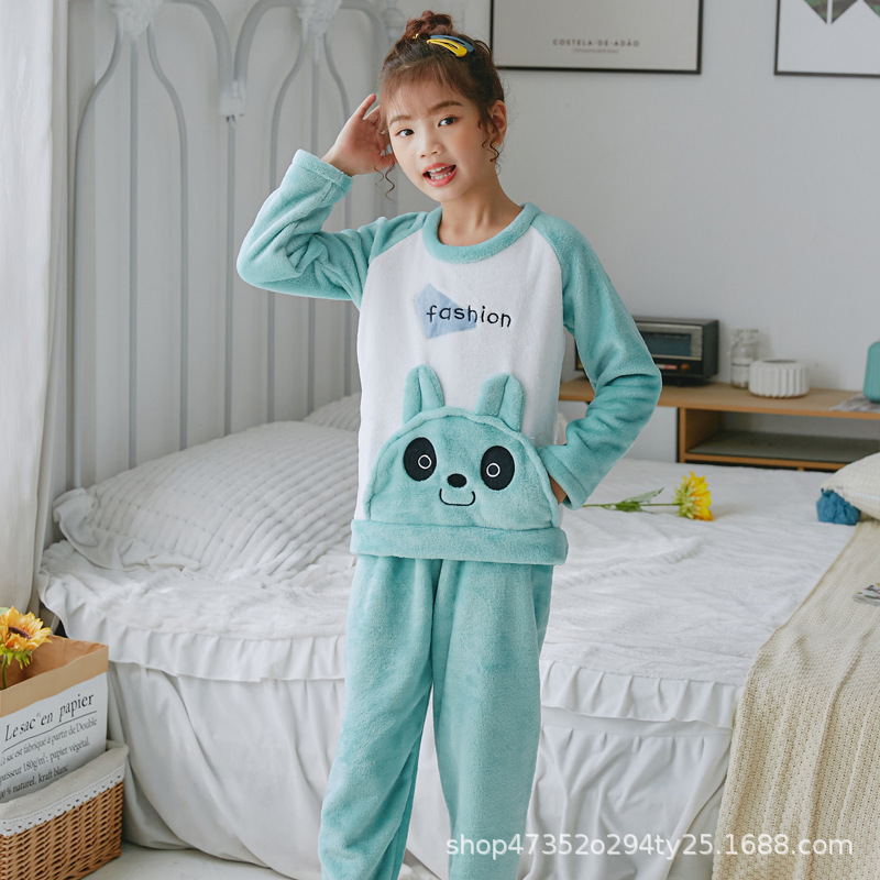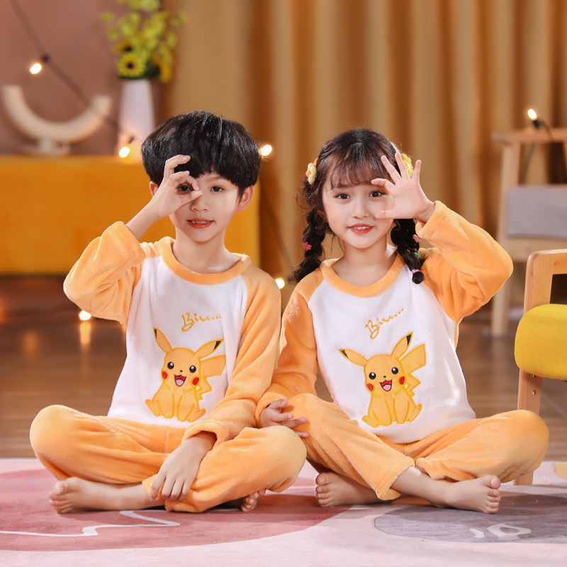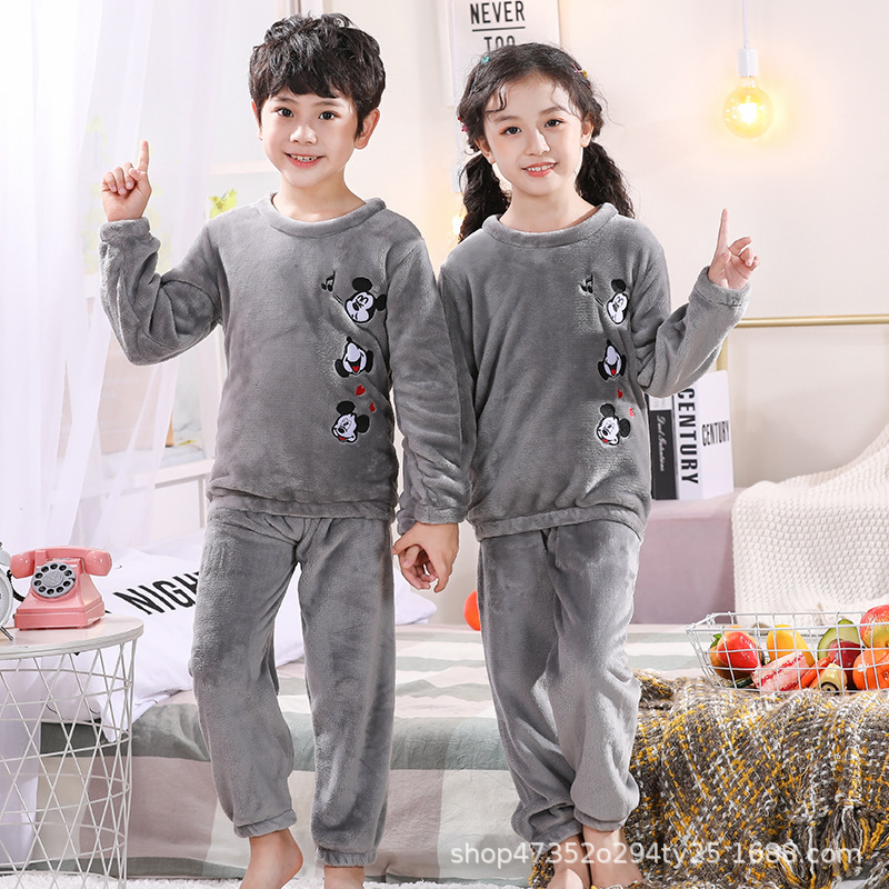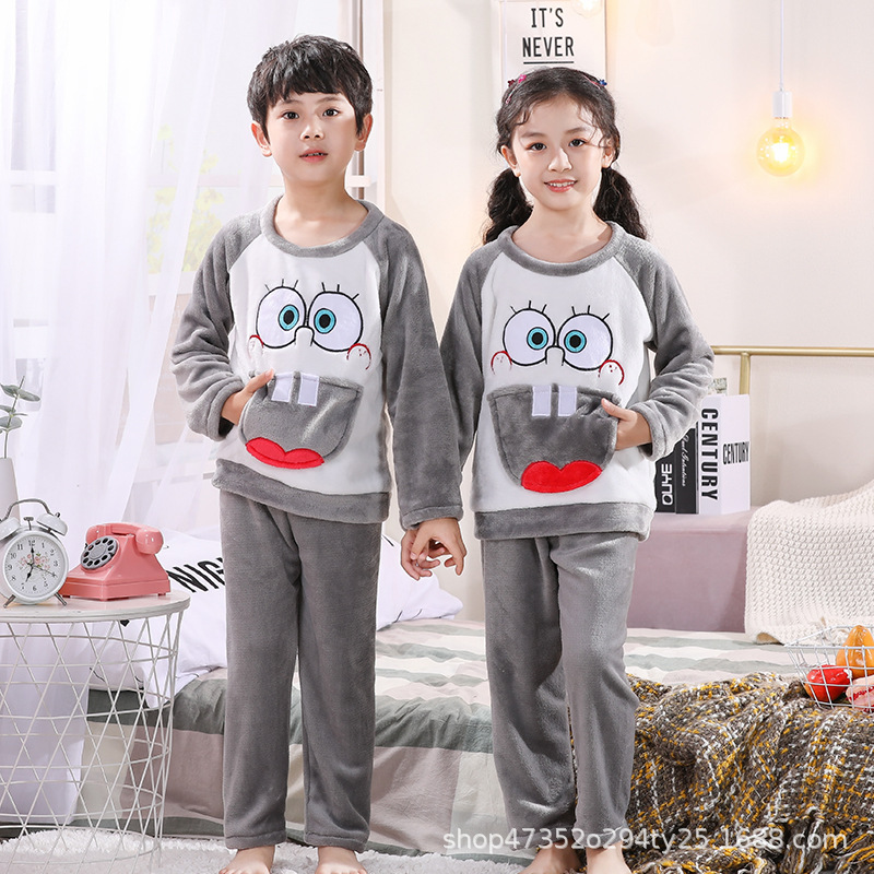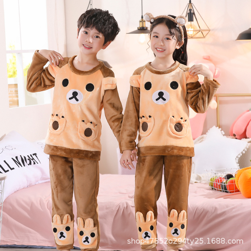 秋冬季儿童法兰绒睡衣男童女孩卡通可爱宝宝女童男孩珊瑚绒家居服