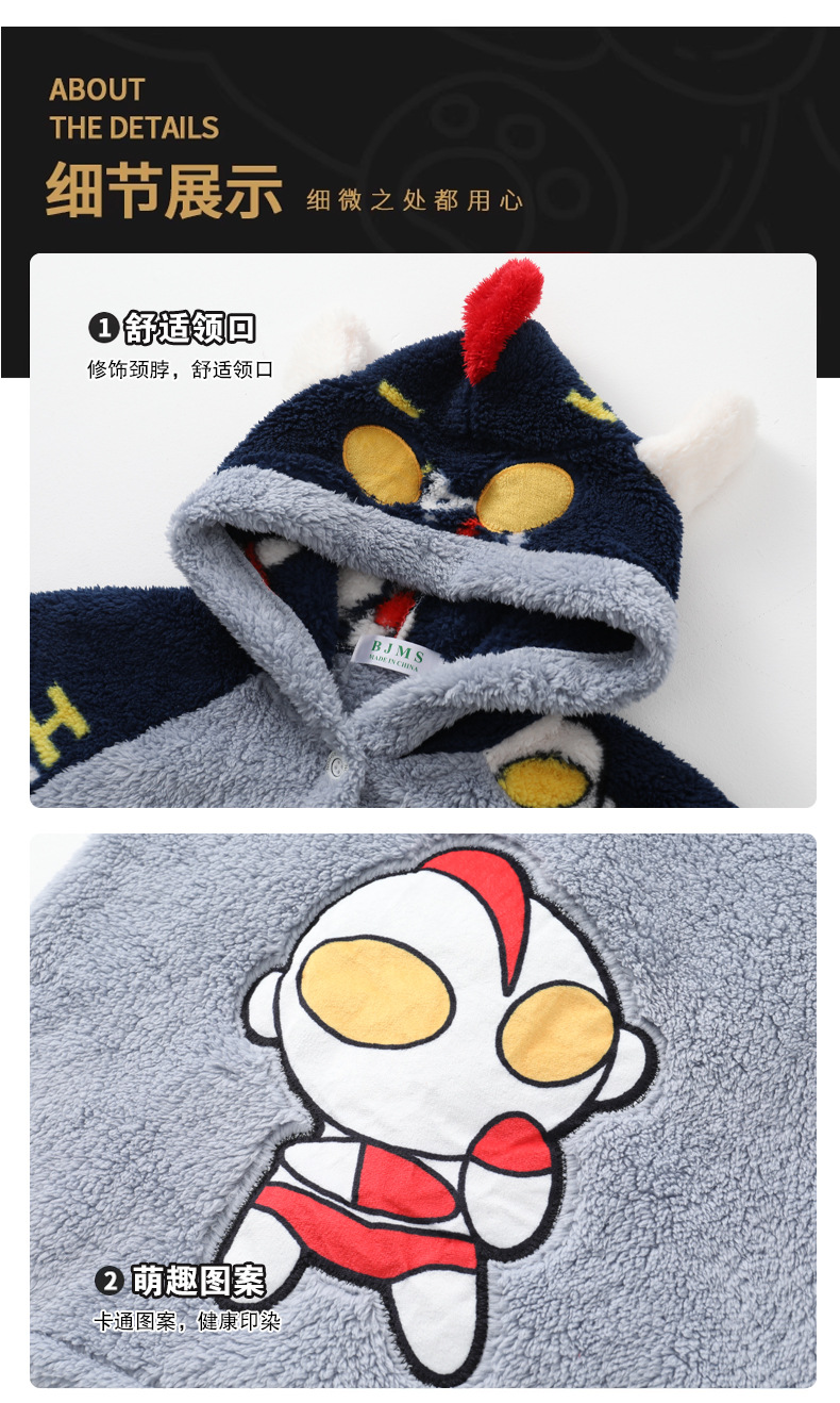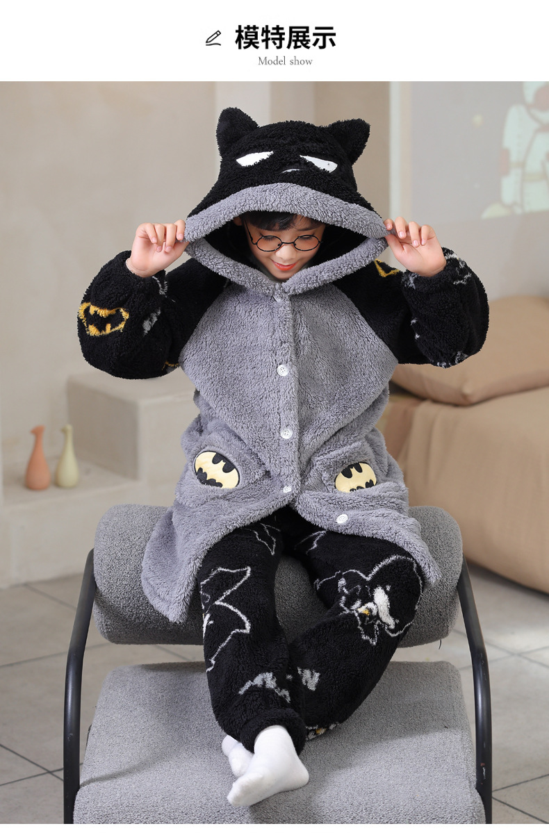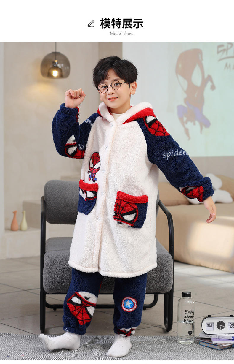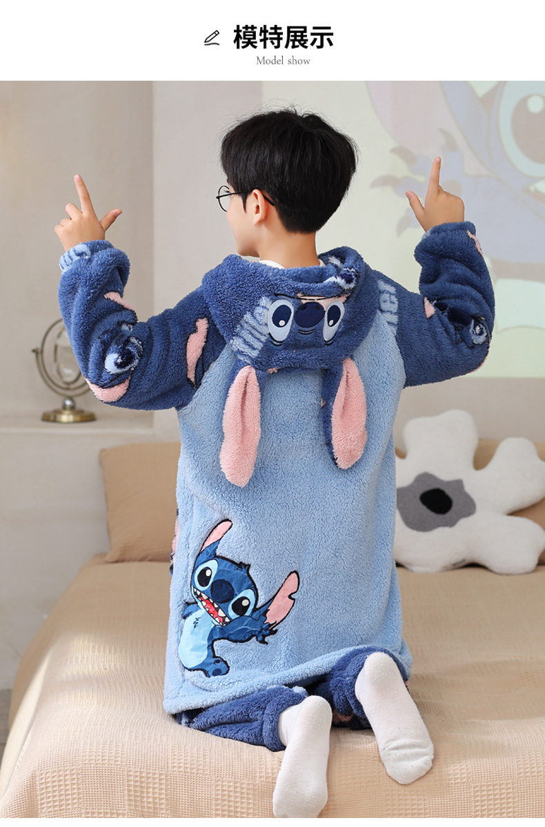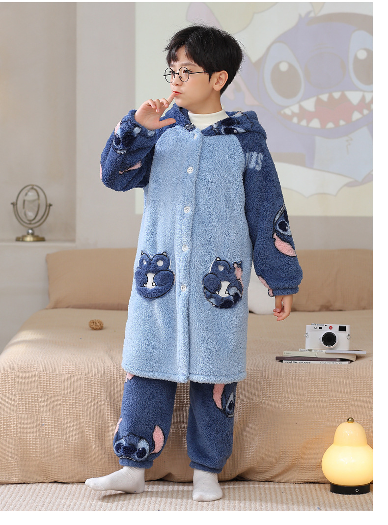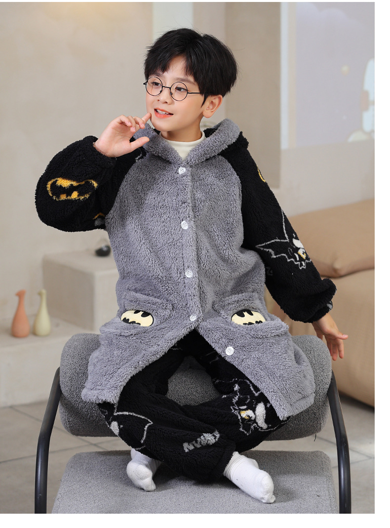 珊瑚绒儿童睡袍秋冬季中大童加厚长款法兰绒卡通熊男女童睡衣套装