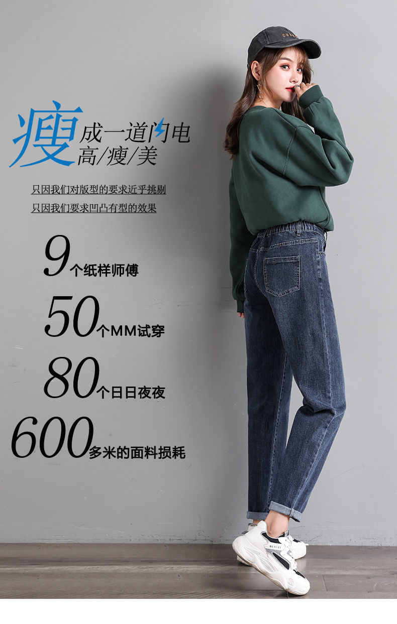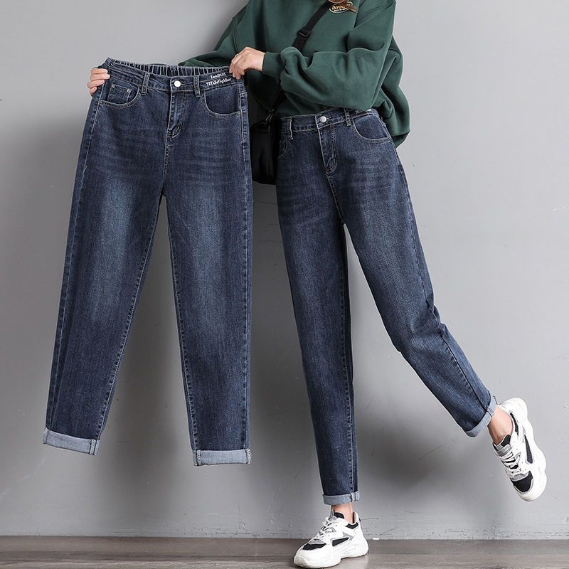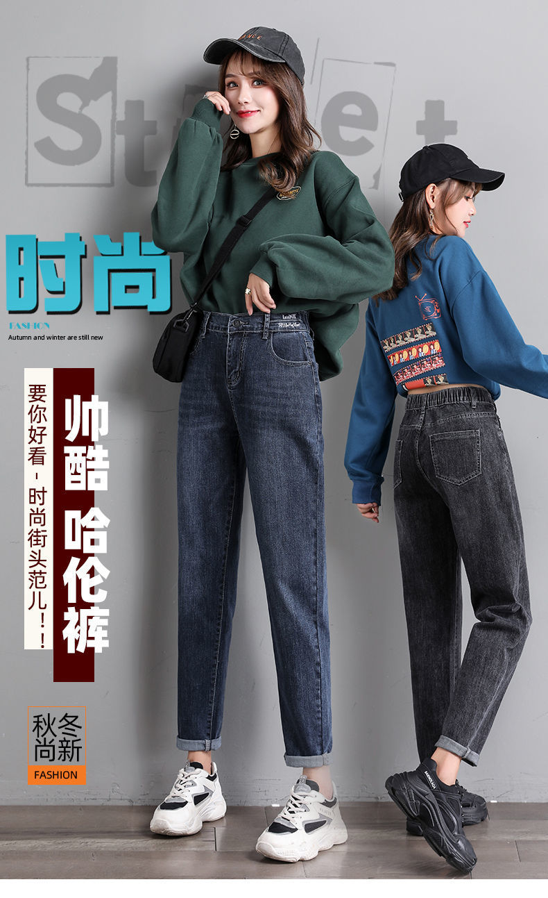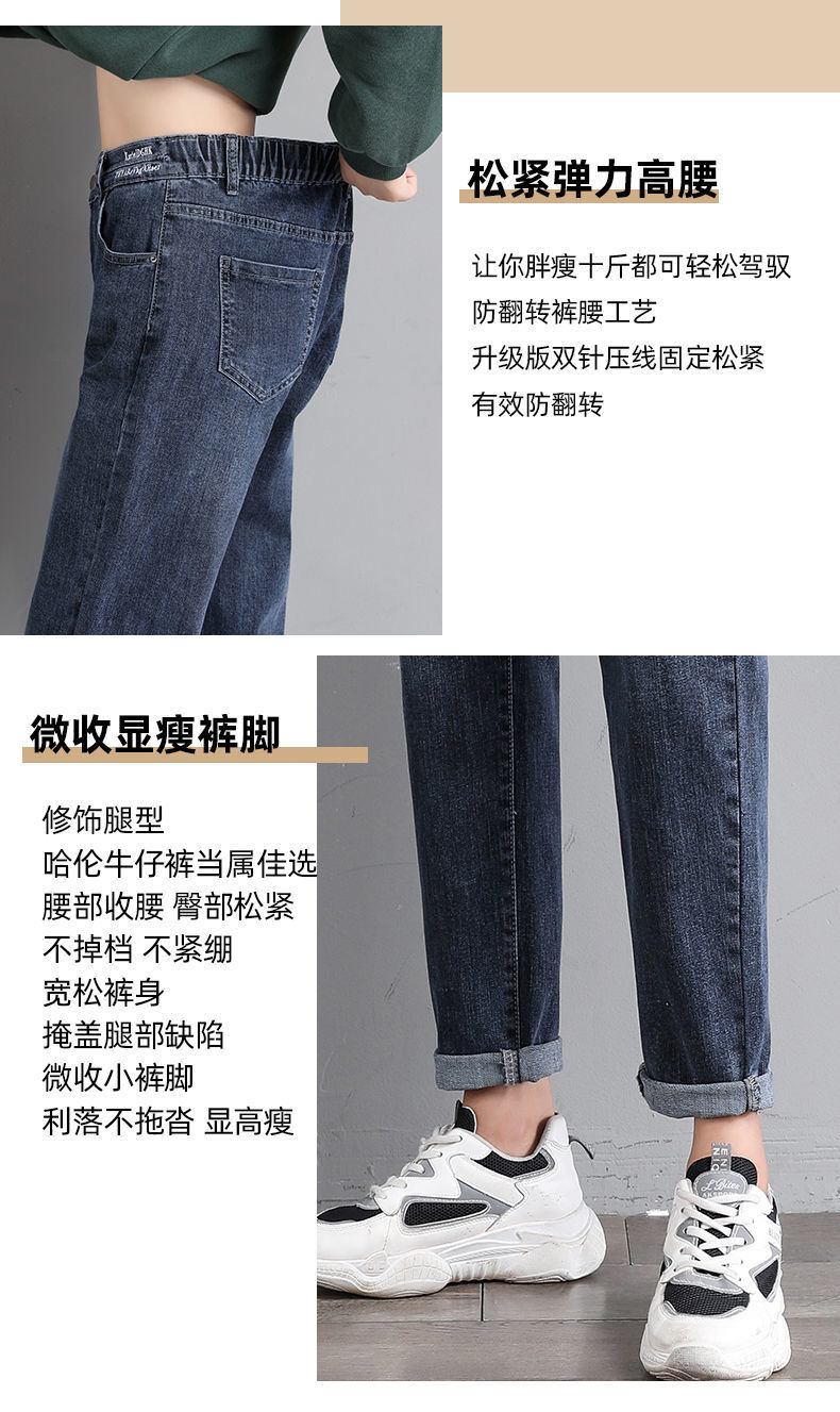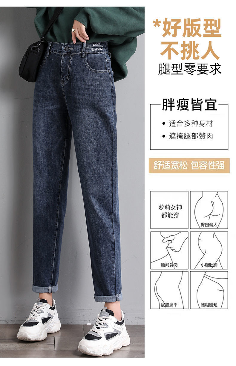 哈伦牛仔裤女高腰直筒长裤大码春秋新款百搭宽松显瘦萝卜老爹裤子