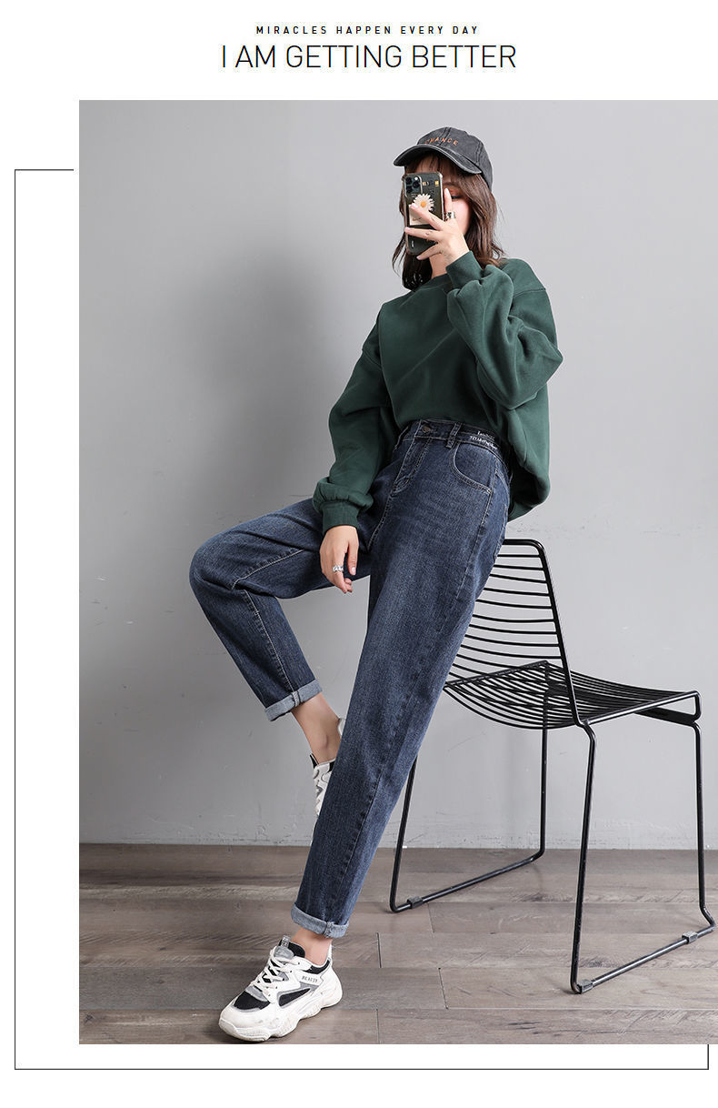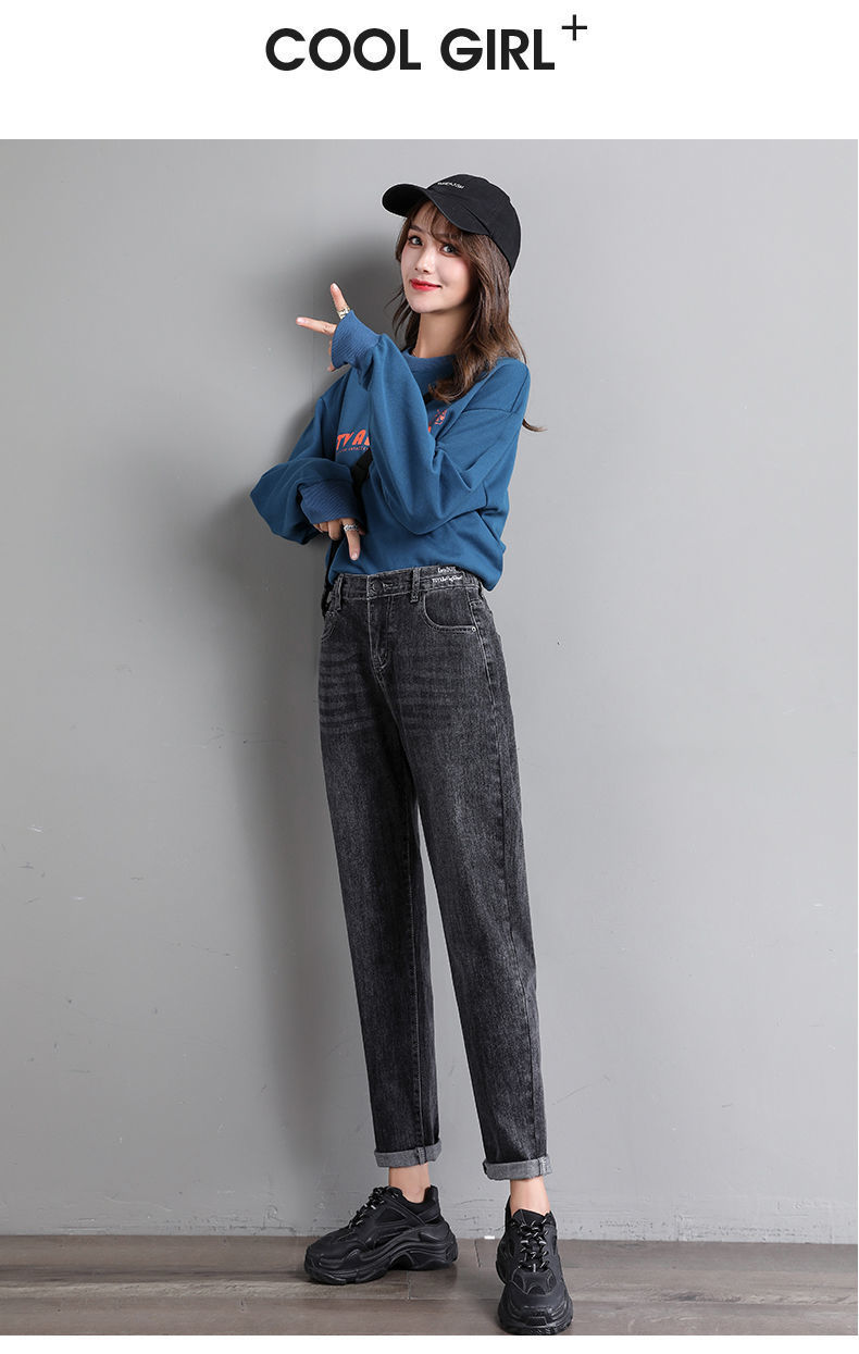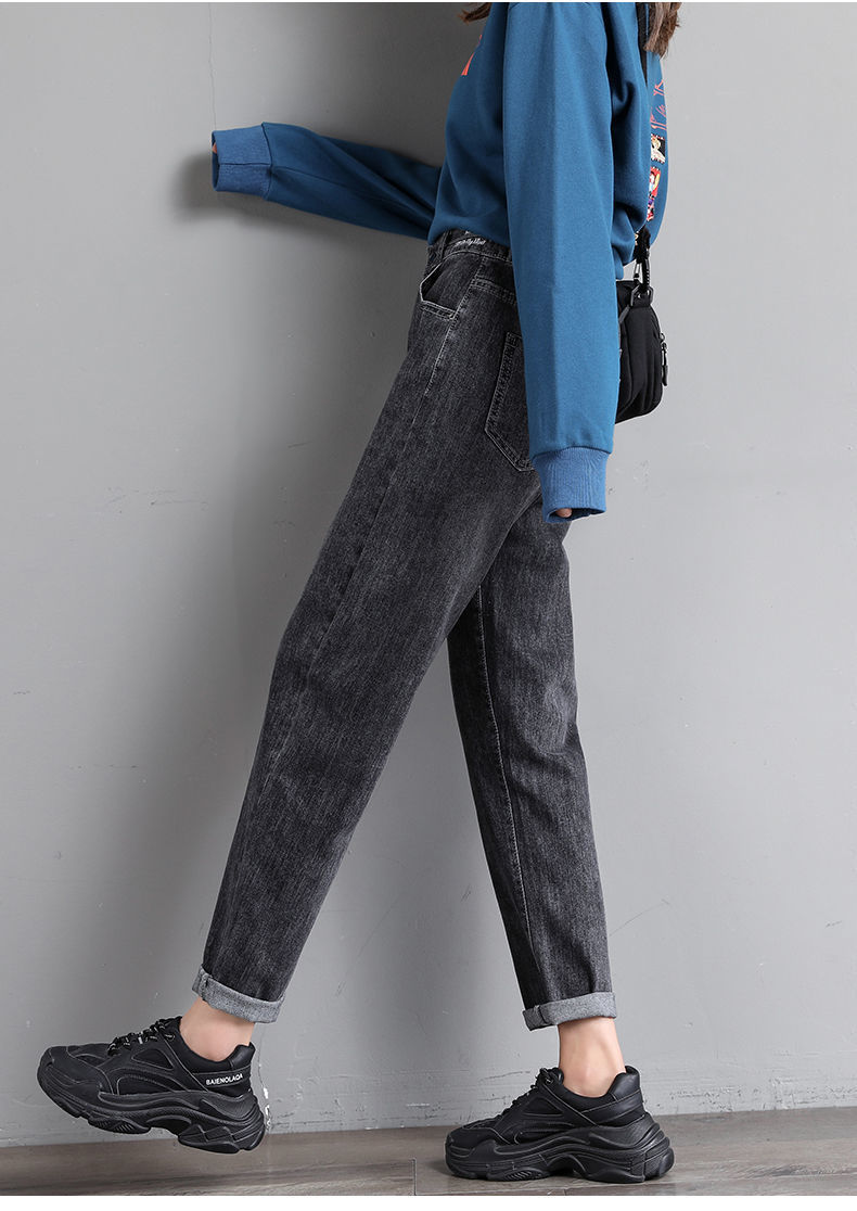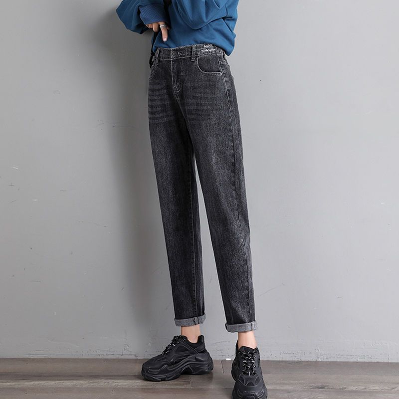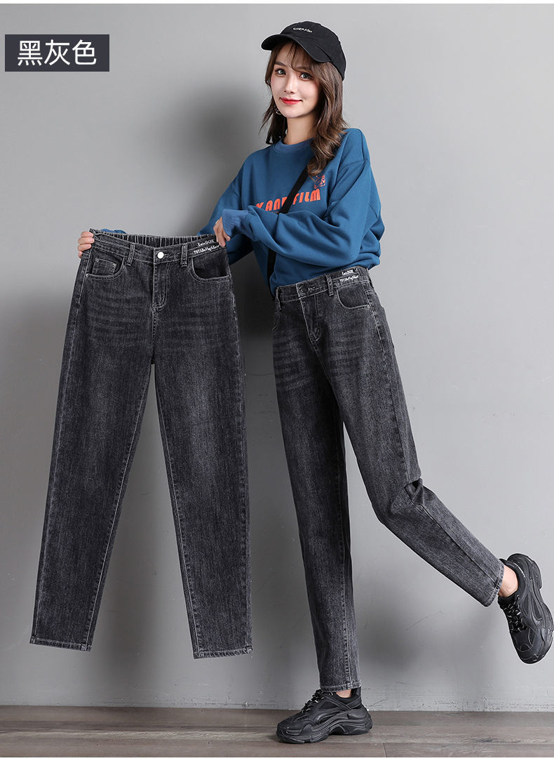 哈伦牛仔裤女高腰直筒长裤大码春秋新款百搭宽松显瘦萝卜老爹裤子
