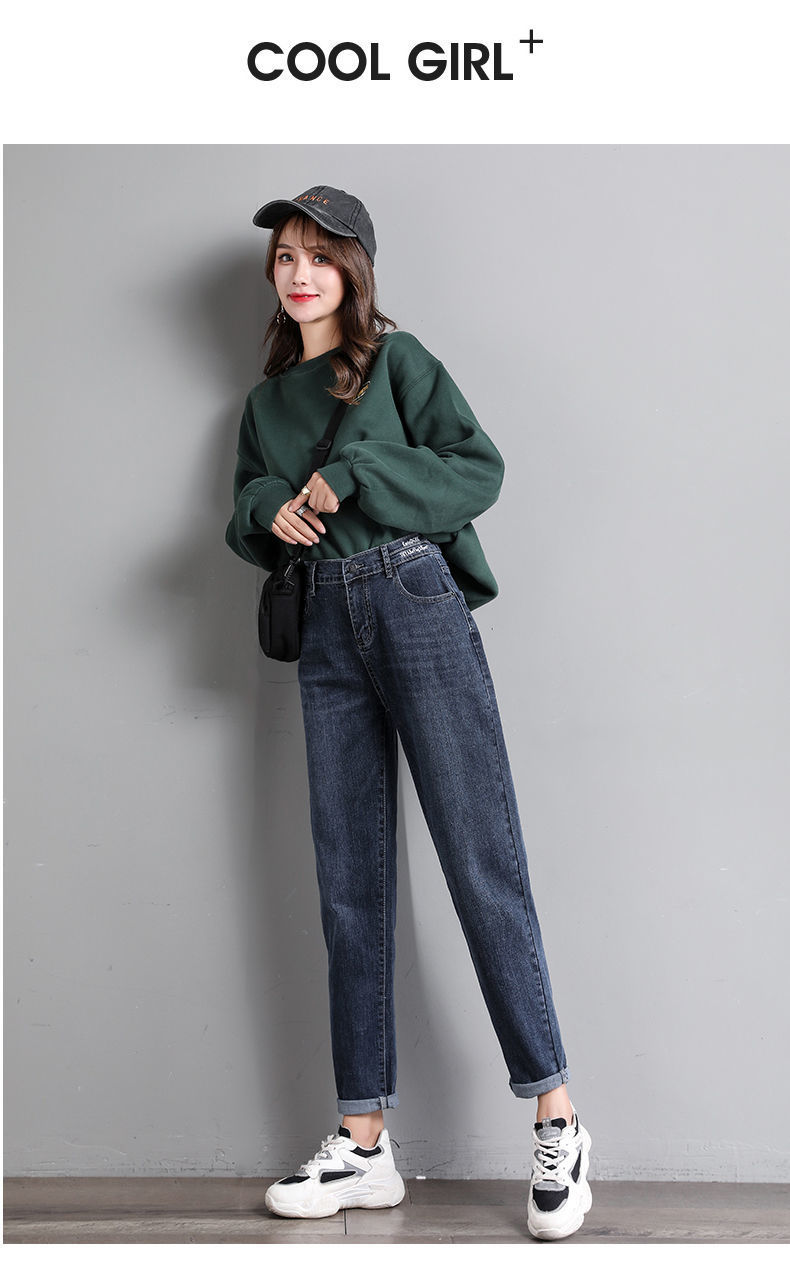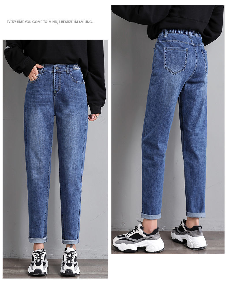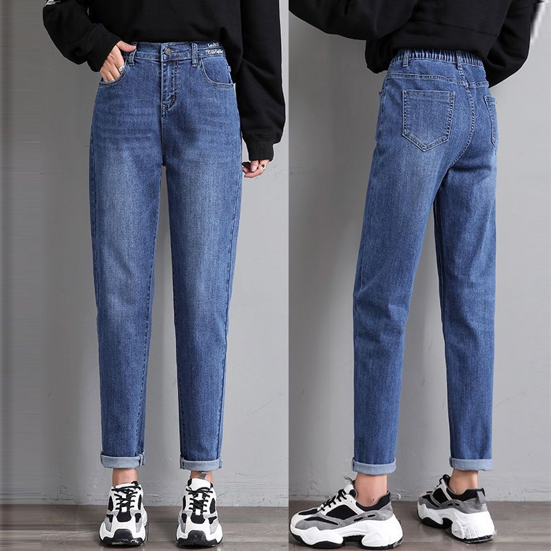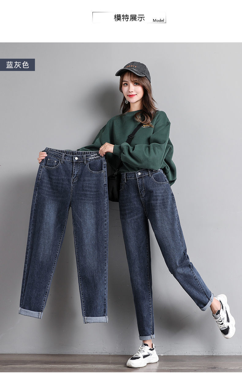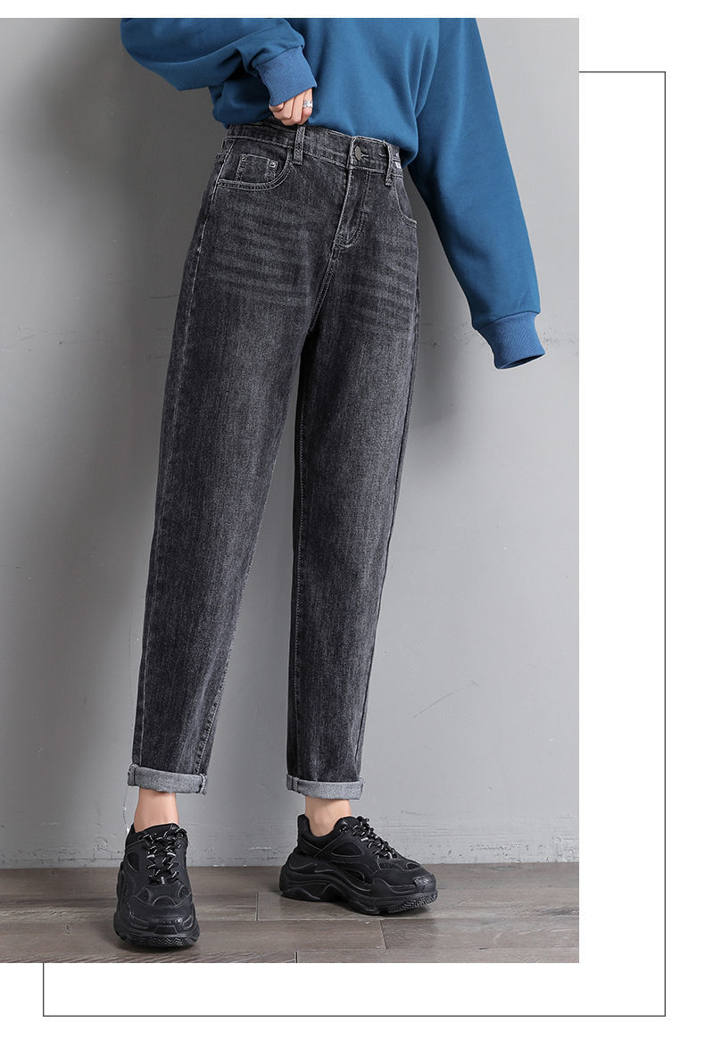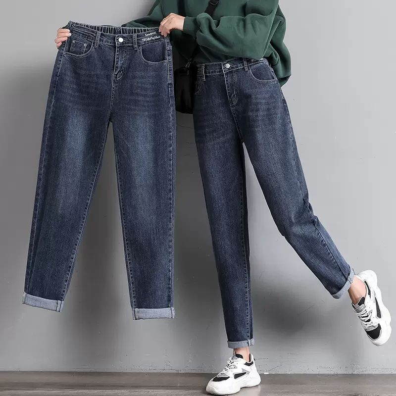 哈伦牛仔裤女高腰直筒长裤大码春秋新款百搭宽松显瘦萝卜老爹裤子