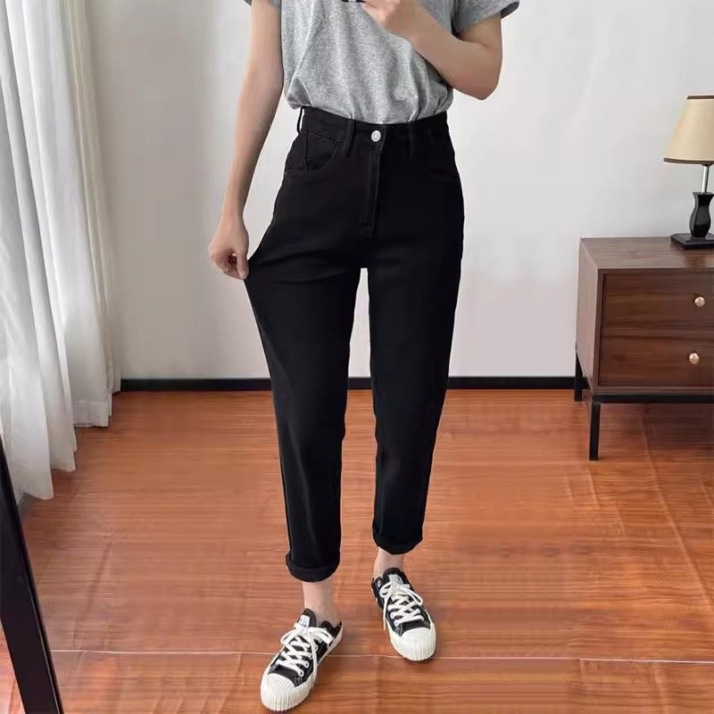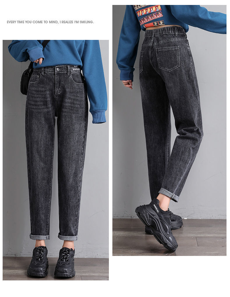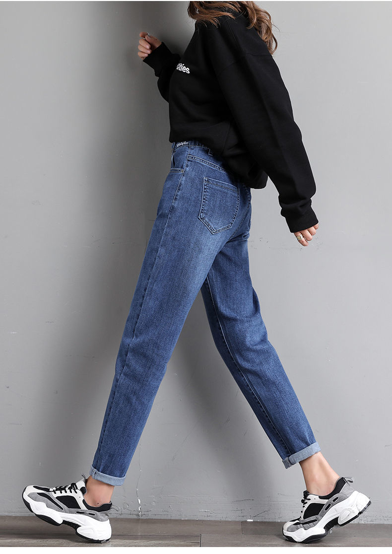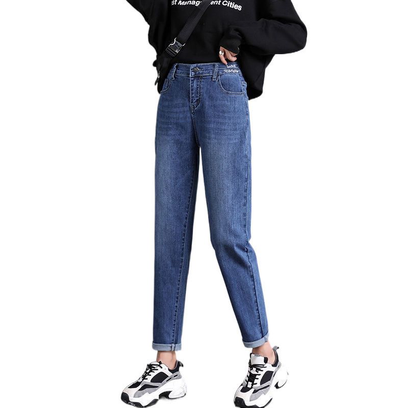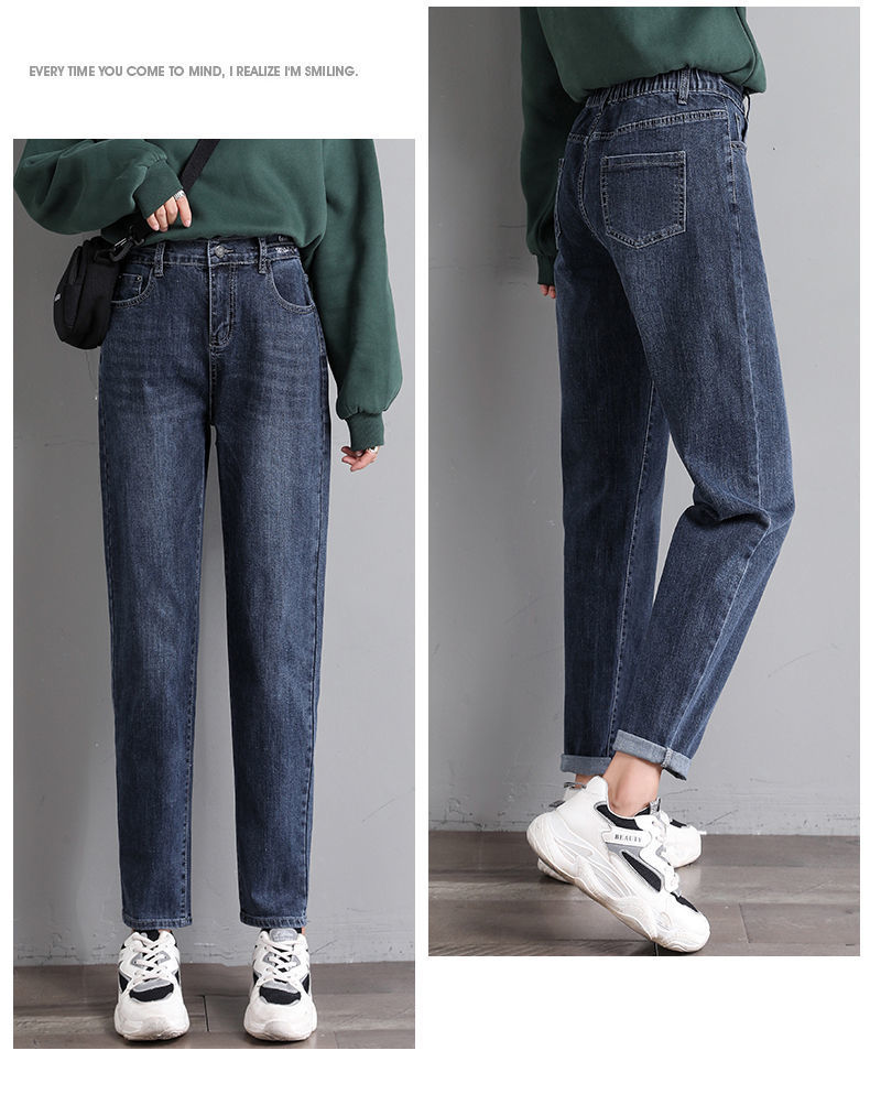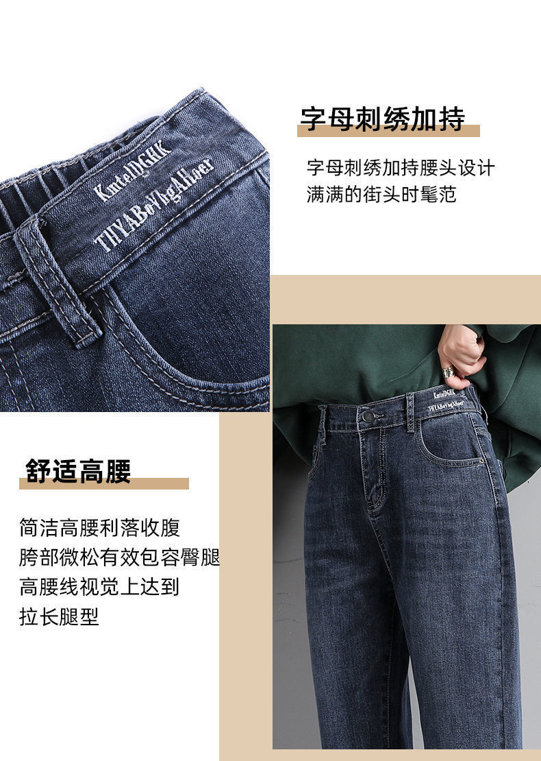 哈伦牛仔裤女高腰直筒长裤大码春秋新款百搭宽松显瘦萝卜老爹裤子