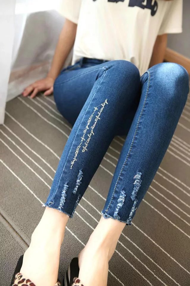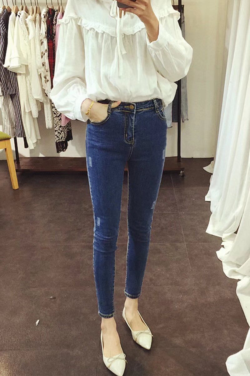 2014新款韩版修身显瘦牛仔裤女装小脚裤中腰铅笔裤一件代发