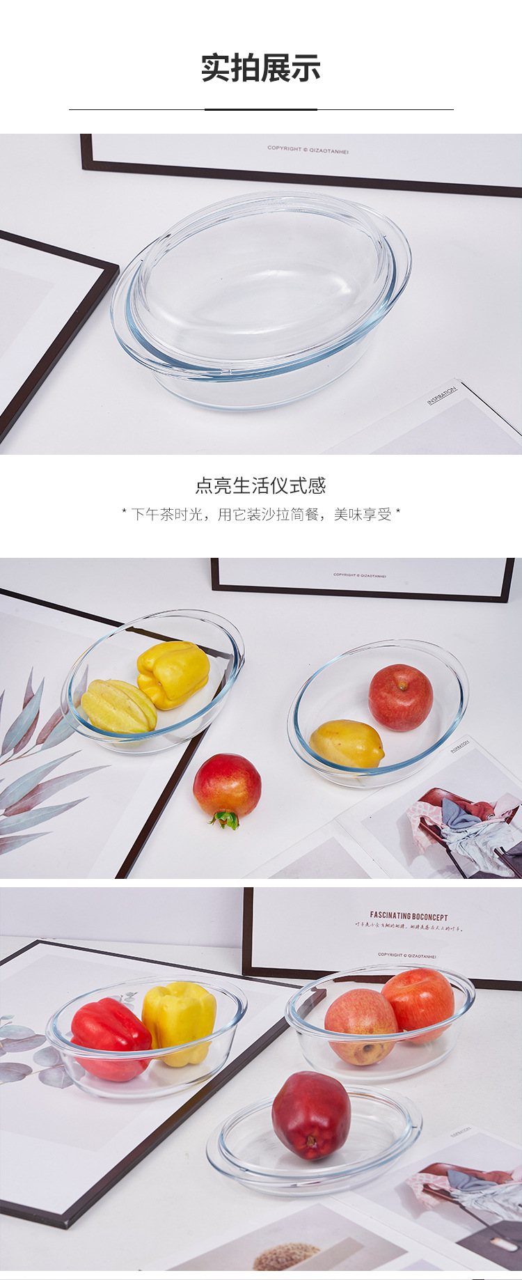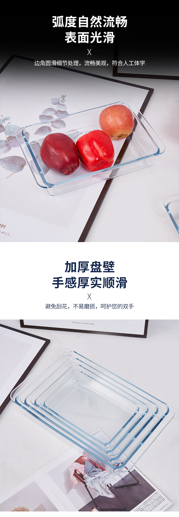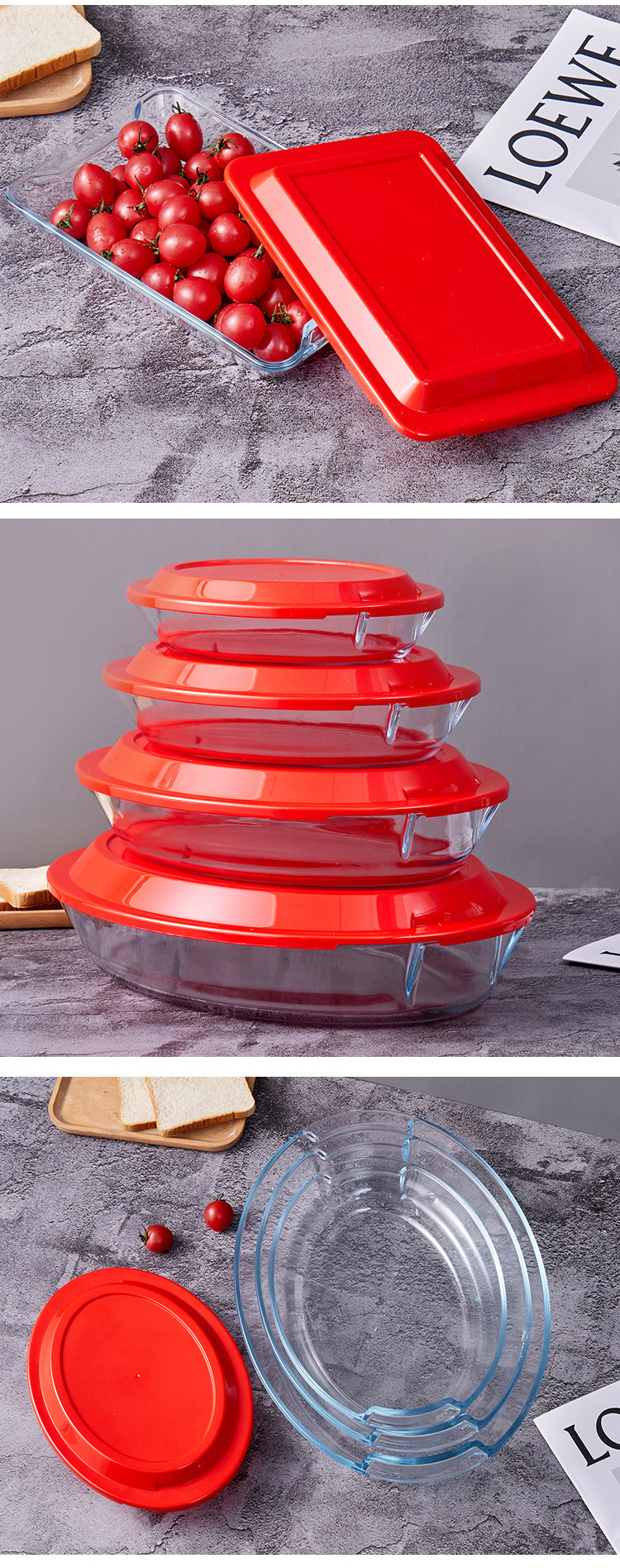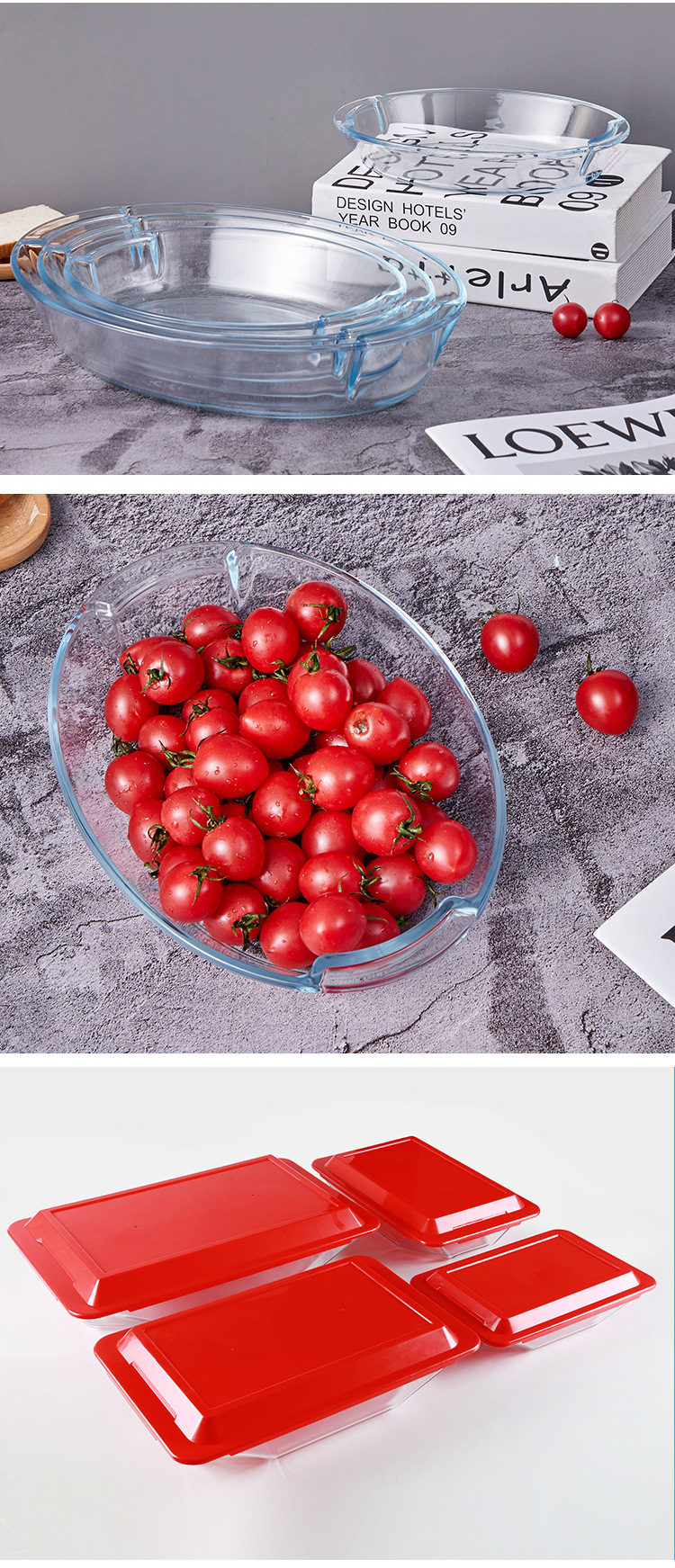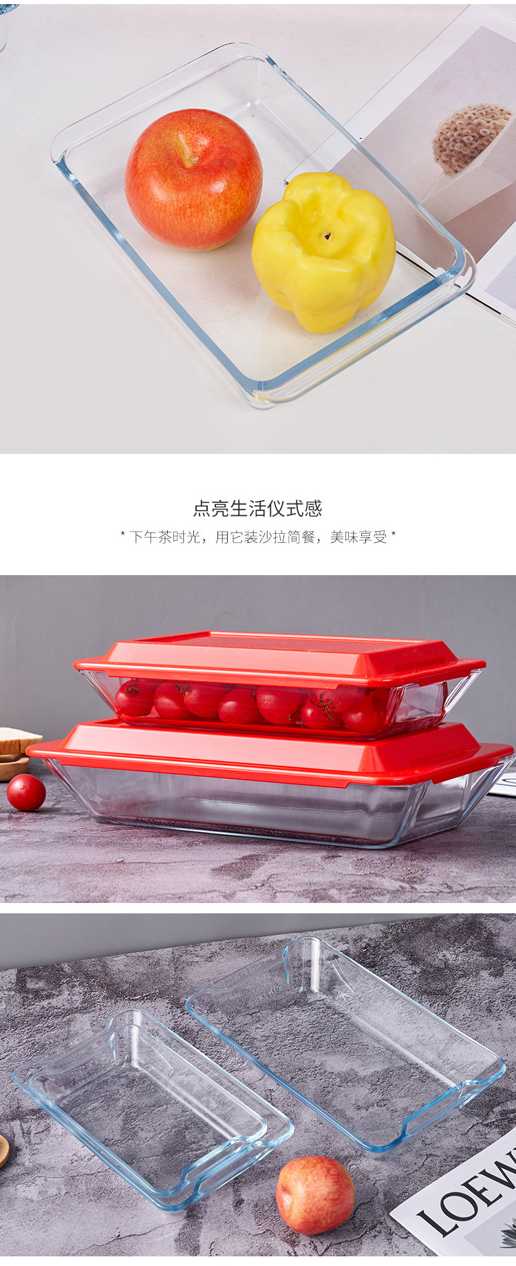 菲内克斯钢化玻璃耐热长方形椭圆形烤盘带盖子玻璃盘子托盘储物盒