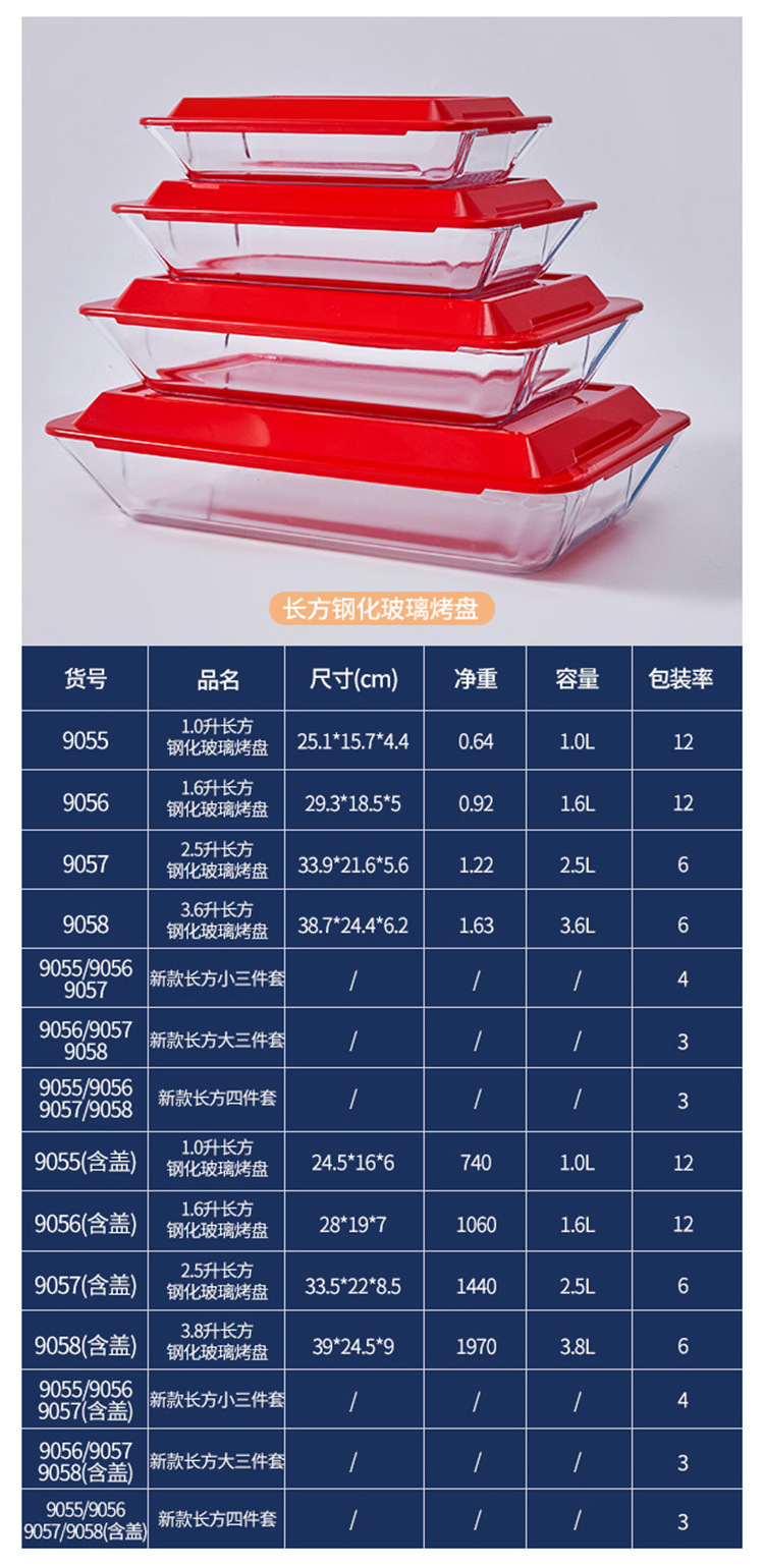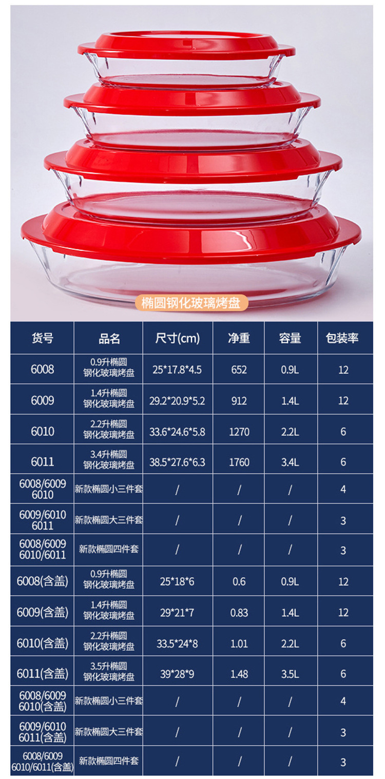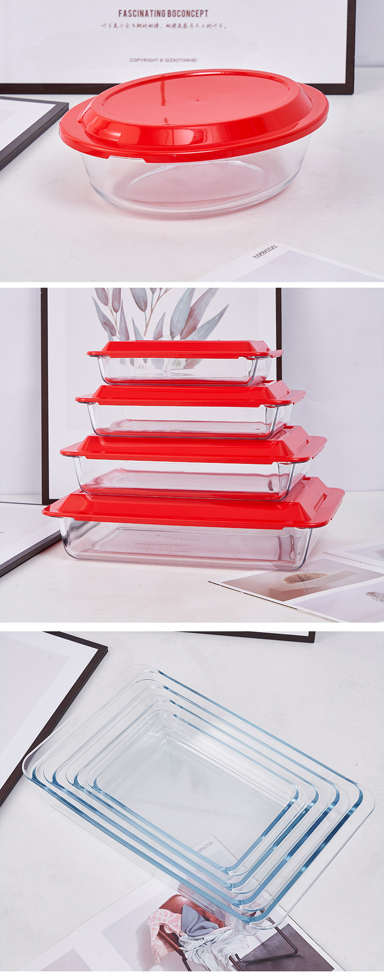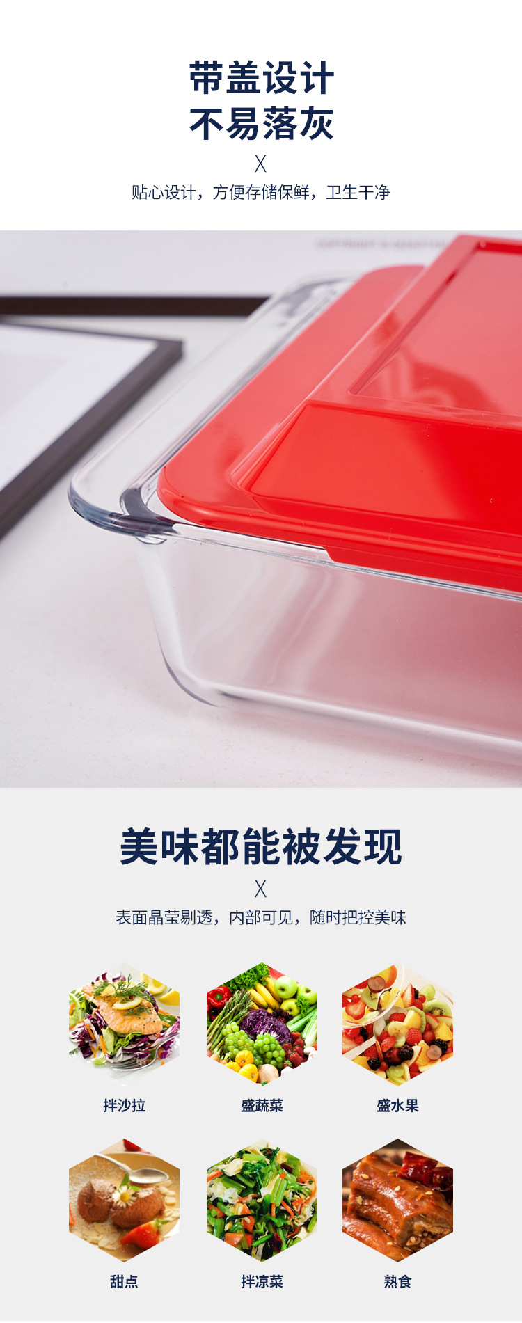 菲内克斯钢化玻璃耐热长方形椭圆形烤盘带盖子玻璃盘子托盘储物盒