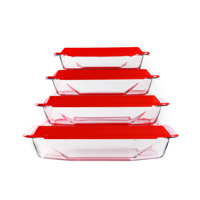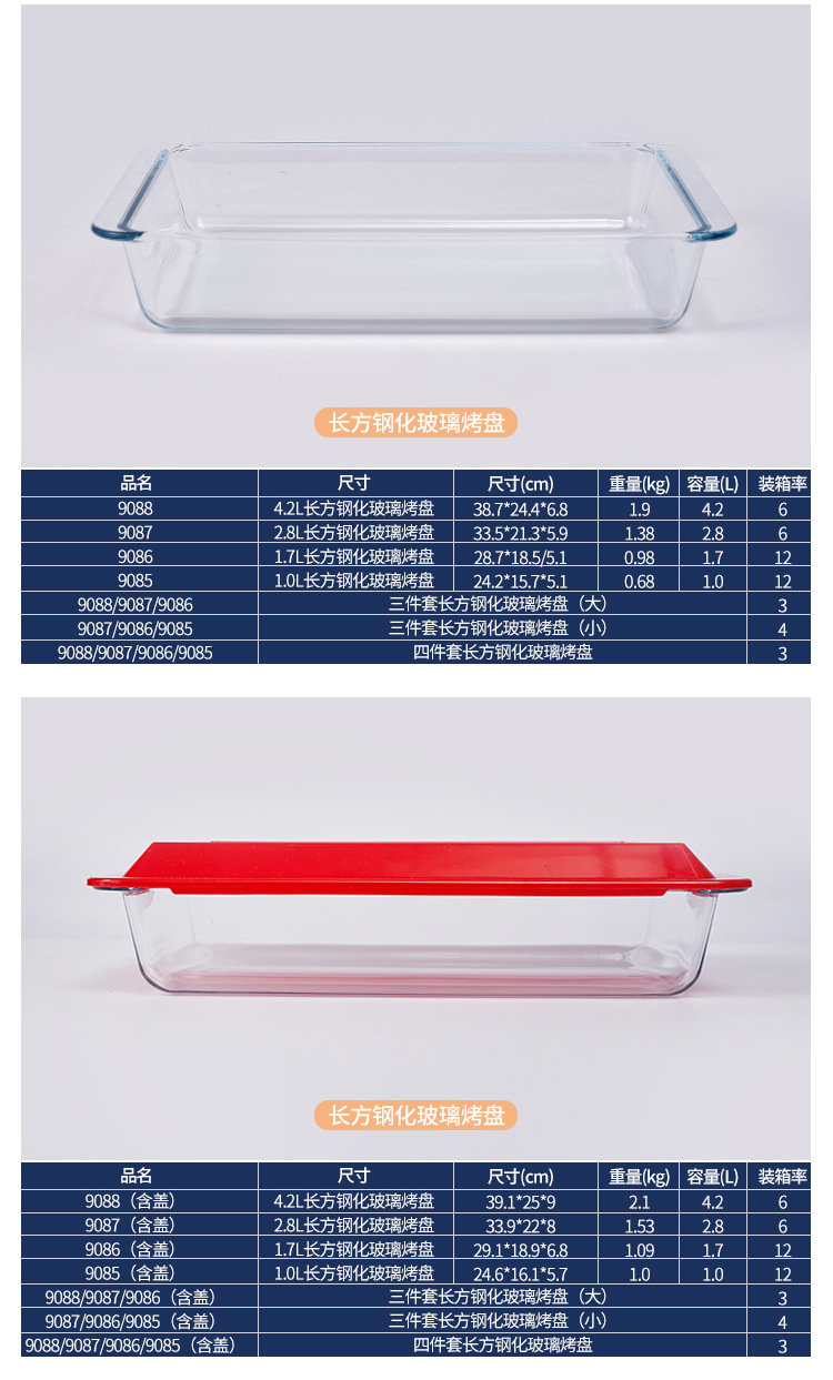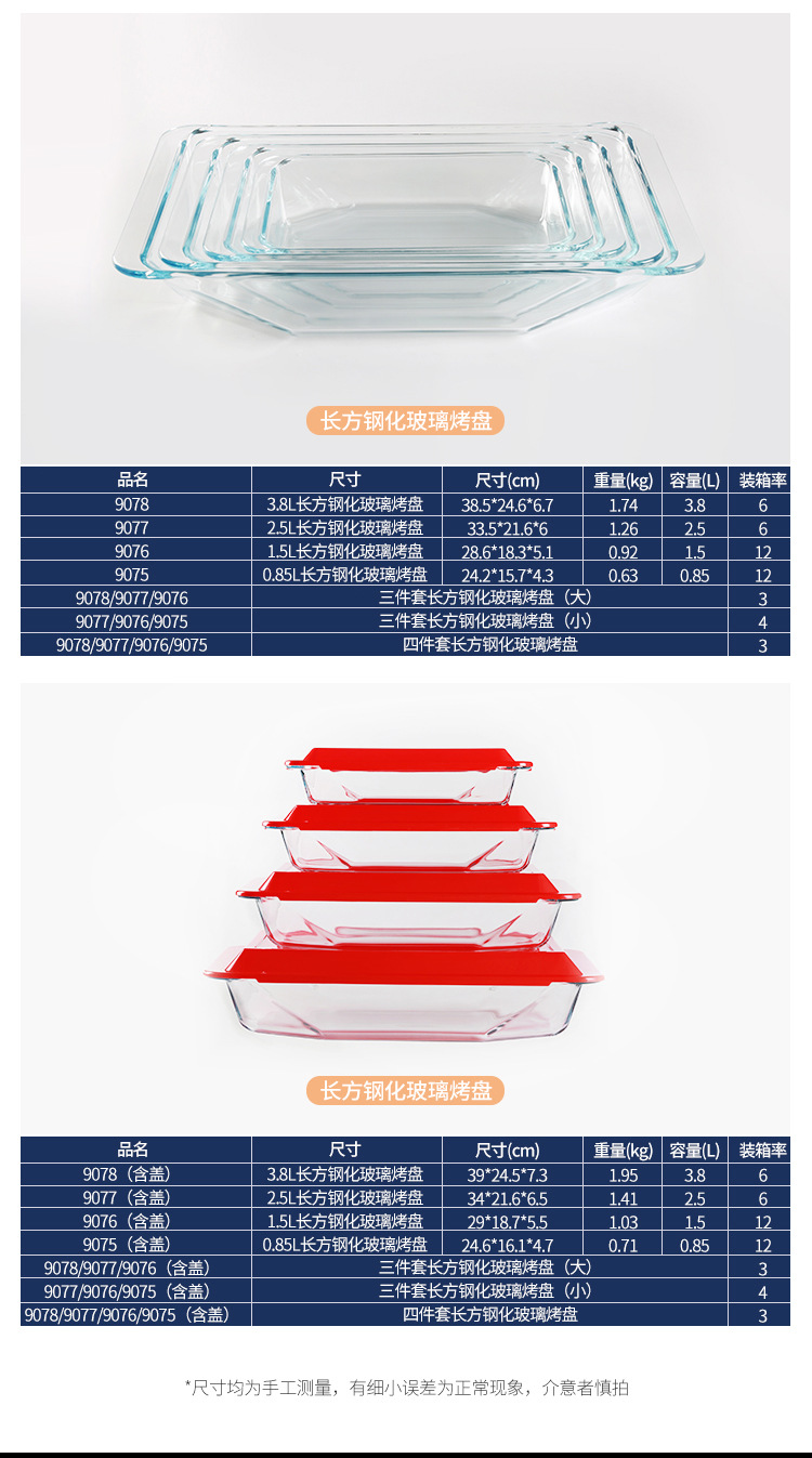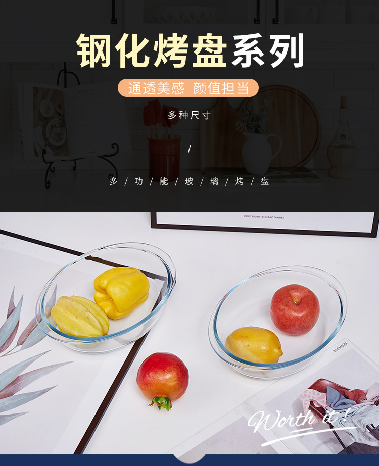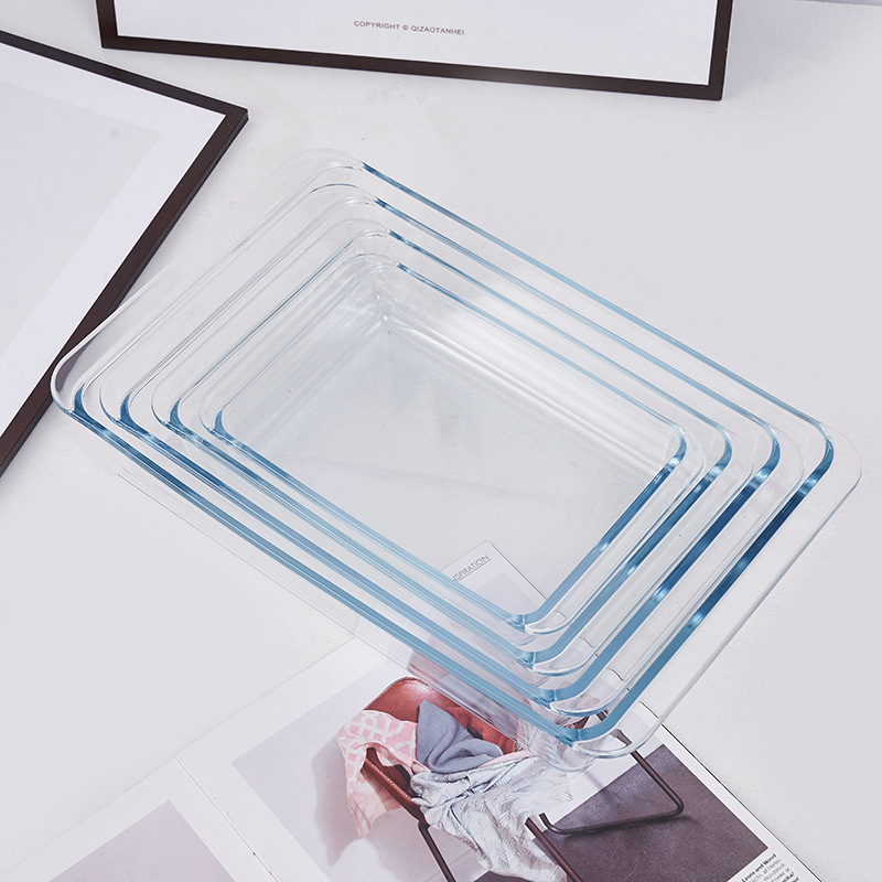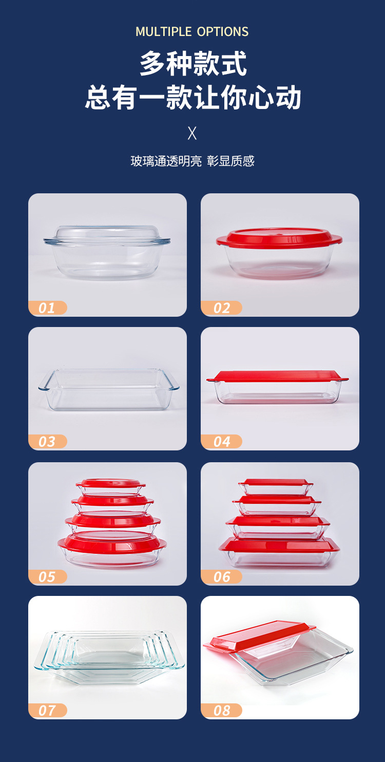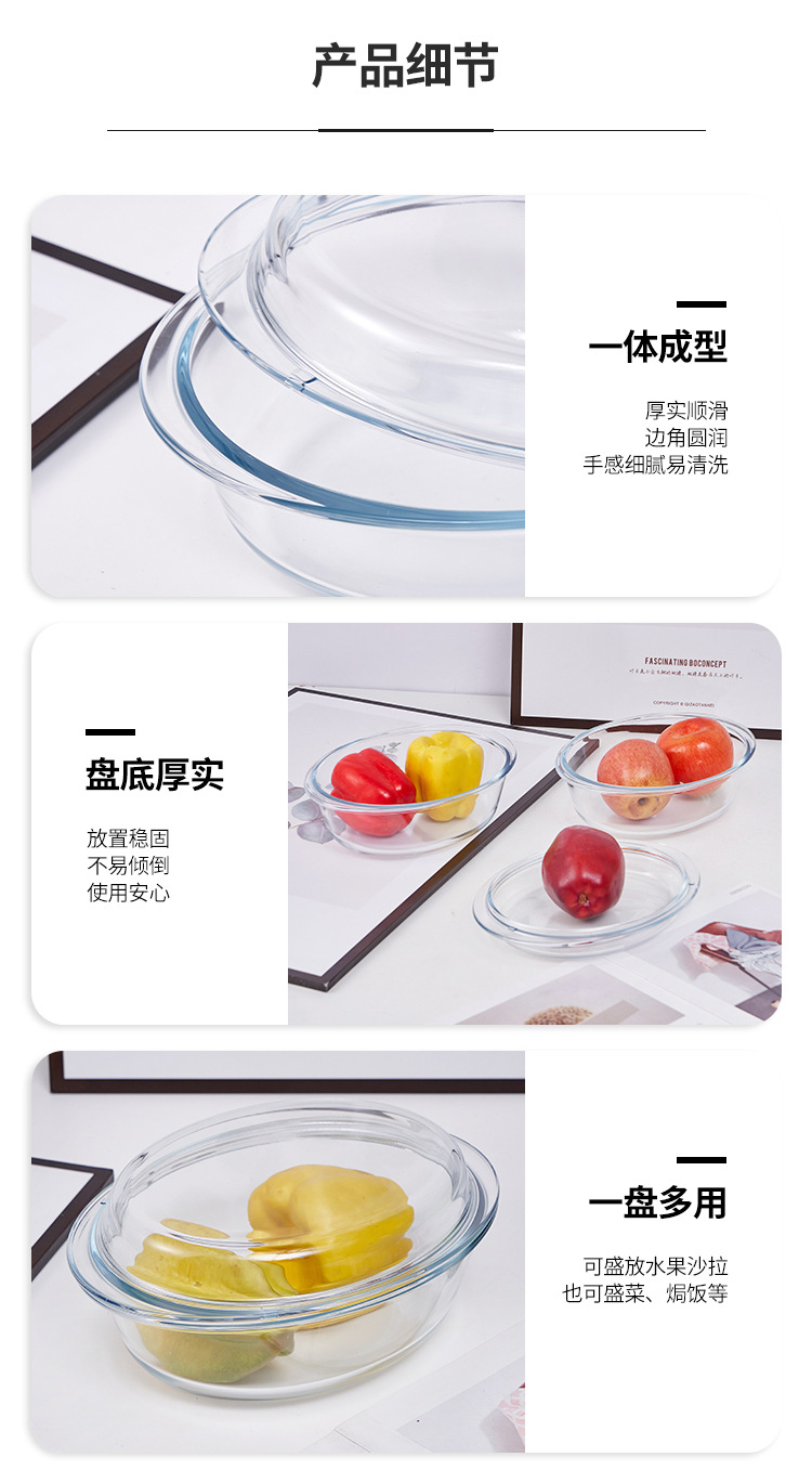 菲内克斯钢化玻璃耐热长方形椭圆形烤盘带盖子玻璃盘子托盘储物盒