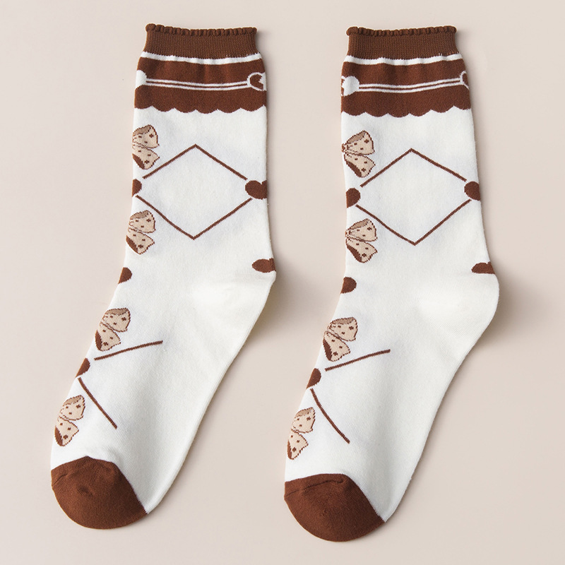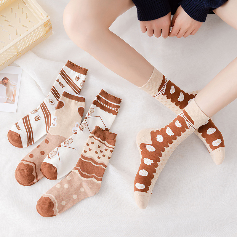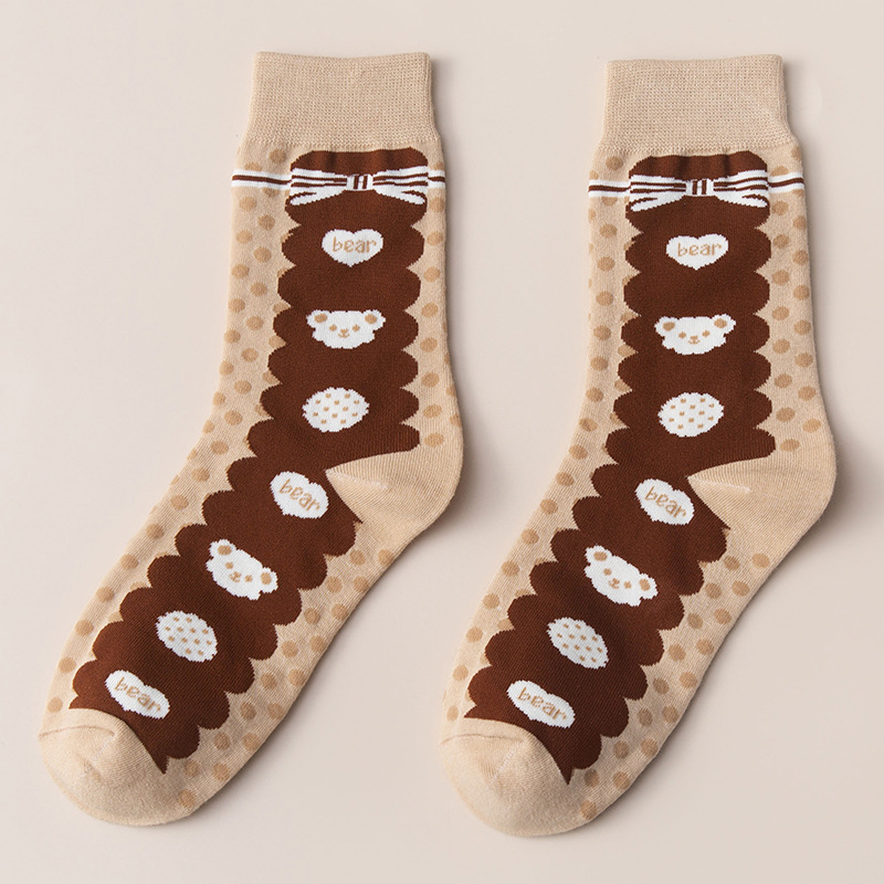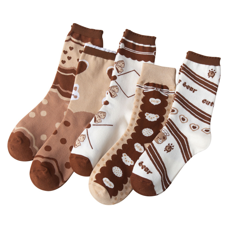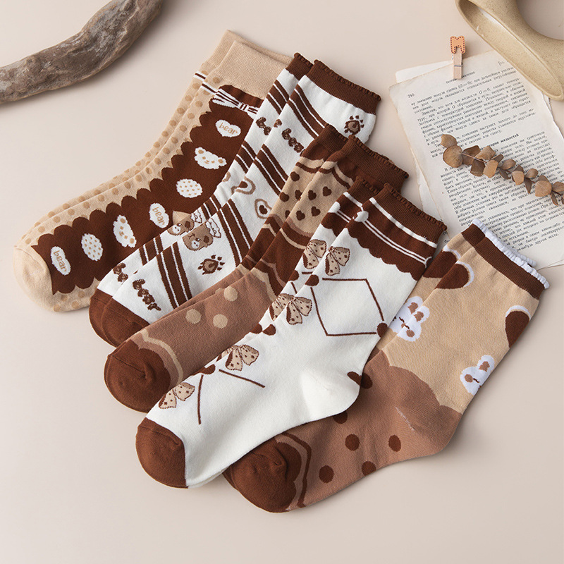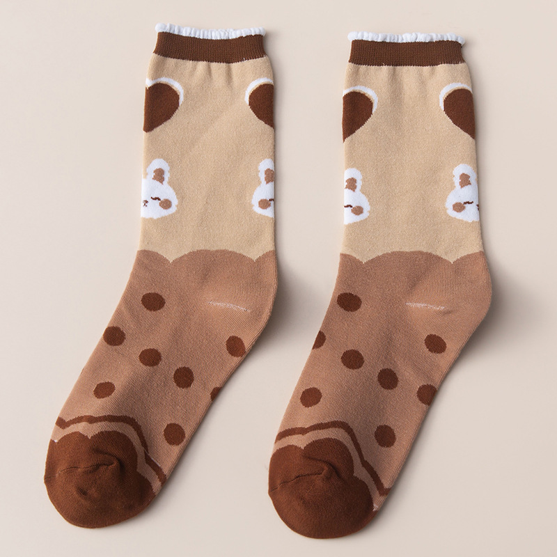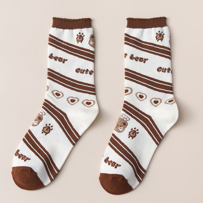 秋冬新品日系漫画小熊中筒女袜棉质可爱潮袜女士清新中筒袜子批发