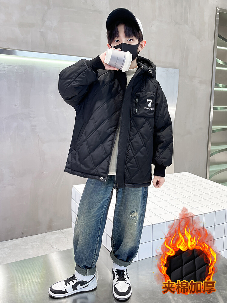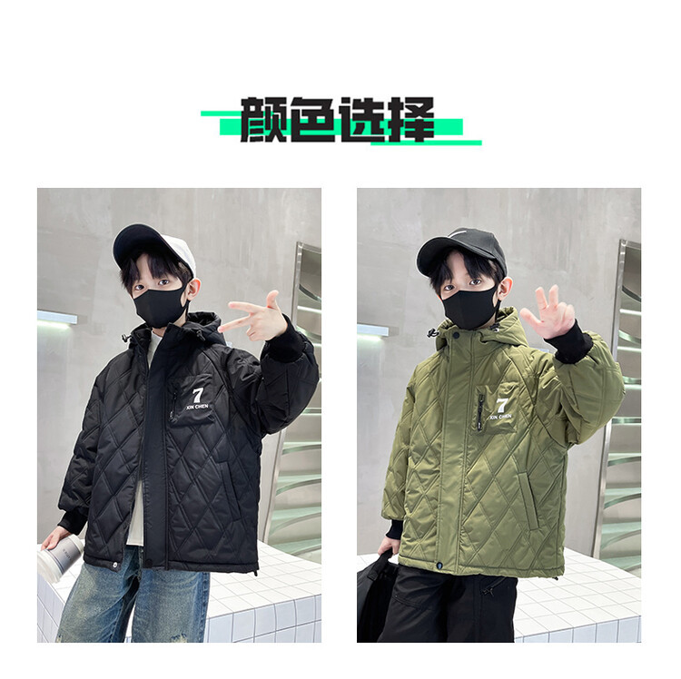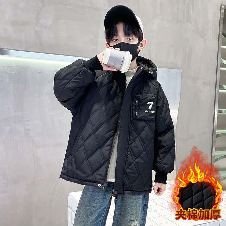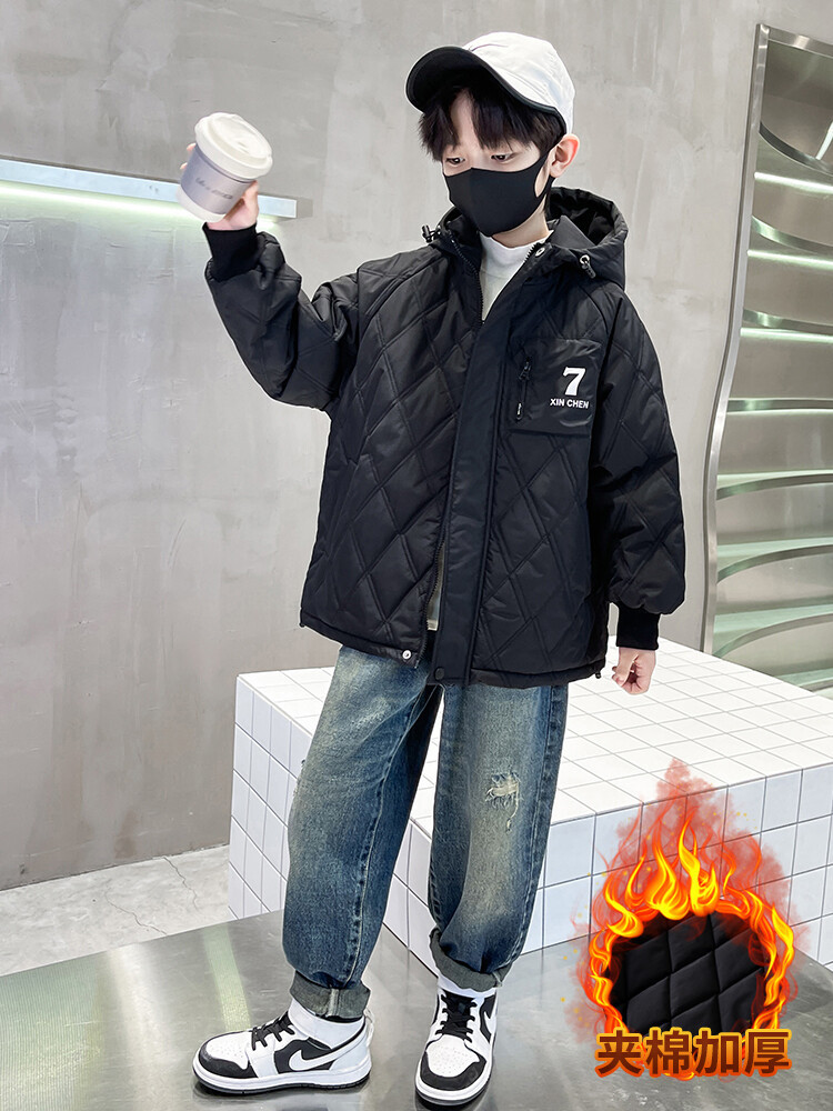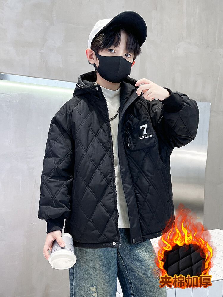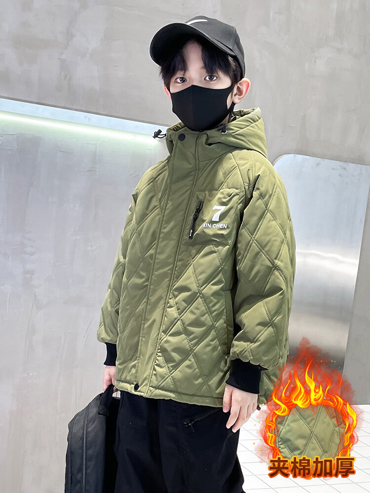 男童加棉外套秋冬季2024新款二棉加厚中大童风衣痞帅男孩棉衣潮流