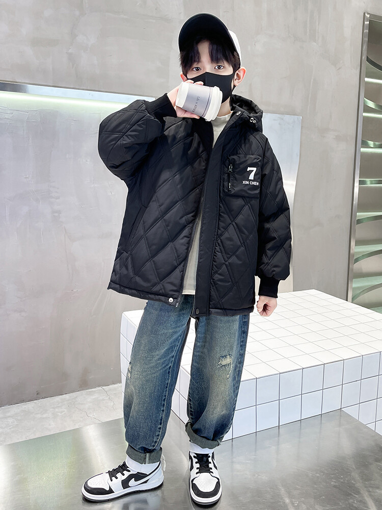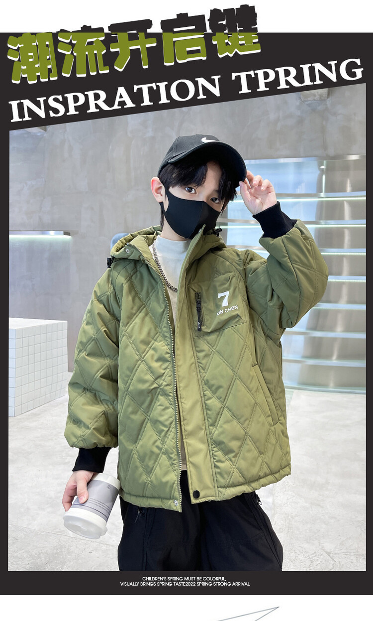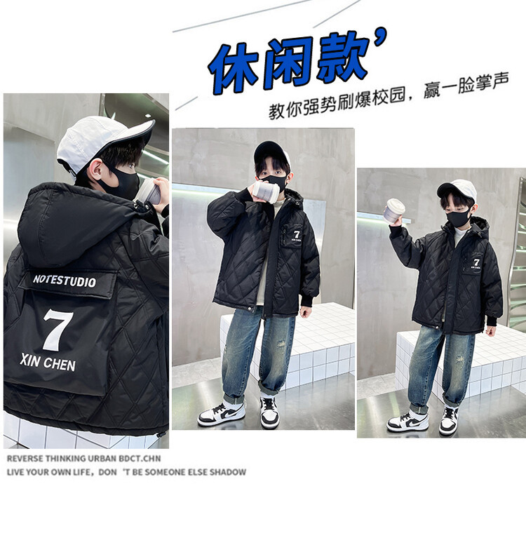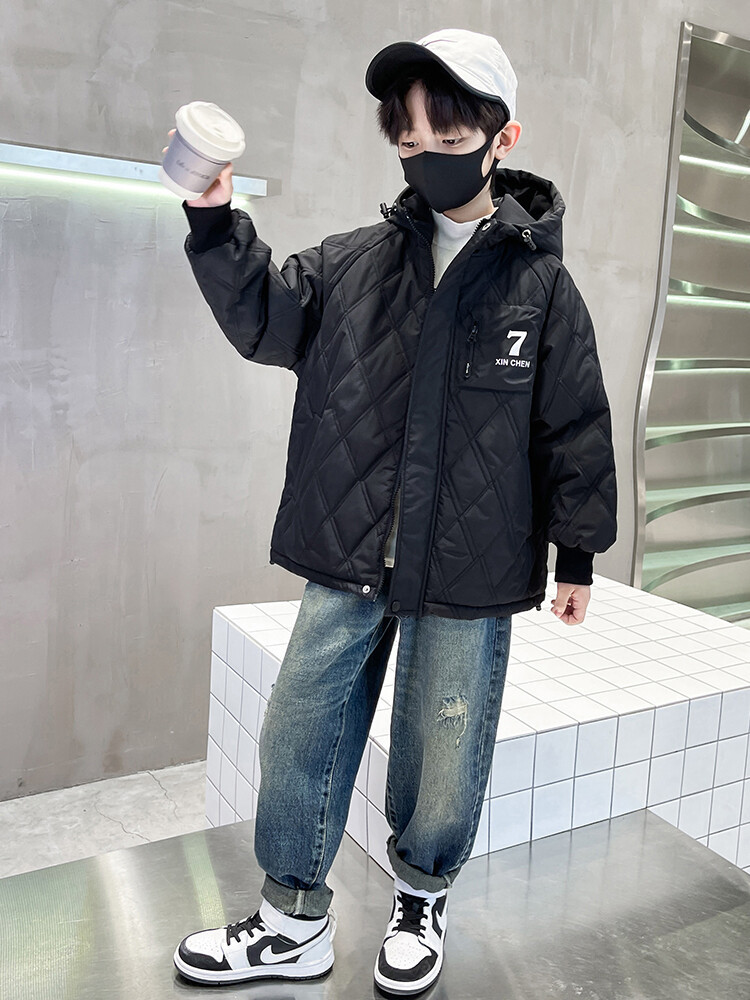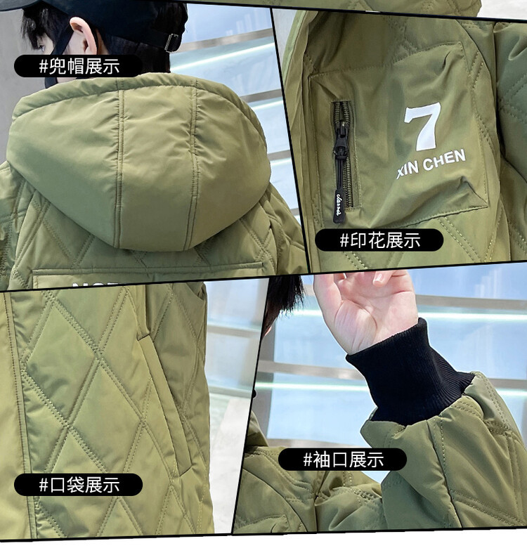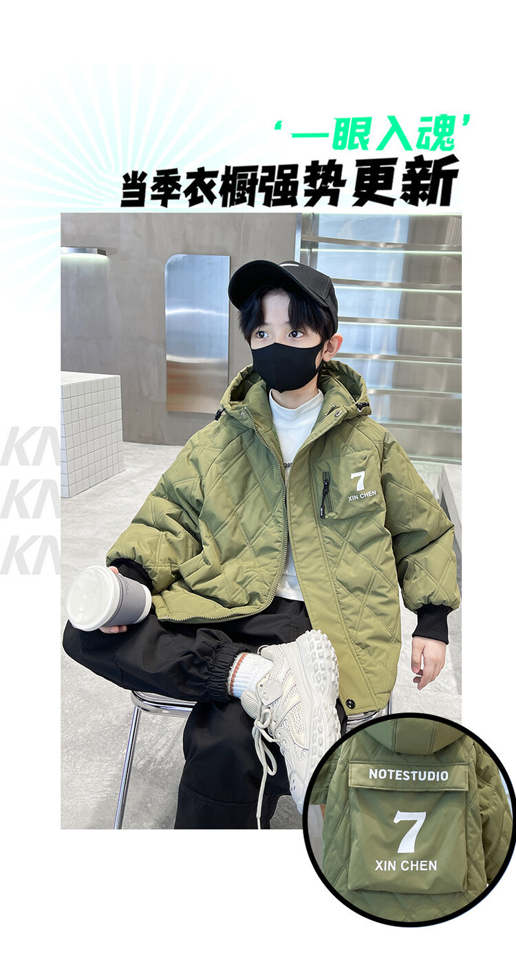 男童加棉外套秋冬季2024新款二棉加厚中大童风衣痞帅男孩棉衣潮流