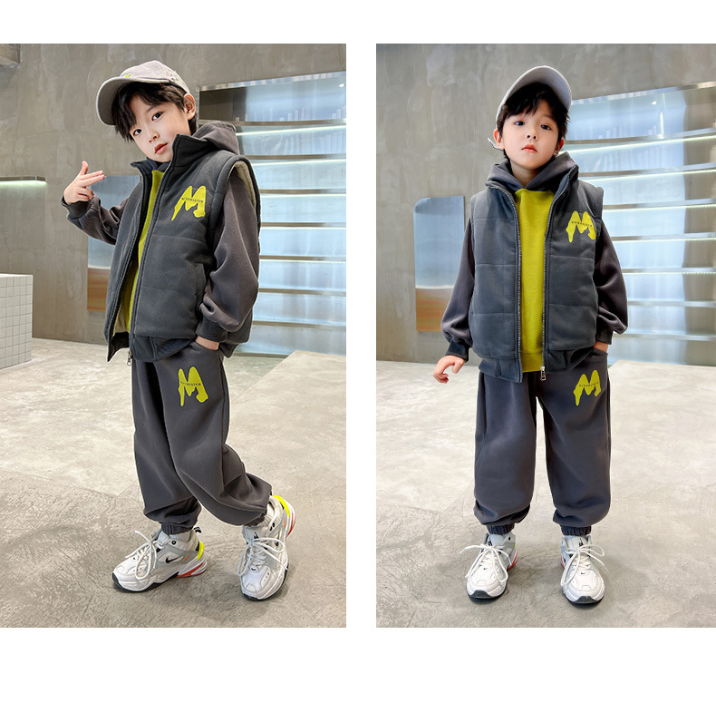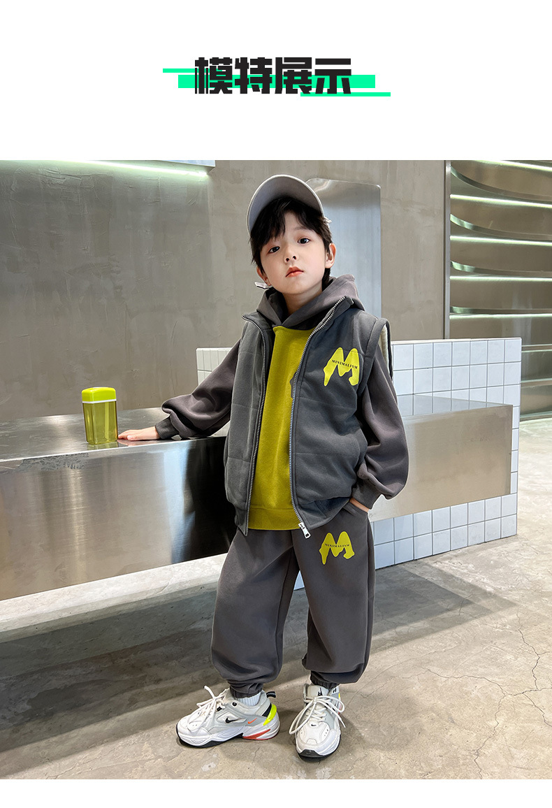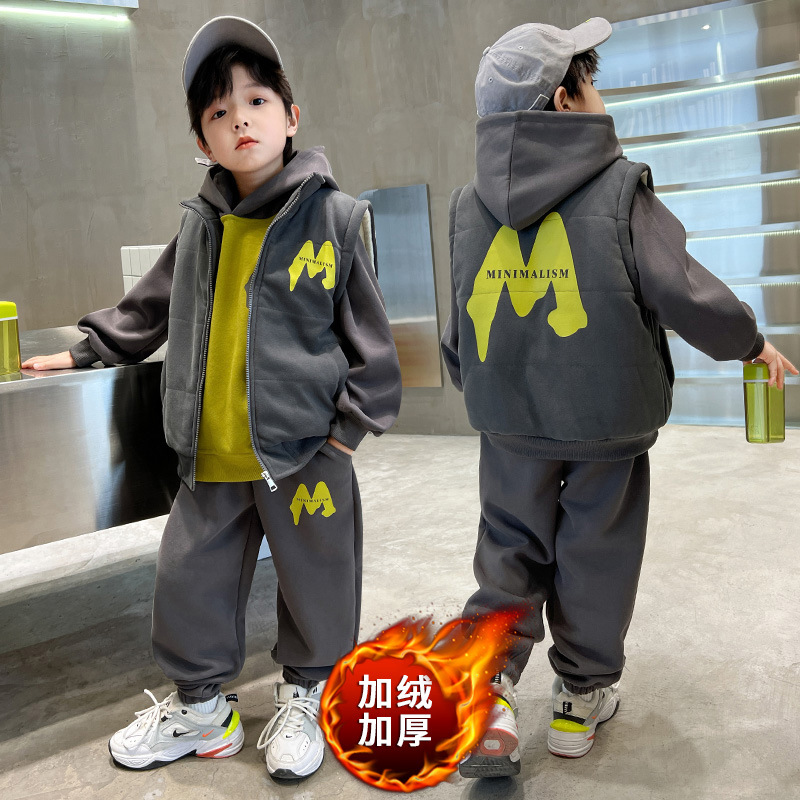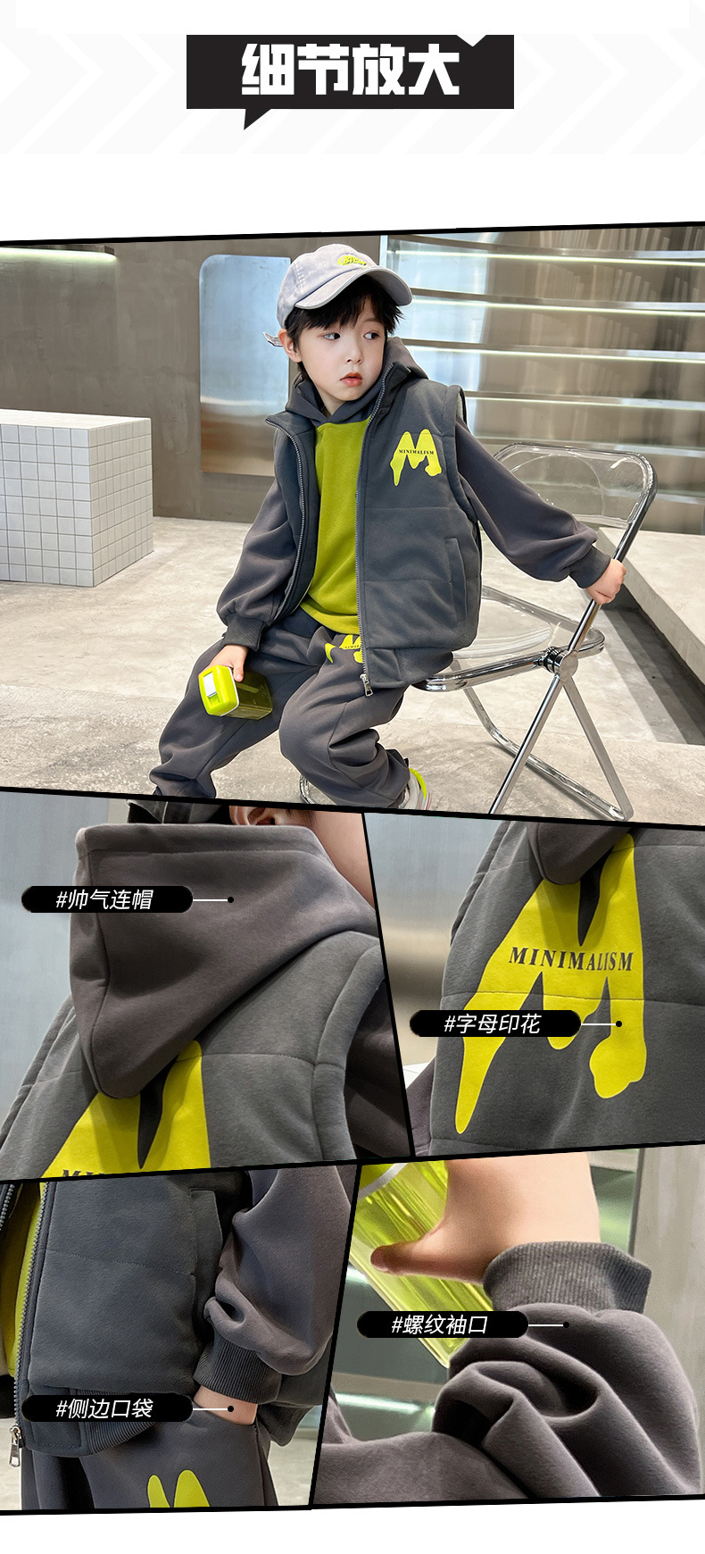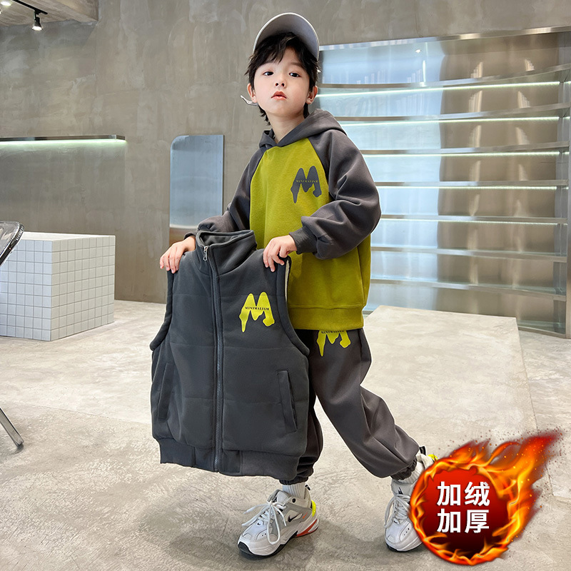 男童套装纯棉加绒三件套2024冬季新款中大童运动套装一体绒潮款