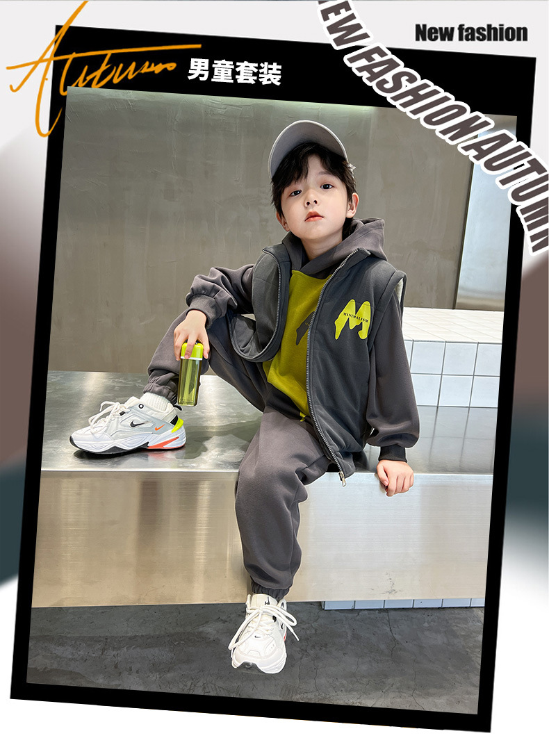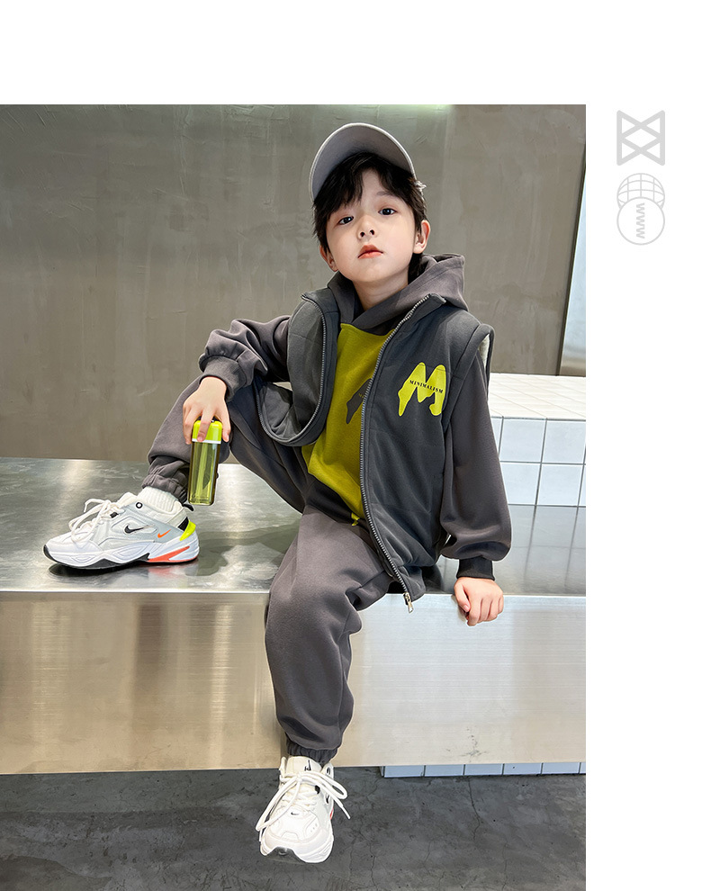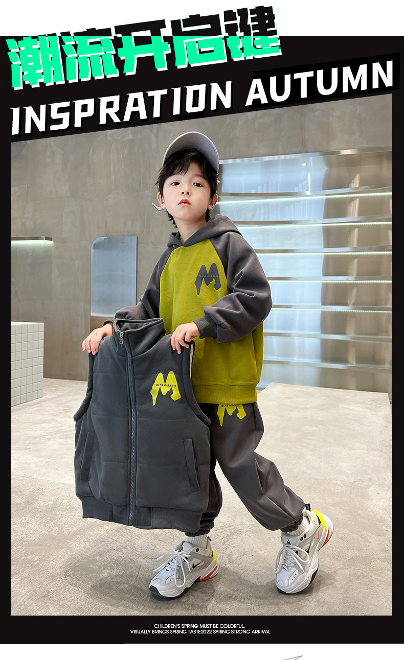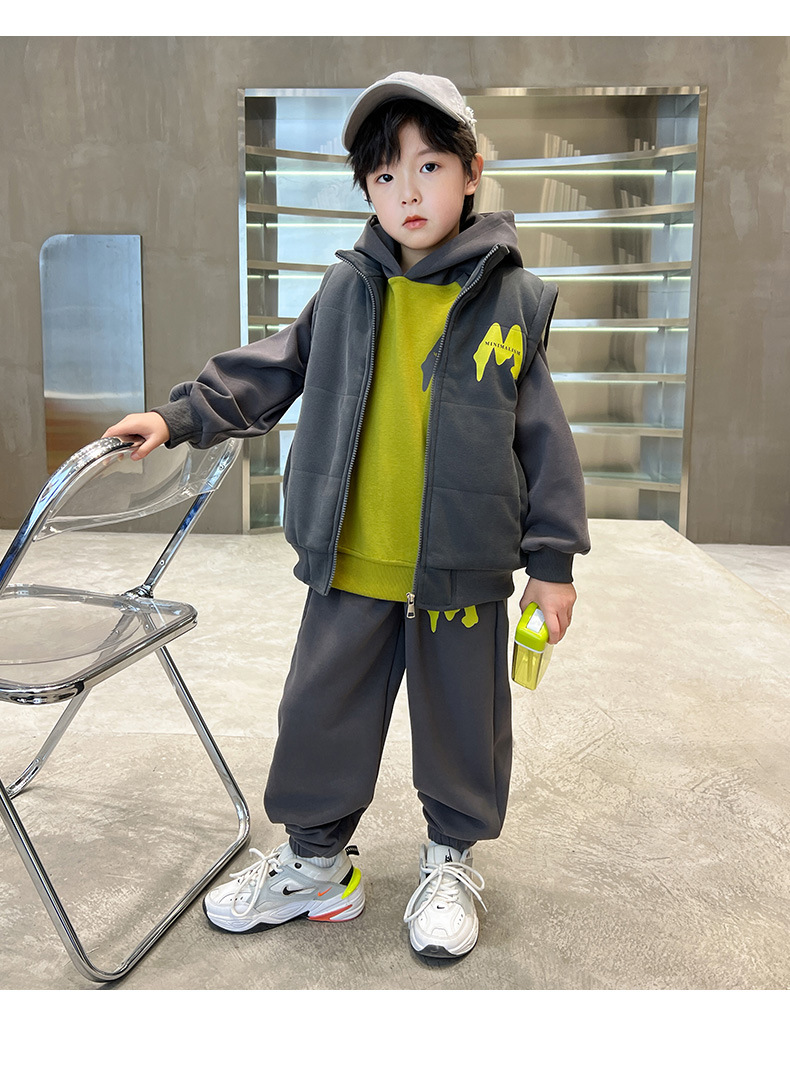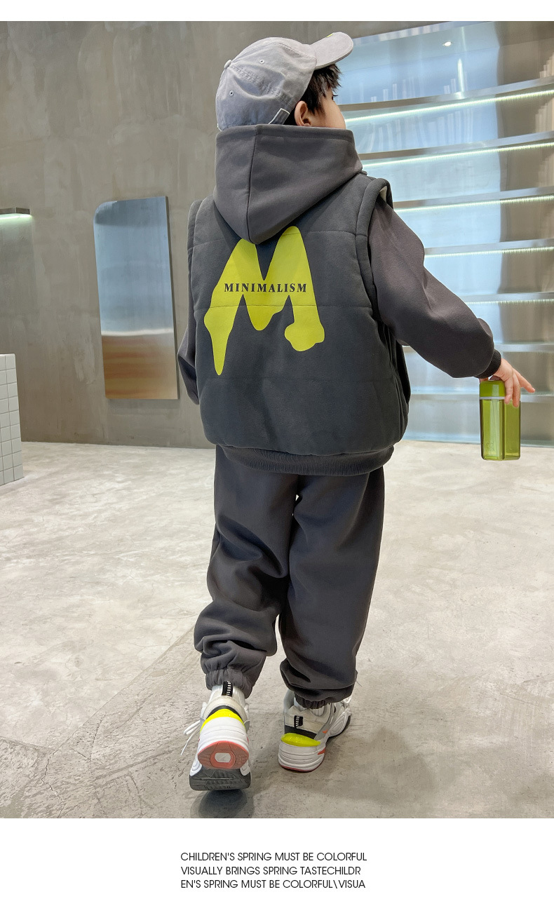 男童套装纯棉加绒三件套2024冬季新款中大童运动套装一体绒潮款