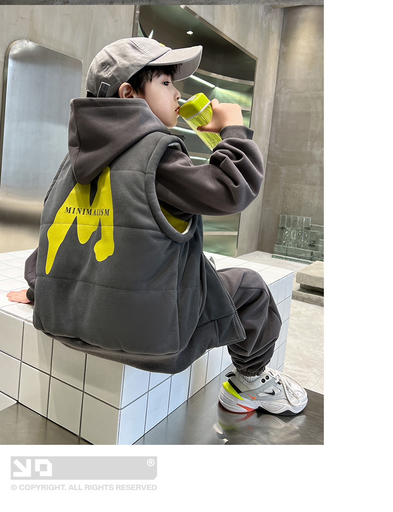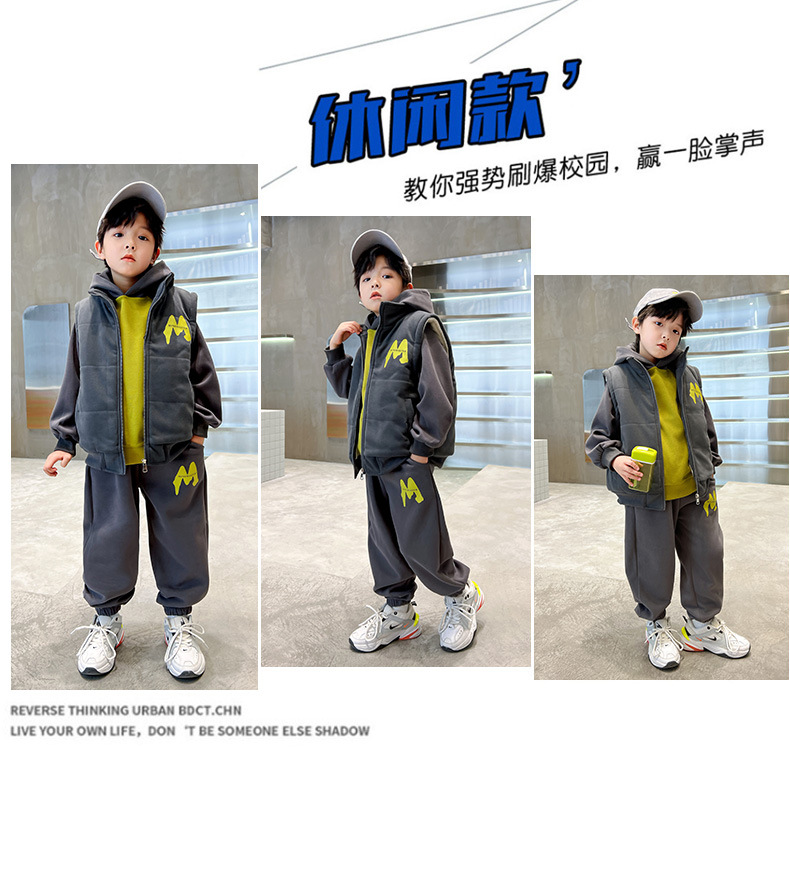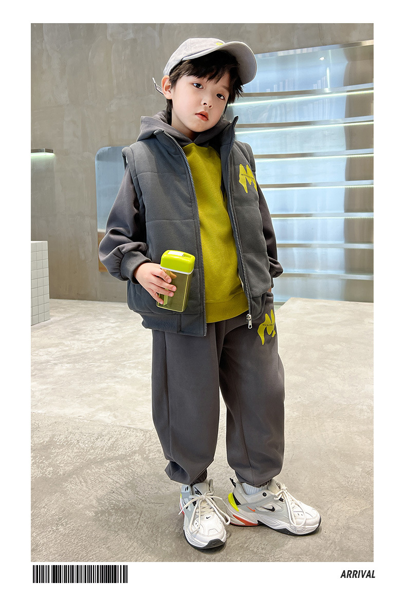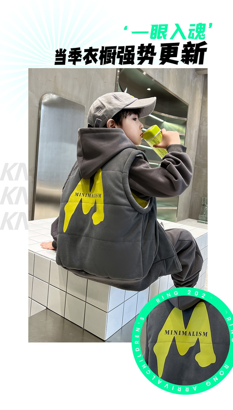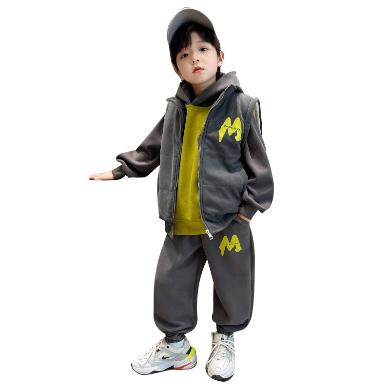 男童套装纯棉加绒三件套2024冬季新款中大童运动套装一体绒潮款