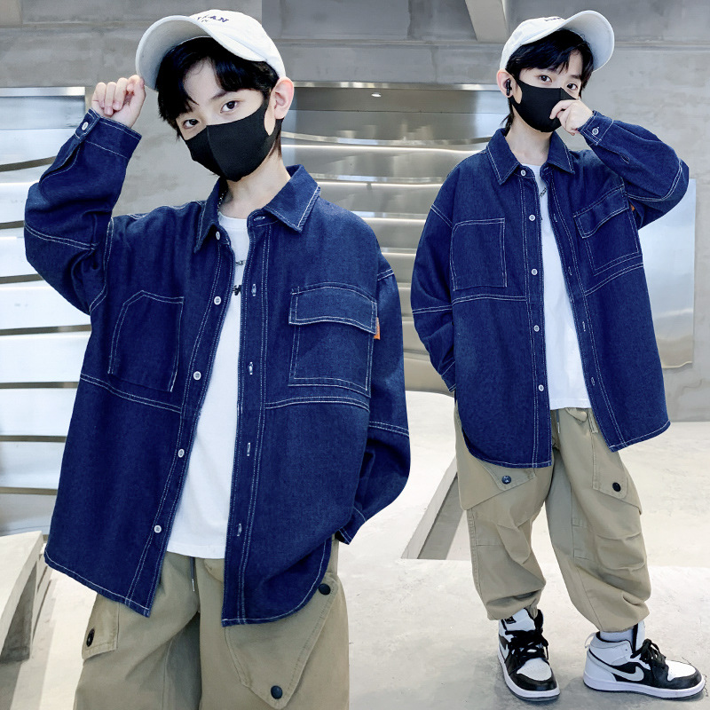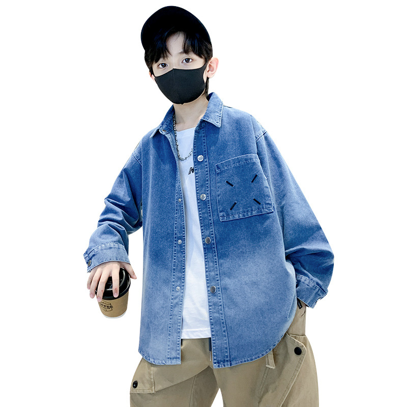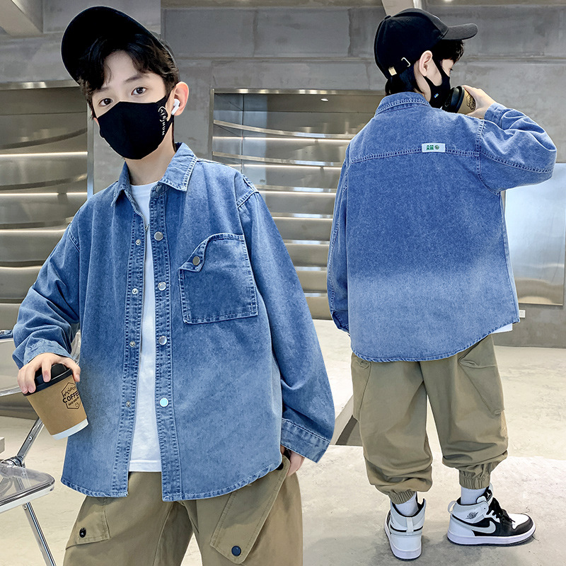 男童外套春秋款牛仔衬衫2023新款薄儿童渐变色时髦中大童上衣集合