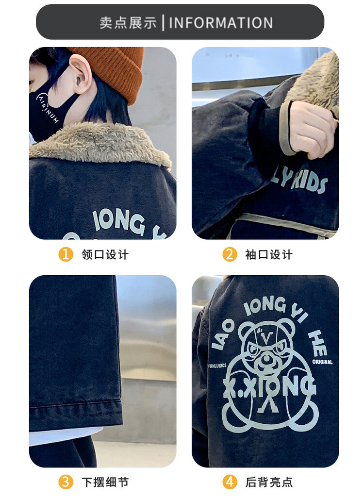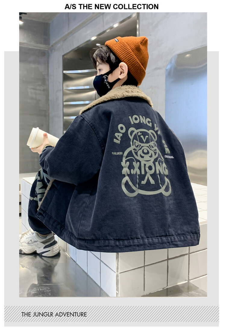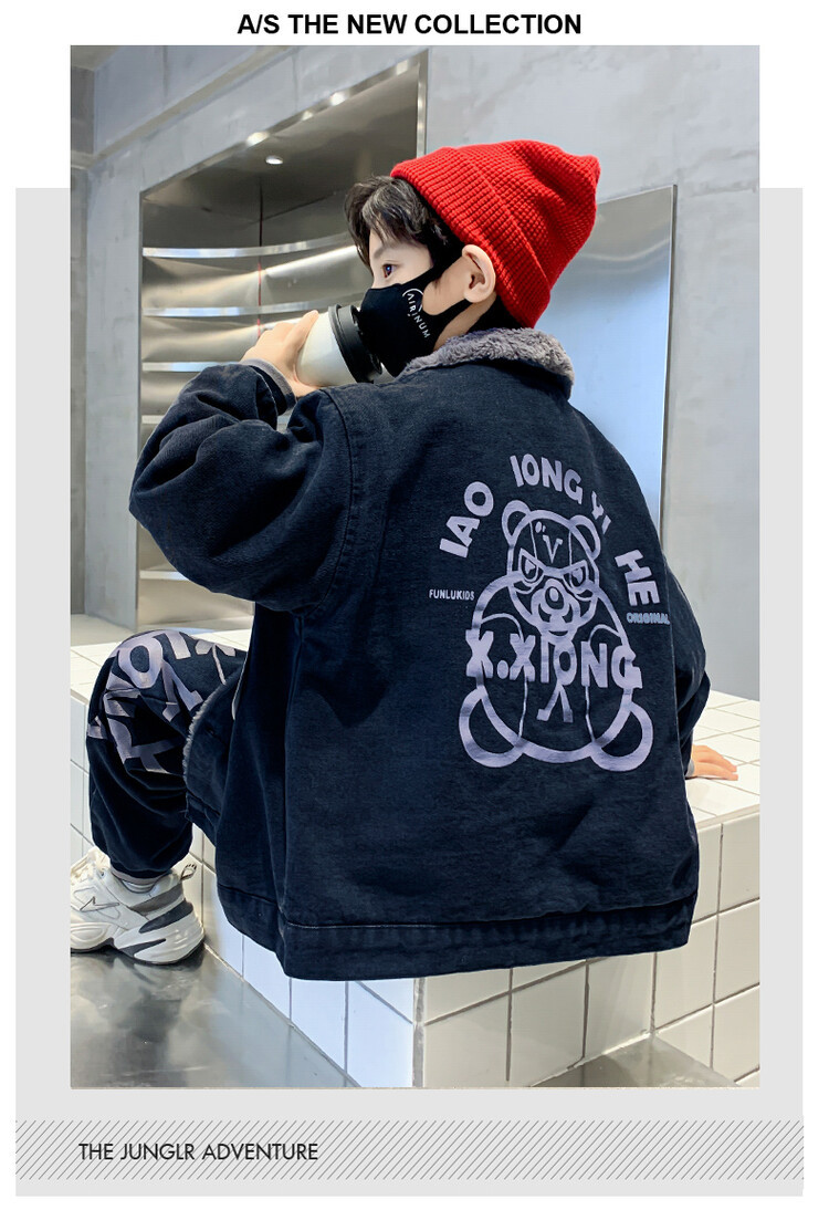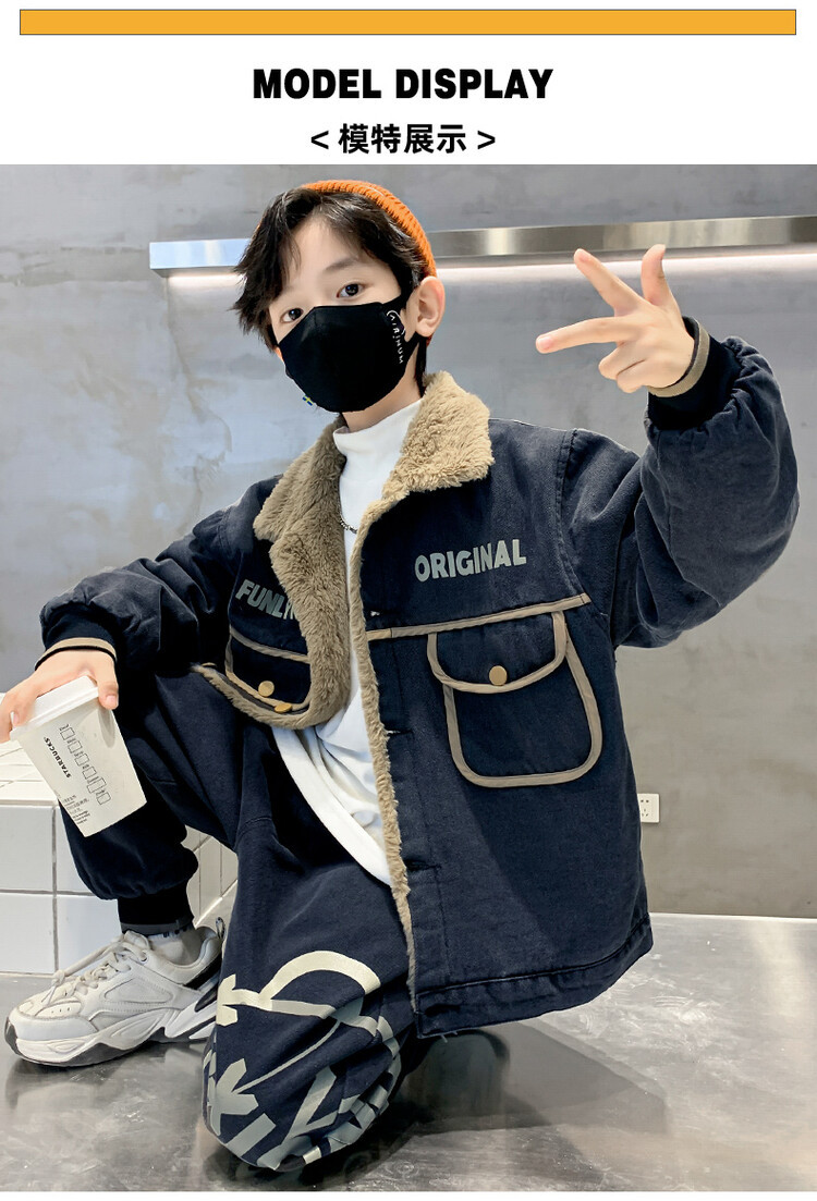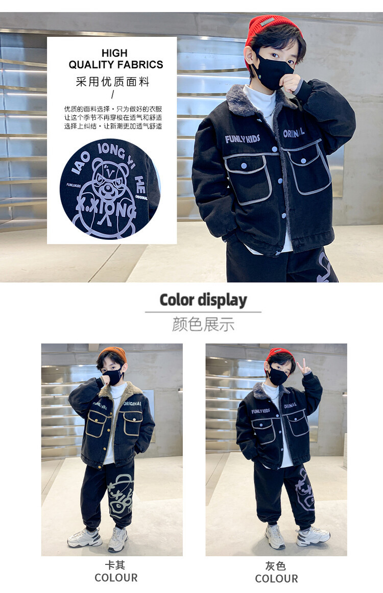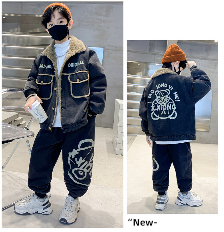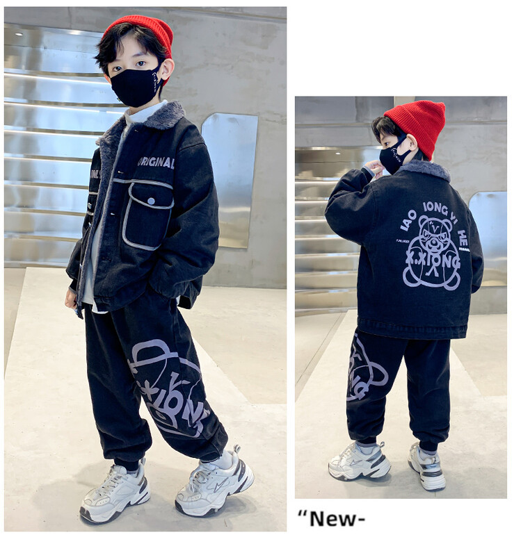 儿童装男童冬装套装加绒2024新款酷帅气男孩秋冬大童牛仔加厚冬季
