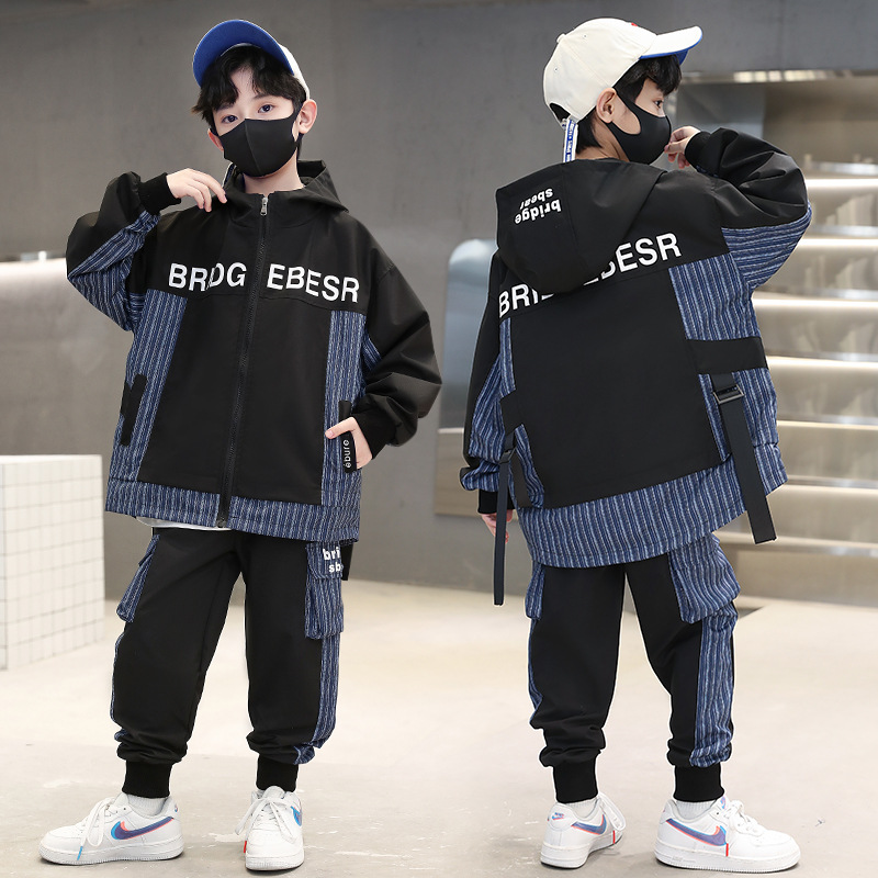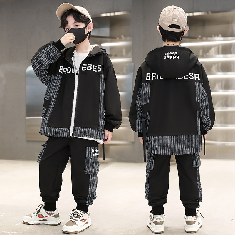 童装套装春款潮款2023春季新款中大童男孩拼接潮流两件套炸街潮流