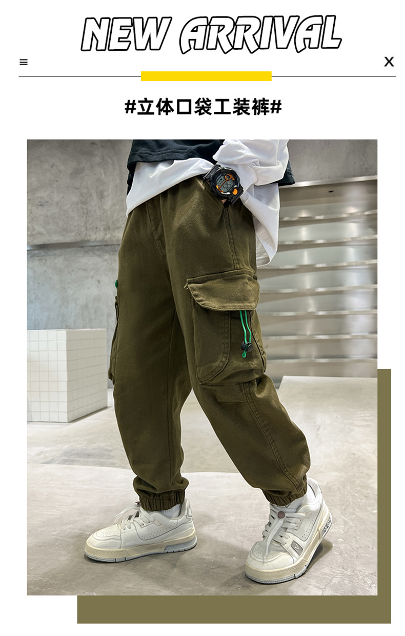 男童春秋款工装裤立体纯棉2024春季新款中大童男孩长裤炸街潮款
