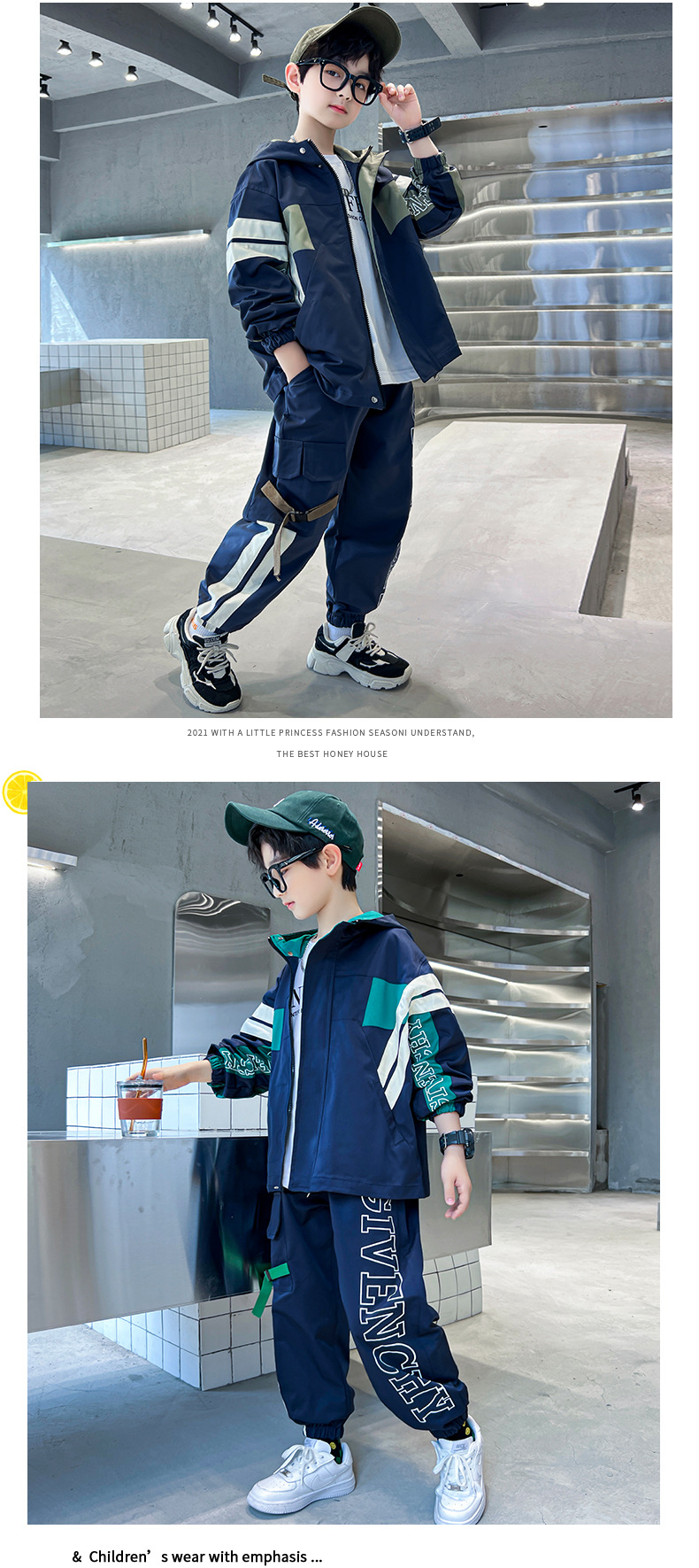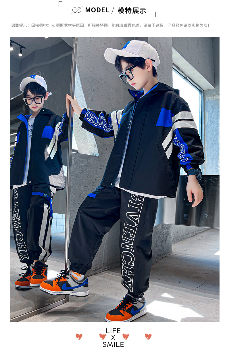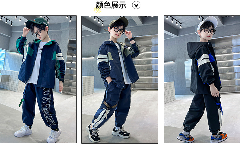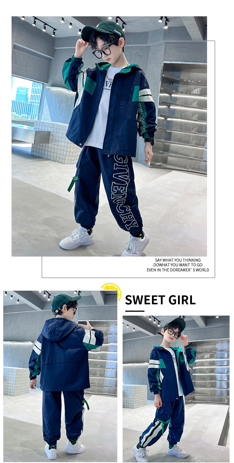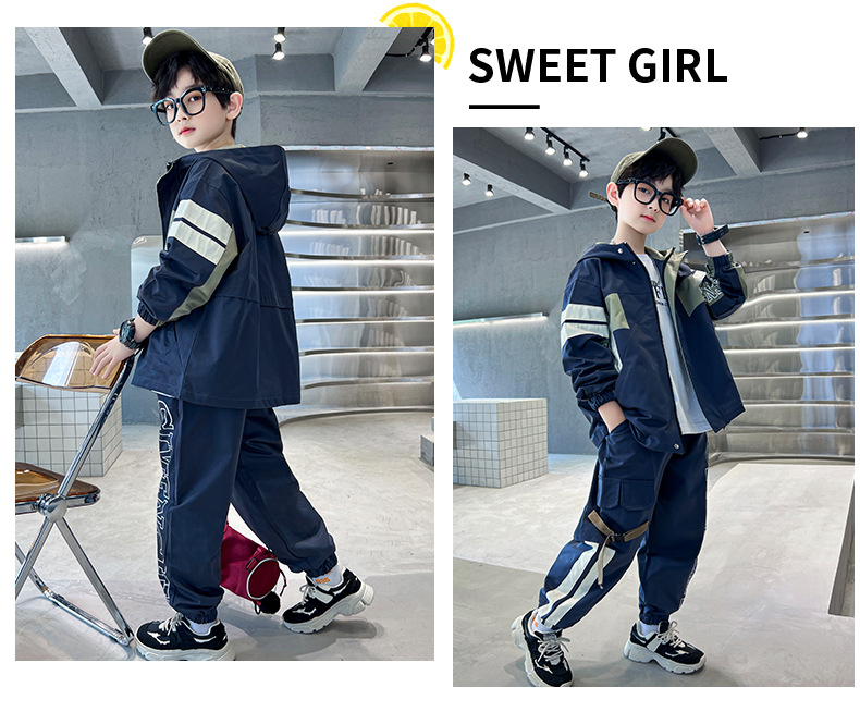 男童春款套装纯棉2024春季新款中大童男孩卫衣卫裤两件套纯棉条纹