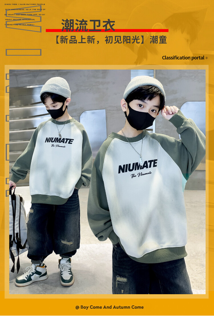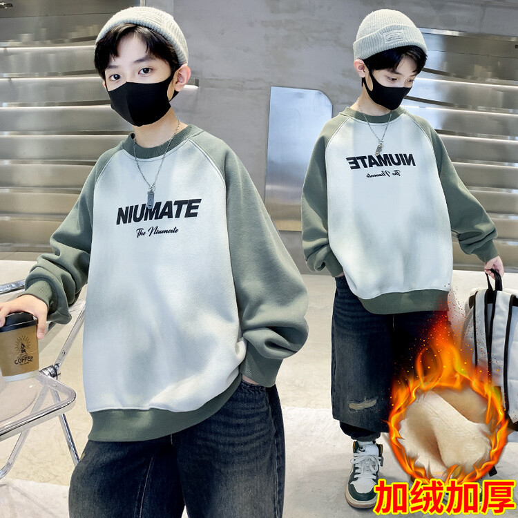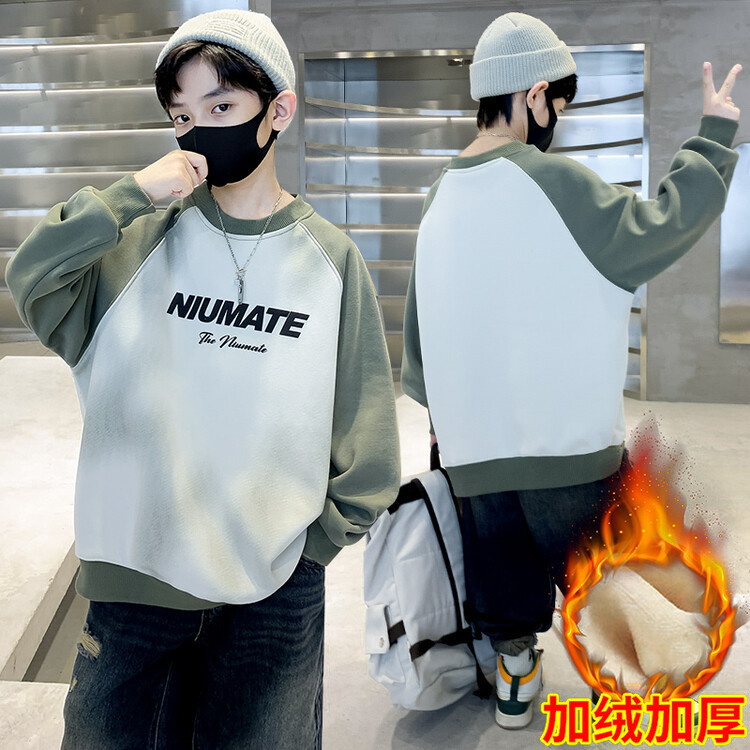 儿童装男童卫衣加绒秋冬款2024新款中大童上衣男孩冬装冬季加厚潮