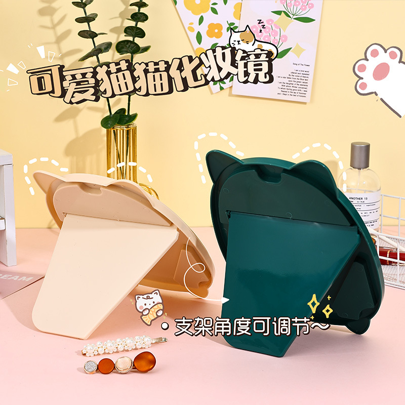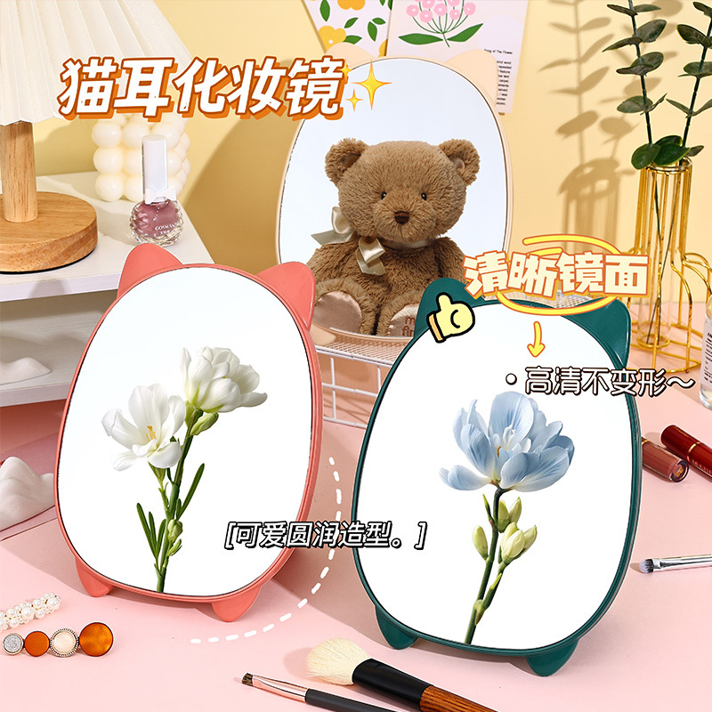 ins镜子台式卡通化妆镜学生宿舍公主简约桌面梳妆镜可爱便携镜子