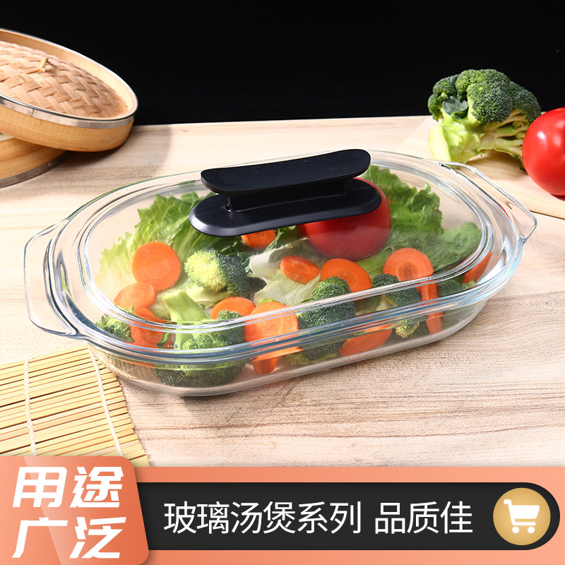 菲内克斯钢化玻璃水晶煲 3.0L长方双耳带盖玻璃汤煲8095.9153套装