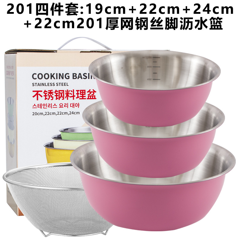 韩式带刻度面盆家用沙拉盆套装厨房烘焙打蛋盆调料盆304不锈钢盆