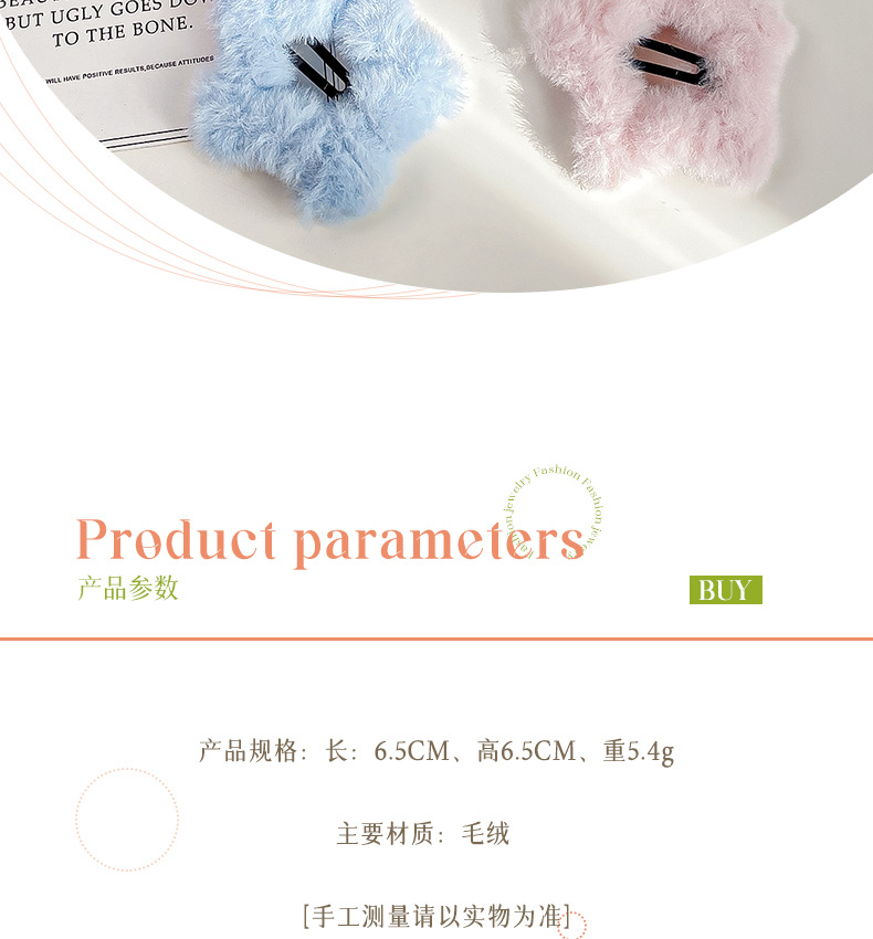 奶油色毛绒星星发夹软萌五角星发卡甜美少女心bb夹刘海夹秋冬发饰
