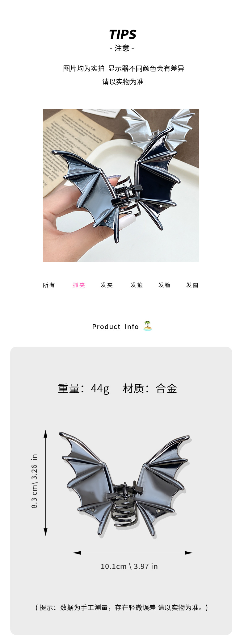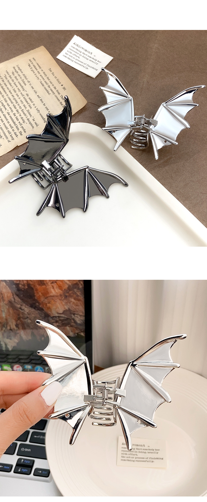 2024柏菲雅新款蝙蝠金属鲨鱼夹发卡子女后脑勺发夹大号抓夹发饰女