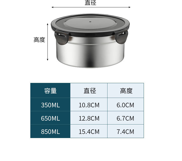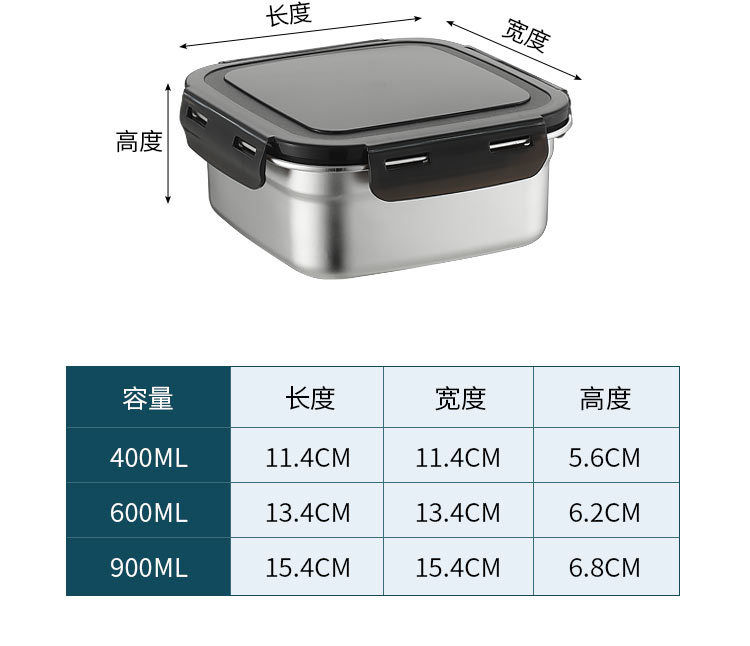 316不锈钢保鲜盒饭盒食品级冰箱收纳盒密封盒水果便当盒食品储物