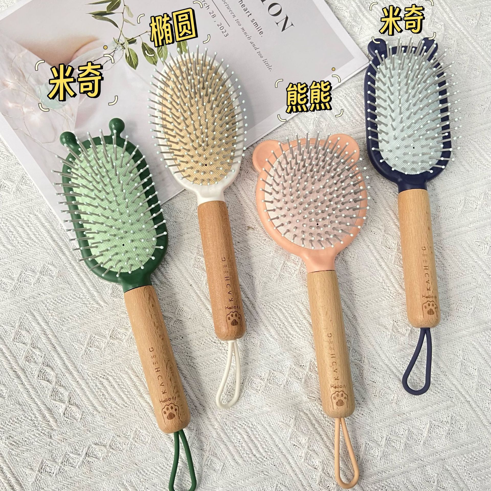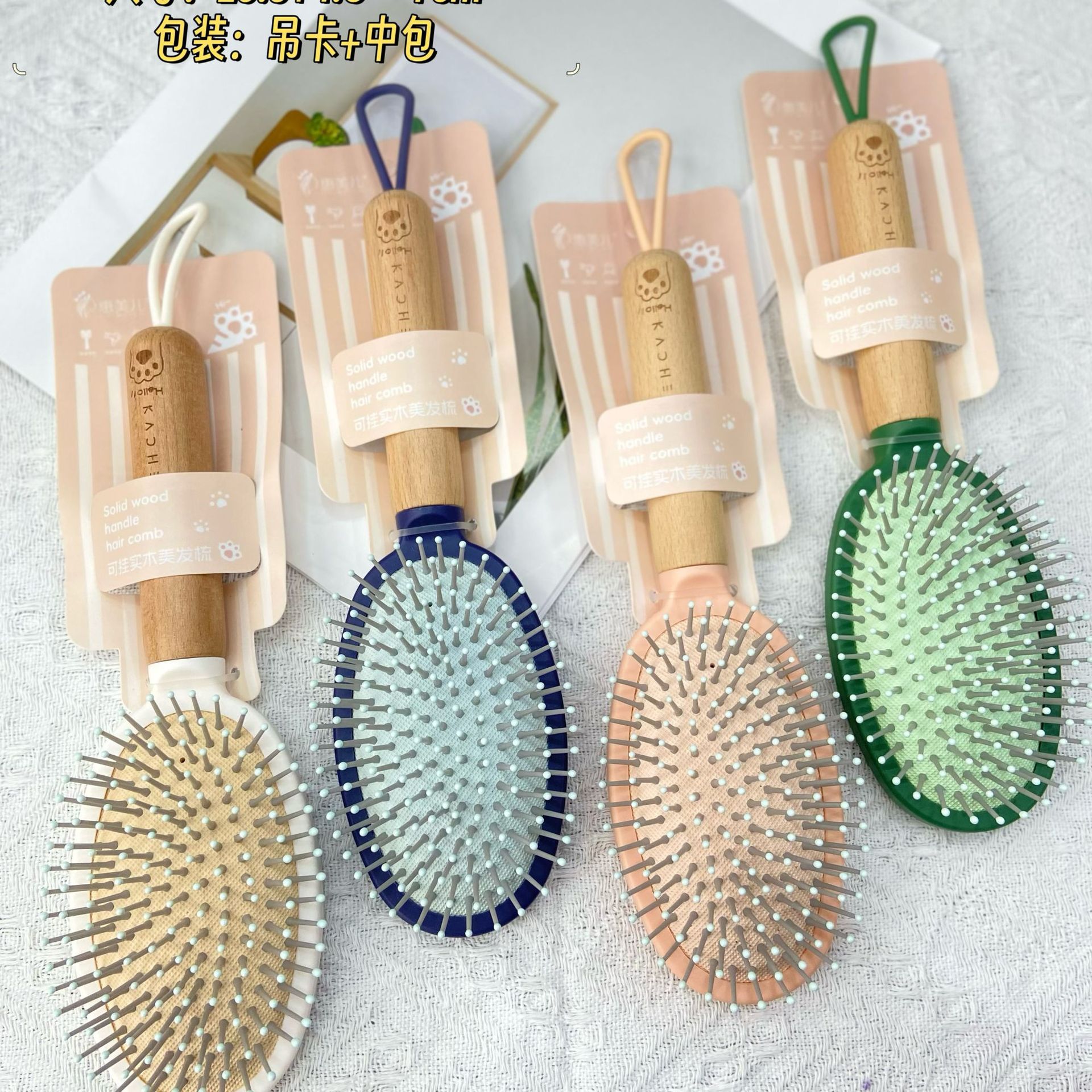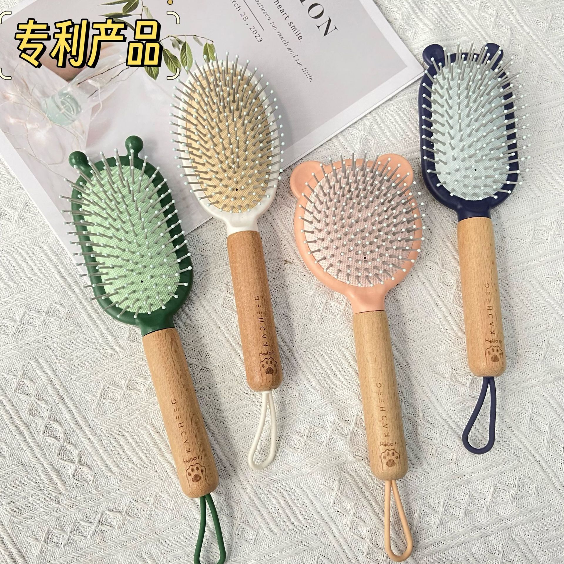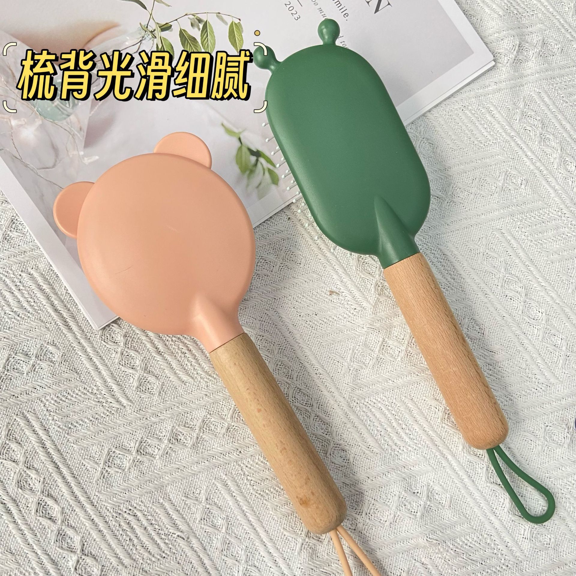 木头手柄按摩气囊梳顺发气垫梳卡通造型梳子大齿头梳按摩梳直发梳
