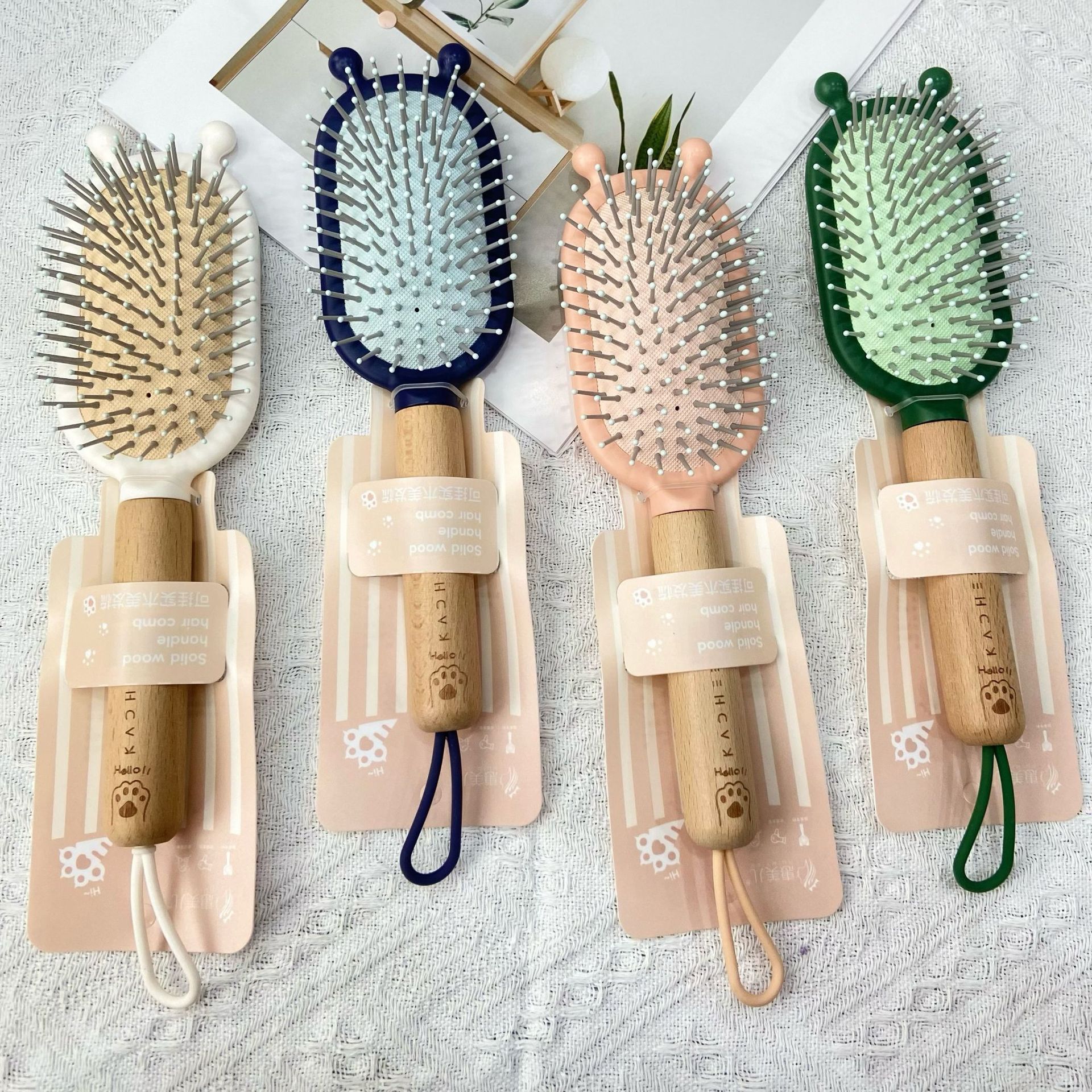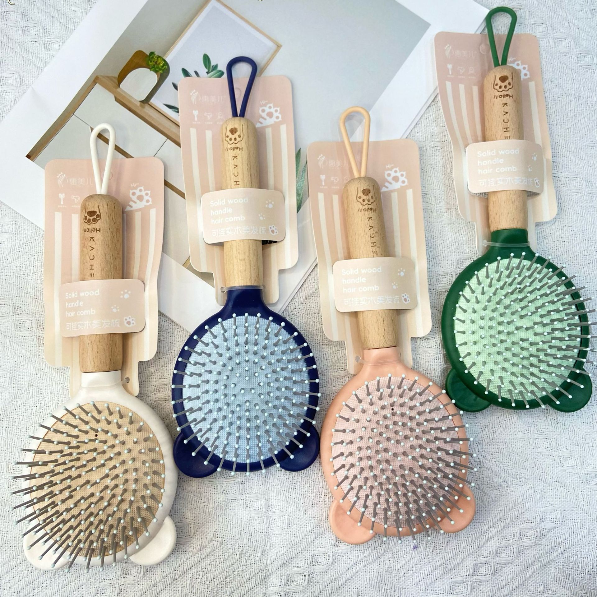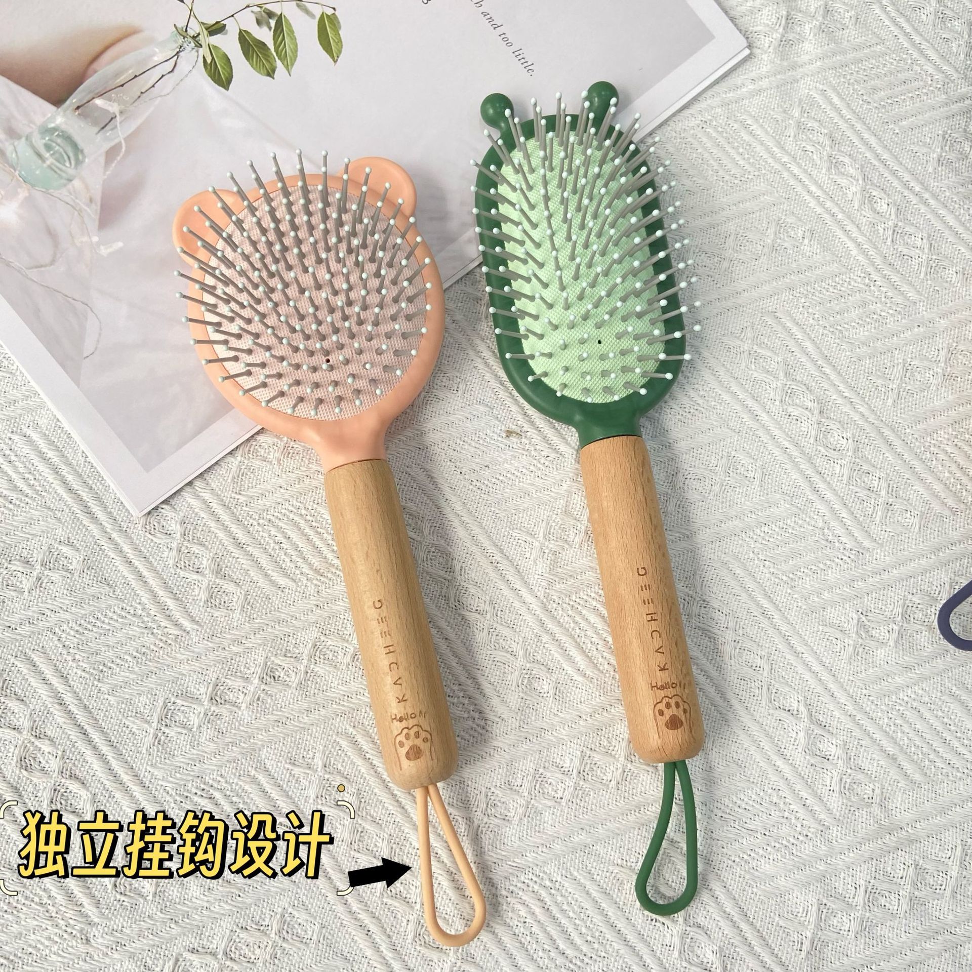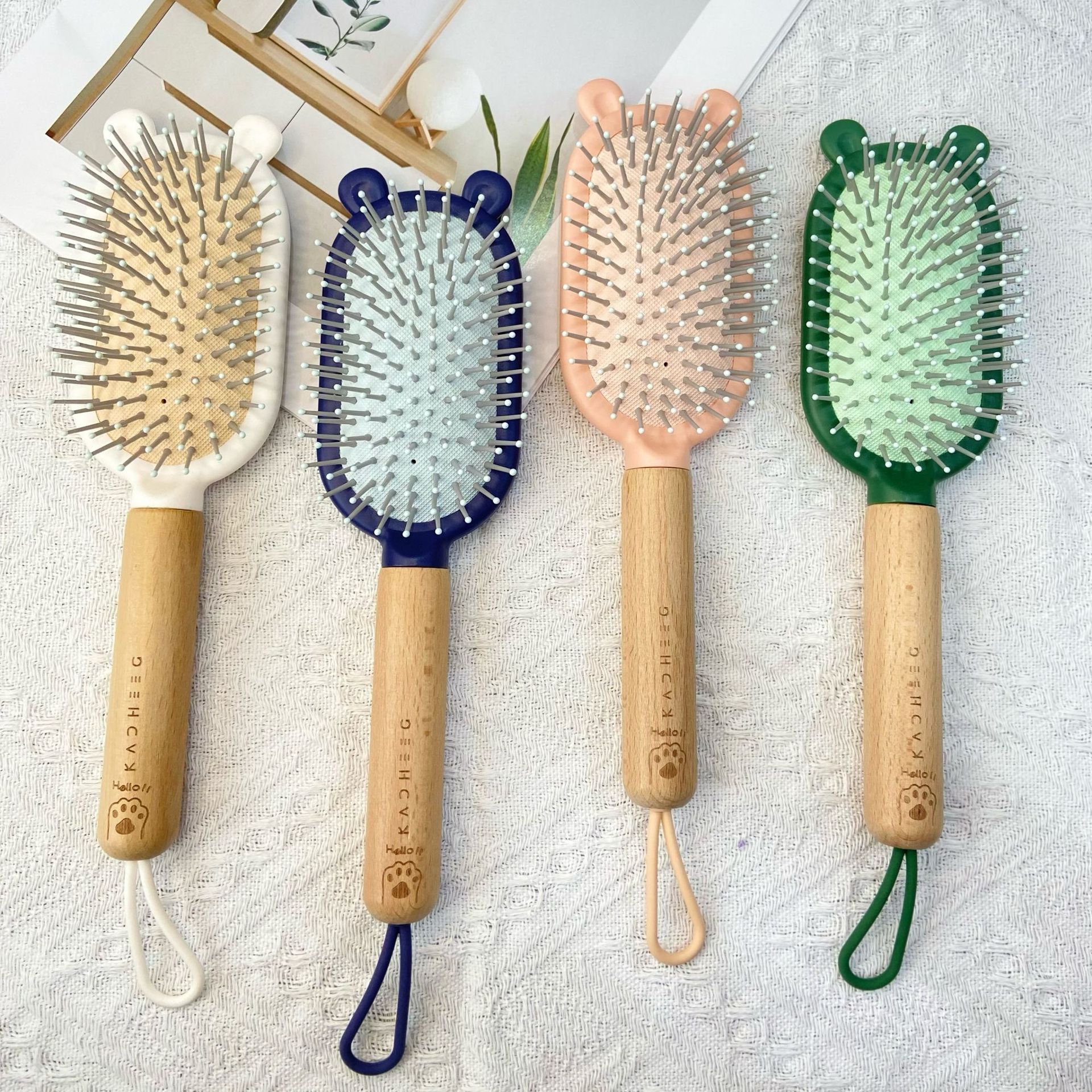 木头手柄按摩气囊梳顺发气垫梳卡通造型梳子大齿头梳按摩梳直发梳