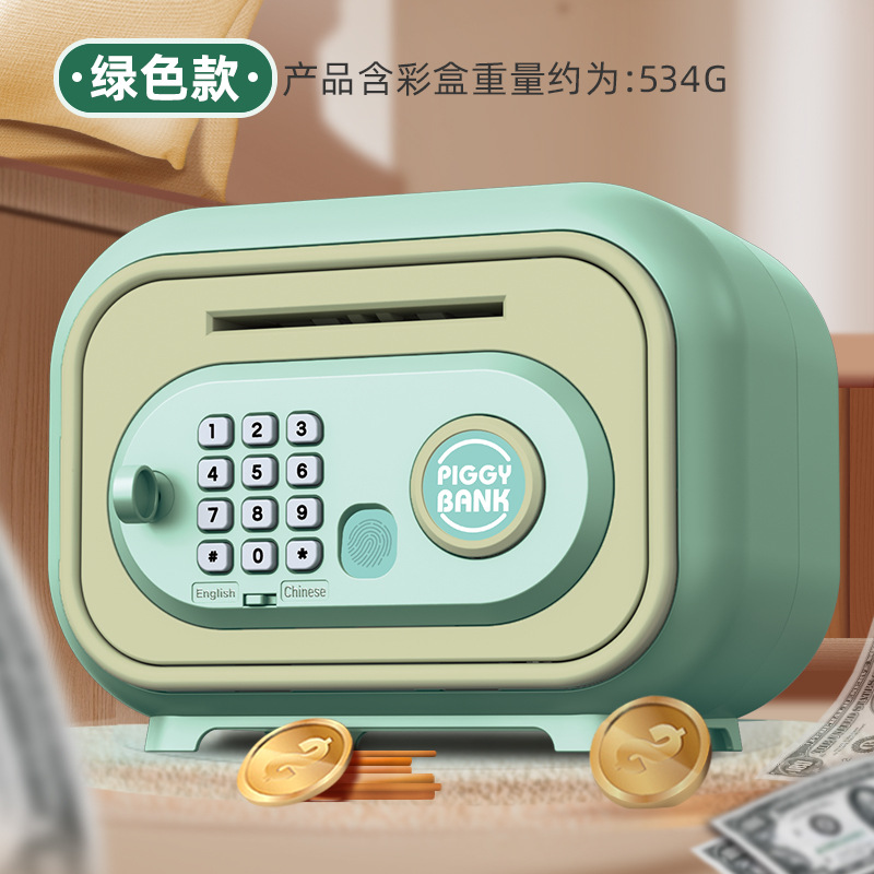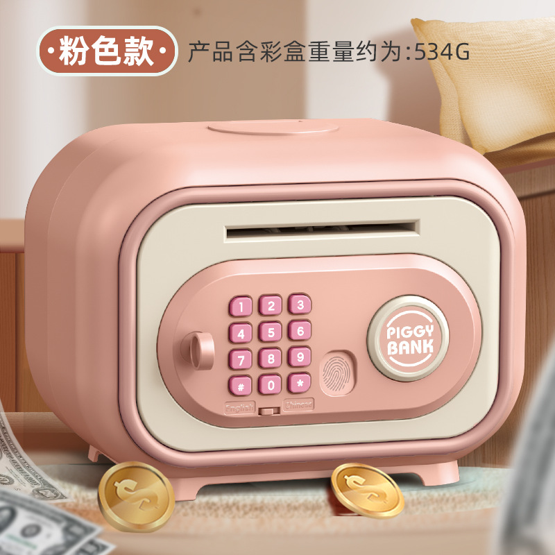 儿童卡通存钱罐自动卷币大容量保险柜指纹解锁储蓄罐玩具礼物跨境