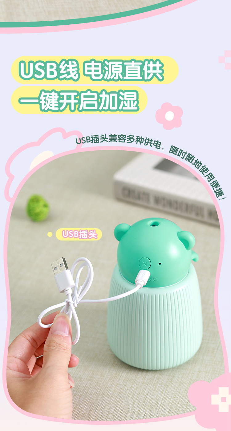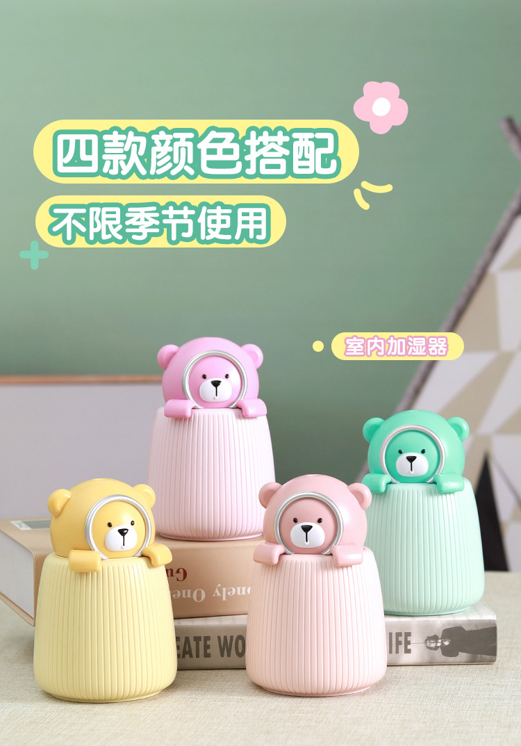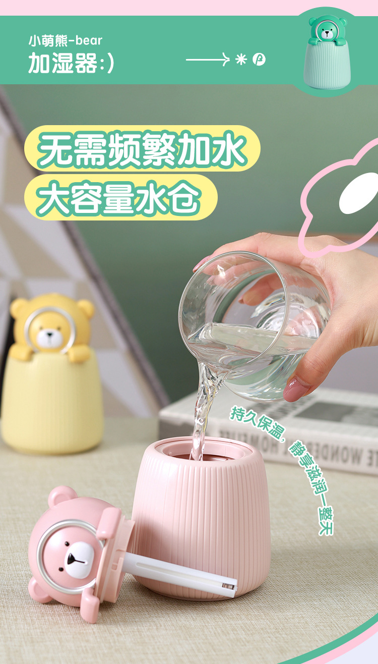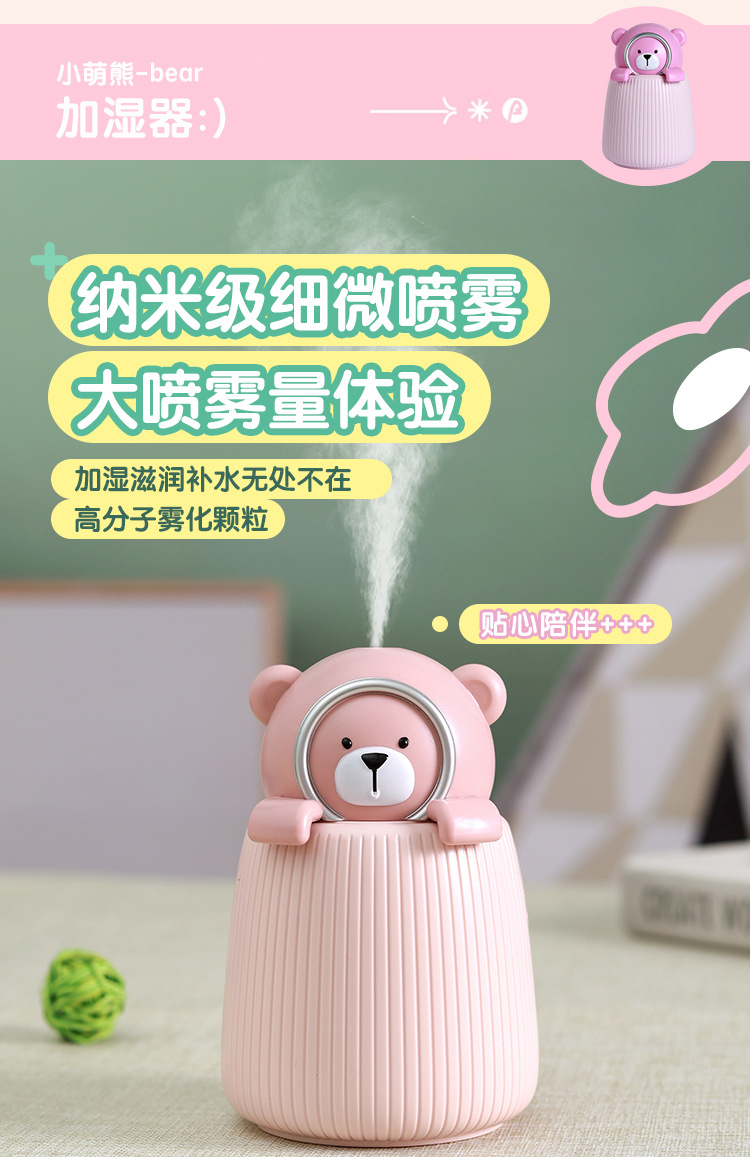 卡通趴趴熊加湿器 卧室办公桌面降温喷雾夏季家用小型补水USB插电