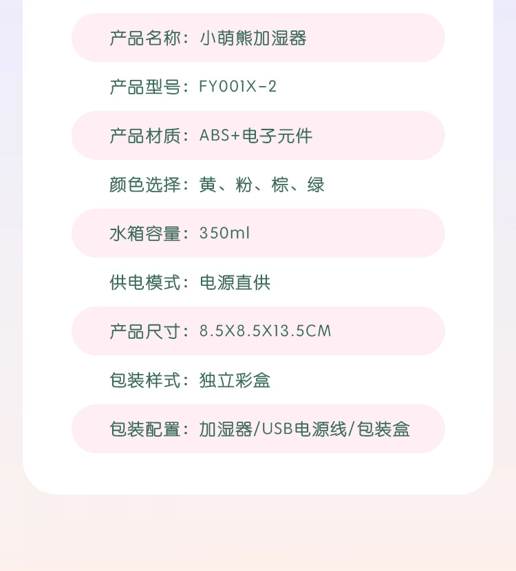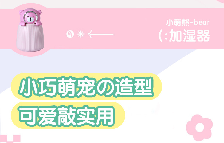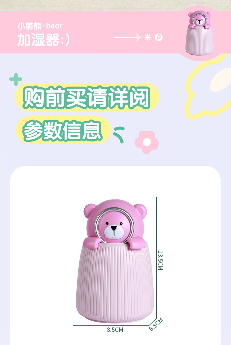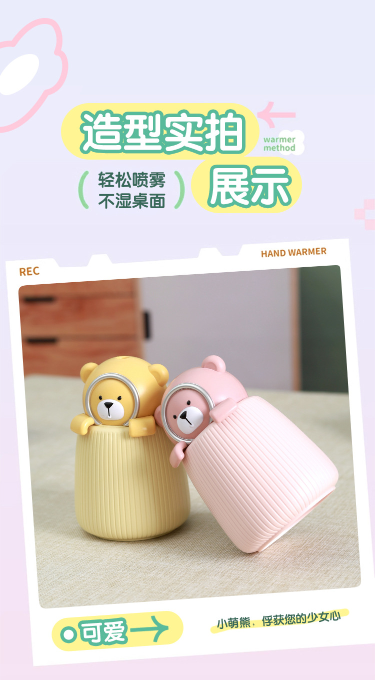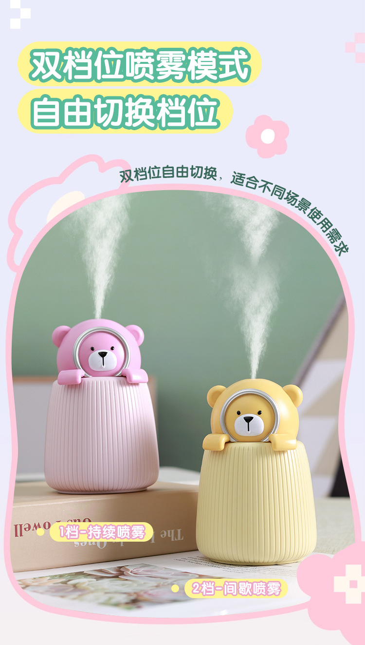 卡通趴趴熊加湿器 卧室办公桌面降温喷雾夏季家用小型补水USB插电