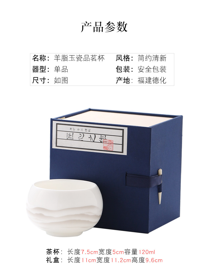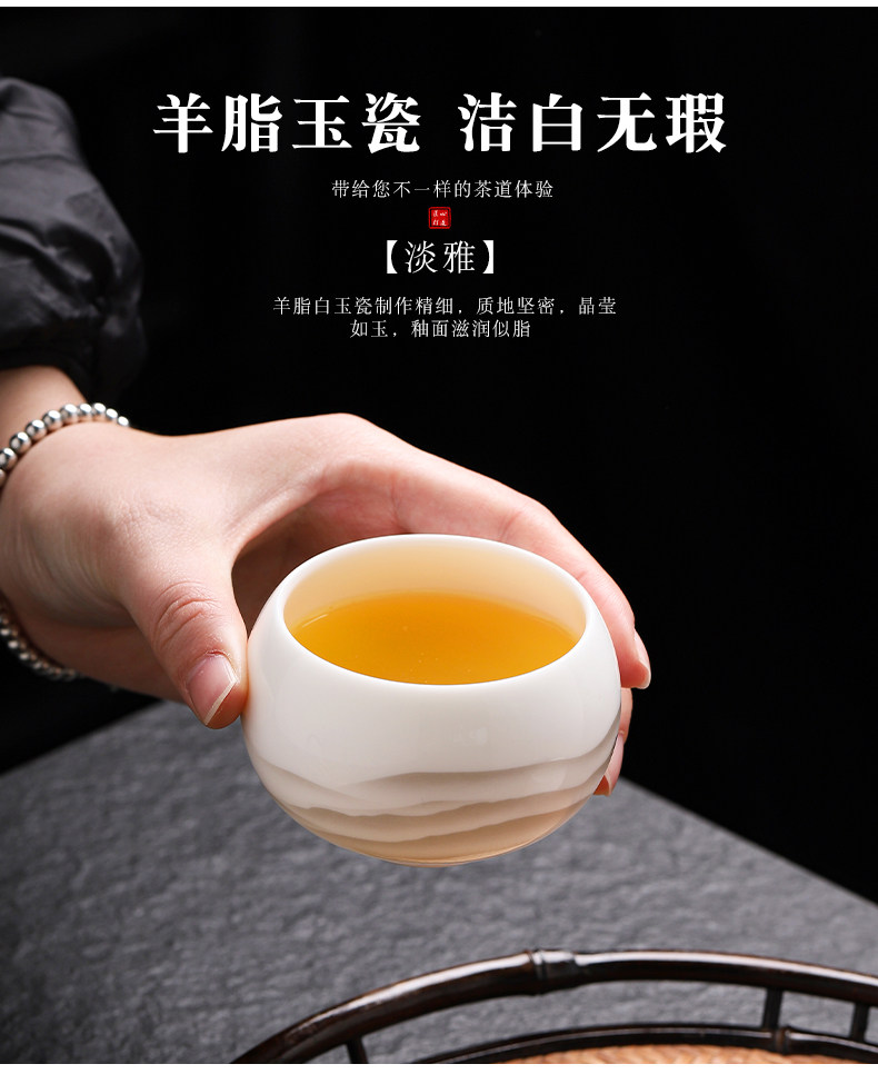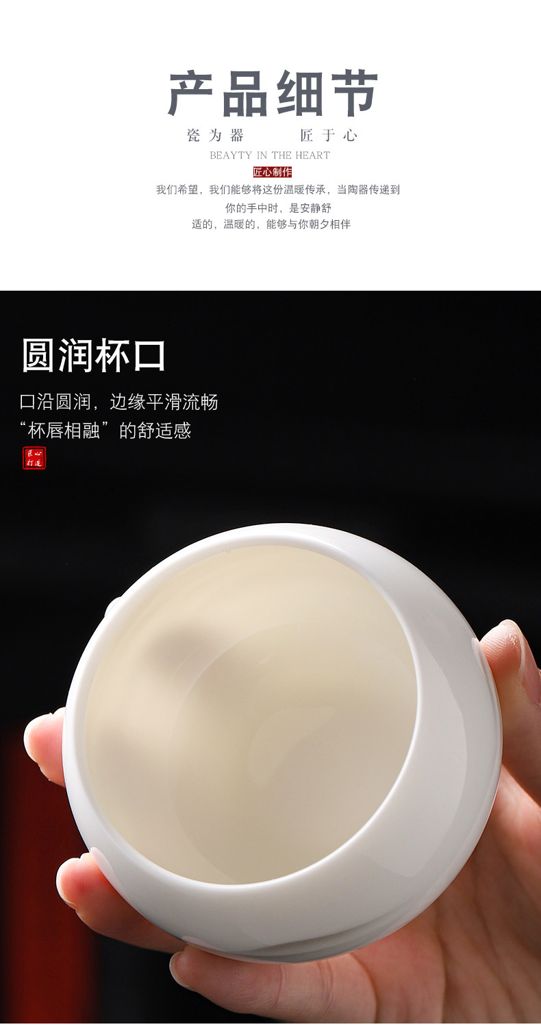 羊脂玉白瓷主人高档家用个人单杯喝茶品茗杯功夫茶具茶杯单个轻奢