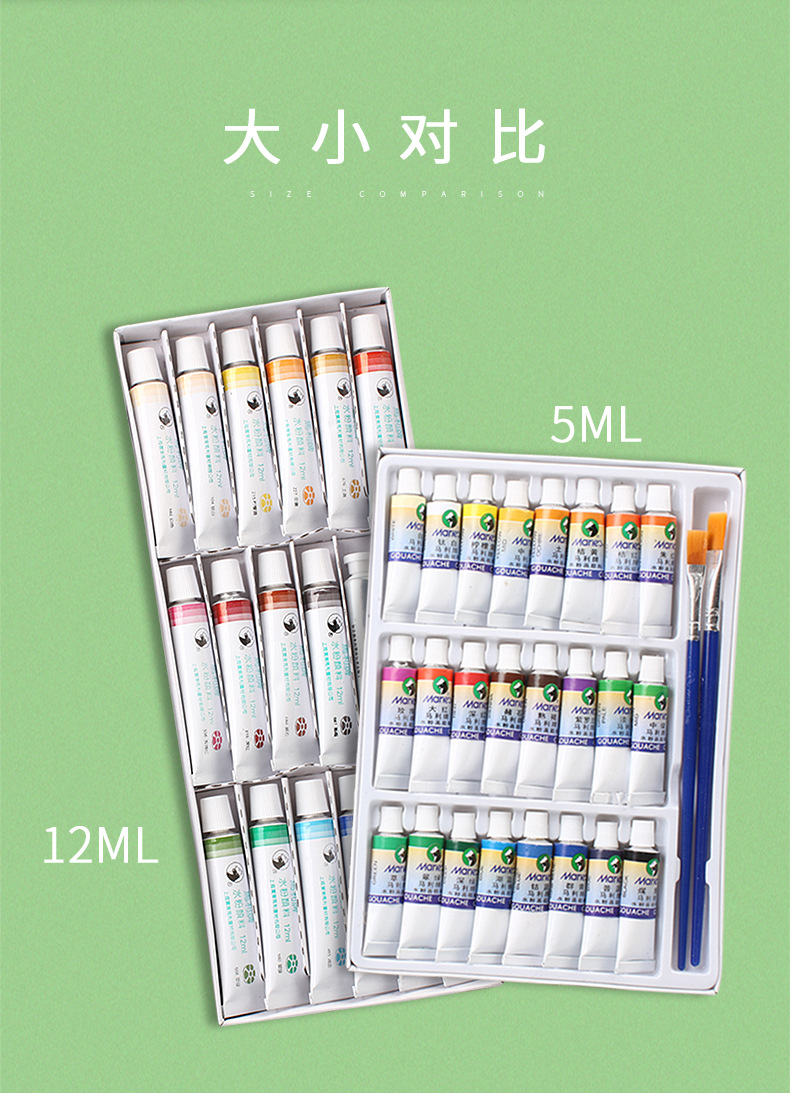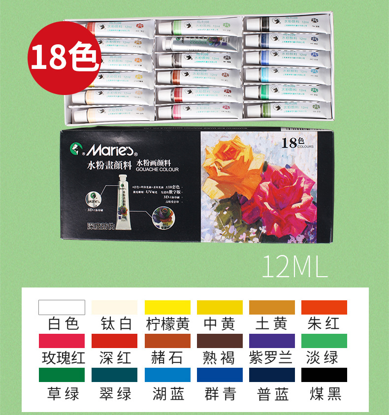 马利水粉水彩颜料12ml套装初学者儿童小盒手绘画小学生画画7312