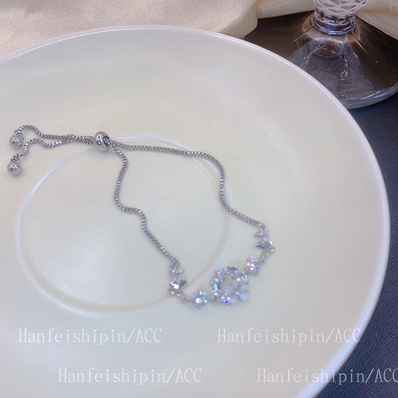 ins风新款珍珠手链女百搭高级感精致锆石爱心手串气质蝴蝶结手镯