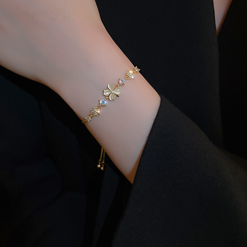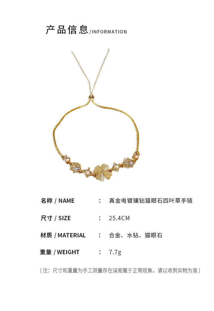 韩国设计镶钻猫眼石四叶花朵手链小清新甜美手环时尚设计感手饰女