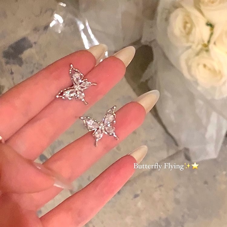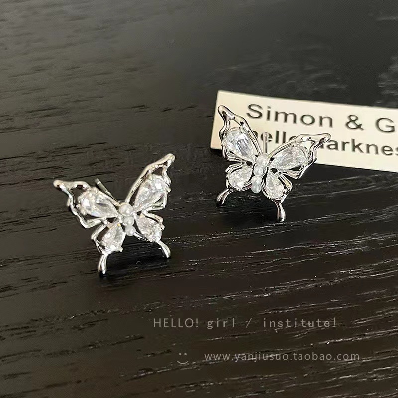 精致小巧蝴蝶珍珠耳环女小众耳钉设计感高级气质甜美百搭耳饰批发