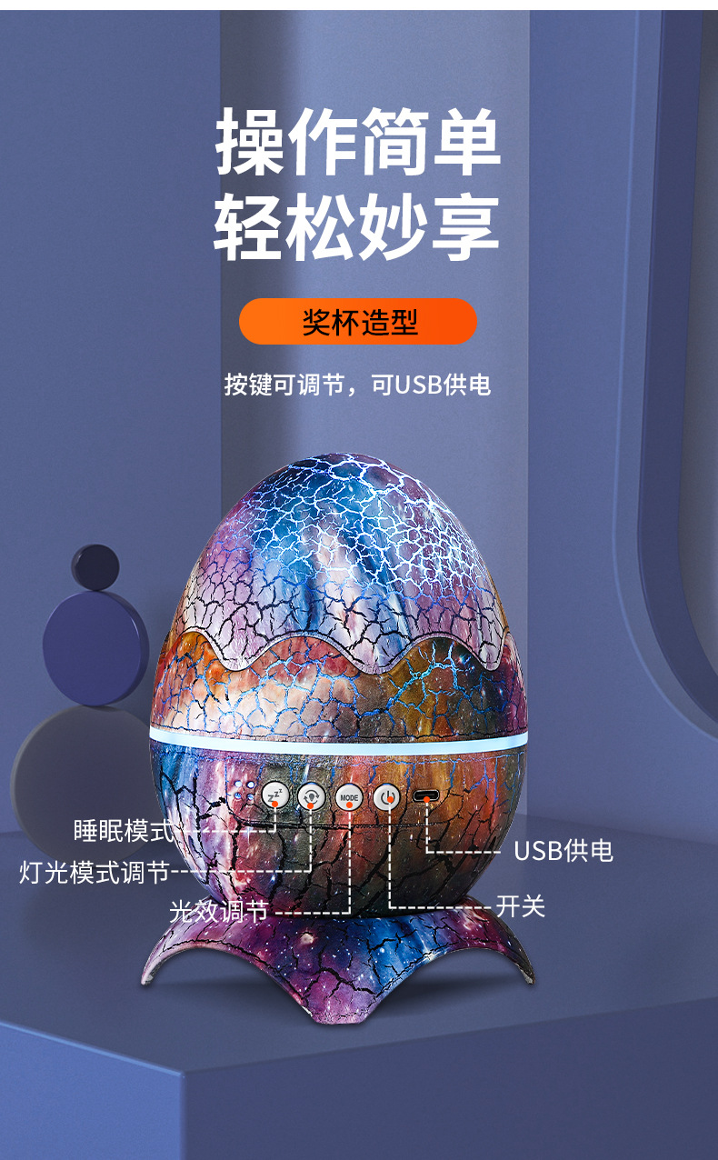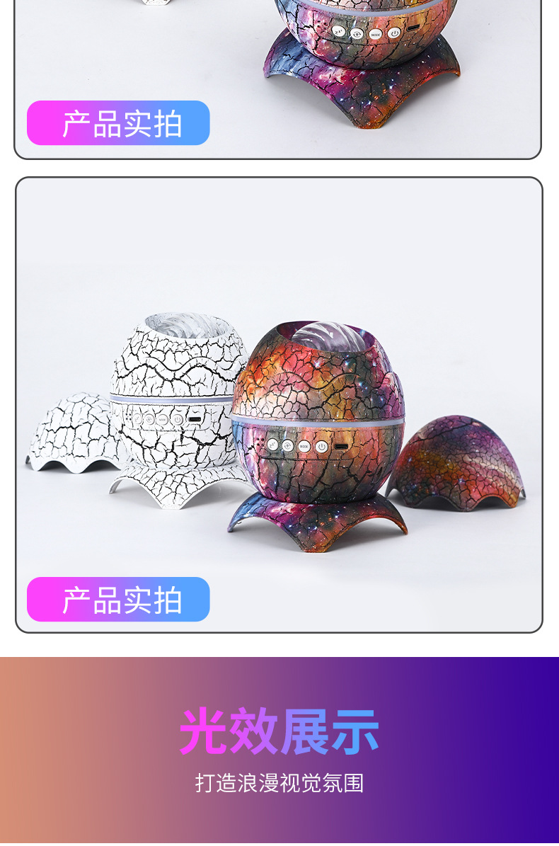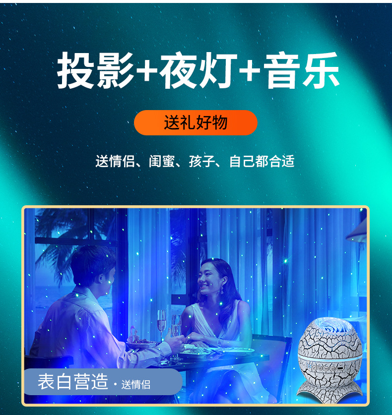 外贸专供恐龙蛋裂纹极光水纹星空投影灯创意蓝牙音乐满天星小夜灯
