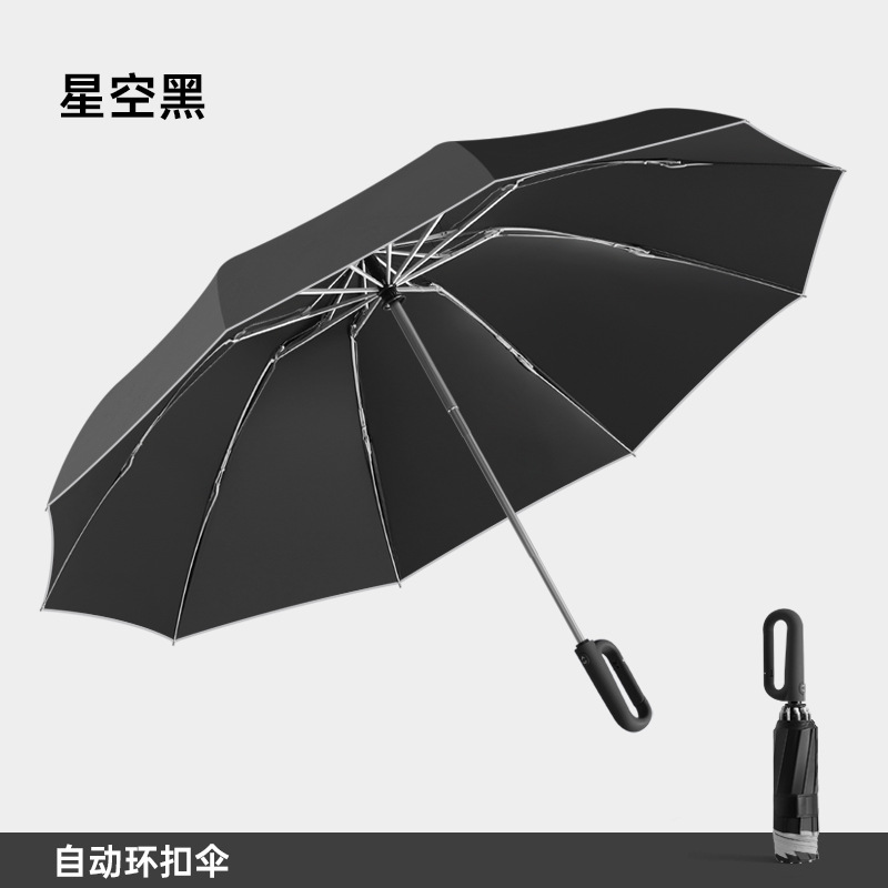 全自动十骨折叠反向伞三折黑胶反光条男女商务晴雨伞印logo广告伞
